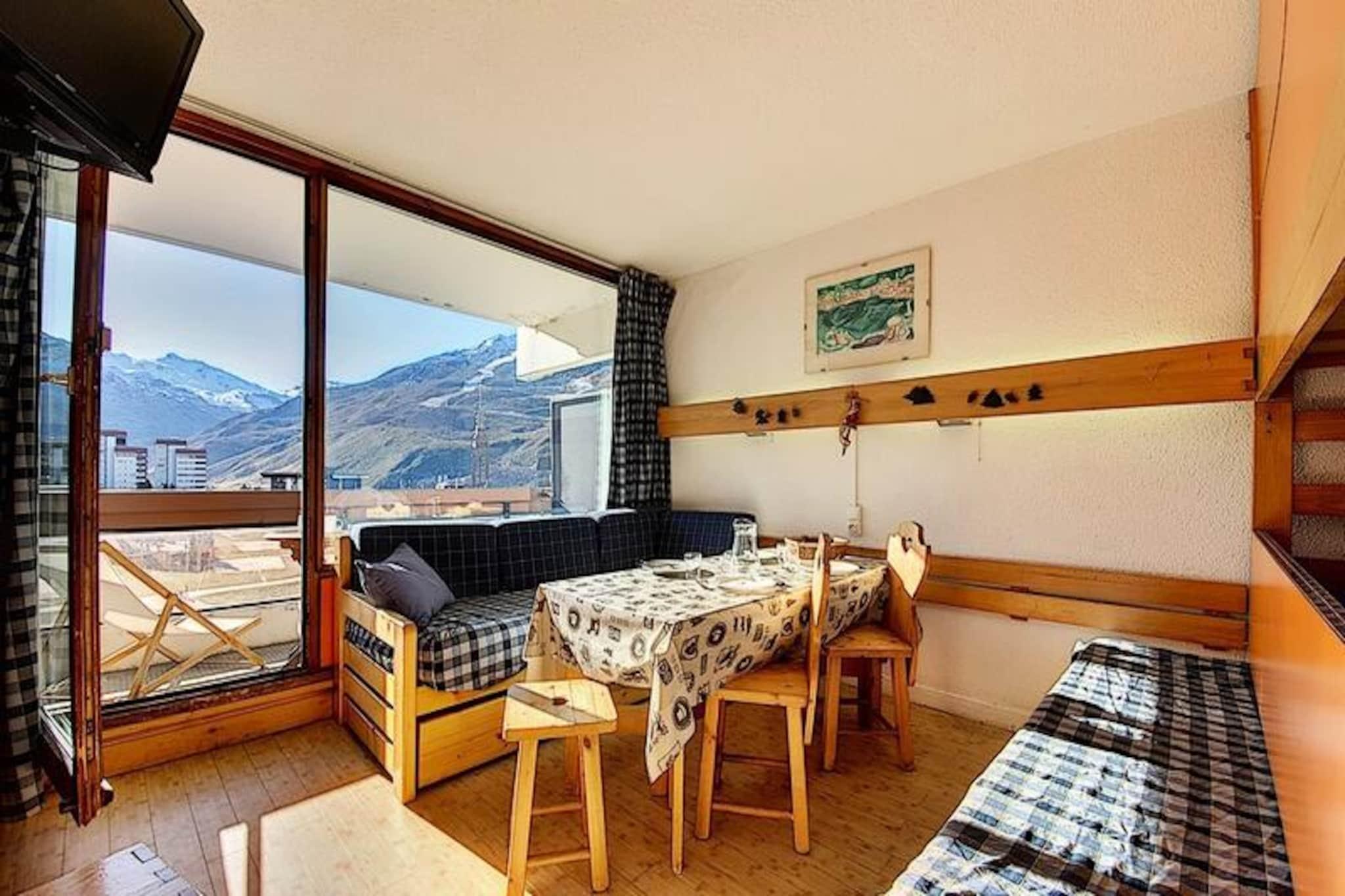 Högt ovanför det fridfulla distriktet La Croisette erbjuder denna charmiga studiolägenhet en mysig alpin tillflyktsort med direkt tillgång till backarna. Tänk dig att du kliver ut ur din byggnad och omedelbart befinner dig mitt bland de snötäckta lederna, redo för en dag av äventyr. Chavière-residenset har också direkt anslutning till en bekväm shoppinggalleria, vilket gör det enkelt att ta med sig det nödvändigaste eller njuta av en lugn promenad efter en dag på berget. Med gratis utomhusparkering vid foten av byggnaden (i mån av tillgång) är din ankomst och avresa lika smidig som din vistelse. Denna 24 m² stora studiolägenhet ligger på 5:e våningen med hiss och är omsorgsfullt utformad för att rymma upp till 4 gäster. Vardagsrummet har två våningssängar, en bäddsoffa och en utdragbar säng, vilket erbjuder flexibla sovarrangemang för familjer eller små grupper. En balkong i söderläge erbjuder fantastisk utsikt över backarna, perfekt för att njuta av den alpina atmosfären. Lägenheten är utrustad med TV, DVD-spelare och ett kompakt men funktionellt kök med två kokplattor, kylskåp, miniugn, minidiskmaskin, brödrost, vattenkokare och kaffebryggare. Linoleumgolv i hela lägenheten garanterar ett rent och praktiskt utrymme, medan filtar och täcken ger en touch av värme och komfort. Bortom lägenheten erbjuder La Croisette-distriktet en familjevänlig atmosfär med ett daghem bara 300 meter bort. Oavsett om du är här för att åka skidor, snowboard eller bara koppla av, garanterar läget att du aldrig är långt från händelsernas centrum. Avgiftsbelagd Wi-Fi (i mån av täckning) håller dig uppkopplad, medan rökfria policyn garanterar en fräsch och trevlig miljö. Observera att våningssängarna inte är lämpliga för barn under 6 år. För dig som söker en bekväm och mysig bas i hjärtat av de franska Alperna är denna studiolägenhet i Chavière-residenset ett idealiskt val. Med sitt oslagbara läge, genomtänkta bekvämligheter och hisnande utsikt lovar den en minnesvärd bergssemester.