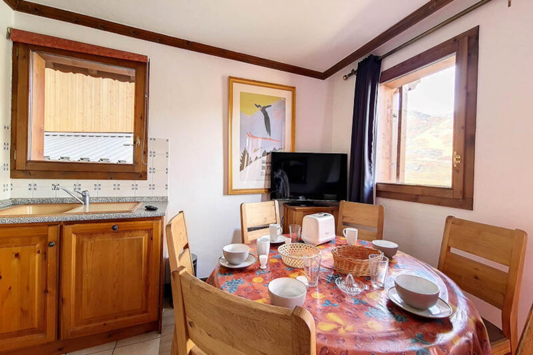 I det fridfulla distriktet Sapinière erbjuder denna charmiga alpina lägenhet en lugn tillflyktsort bara några steg från backarna och skidliftarna. Tänk dig att vakna upp till den friska bergsluften, smutta på ditt morgonkaffe på den sydvästvända balkongen och ge dig direkt in i en dag med snöiga äventyr. Residenset, som består av två stora stugor, erbjuder en lugn atmosfär samtidigt som det är perfekt placerat för enkel tillgång till den pulserande skidscenen i de franska Alperna. \n\nDenna omsorgsfullt designade 4-rumslägenhet är 60 m² stor och rymmer bekvämt upp till sex gäster. Det rymliga vardagsrummet inbjuder till avkoppling med sina mysiga sittplatser och TV, medan det fullt utrustade köket säkerställer enkel matlagning med moderna apparater som mikrovågsugn, ugn, kylskåp och diskmaskin. Sovrummen inkluderar två dubbelrum och ett tredje rum med två enkelsängar, vilket gör det idealiskt för familjer eller grupper av vänner. Ytterligare bekvämligheter inkluderar ett badrum med badkar, duschrum och separat toalett, vilket garanterar bekvämlighet för alla gäster. Lägenheten är rökfri, husdjursfri och har privat täckt parkering för extra bekvämlighet.\n\nUtöver lägenhetens komfort erbjuder Sapinière-distriktet ett utmärkt läge för att utforska den omgivande alpina skönheten. Oavsett om du ger dig ut i backarna på vintern eller njuter av natursköna vandringar på sommaren, placerar residenset dig i hjärtat av utomhusäventyret. Med sängkläder och handdukar som tillhandahålls under vintervistelser kommer du att känna dig som hemma från det ögonblick du anländer.\n\nPerfekt för dig som söker en balans mellan avkoppling och aktivitet, lovar denna alpina tillflyktsort oförglömliga minnen i de hisnande franska Alperna. Oavsett om du är här för spänningen med skidåkning eller lugnet i bergsutsikten, är detta residens din port till en exceptionell semesterupplevelse.