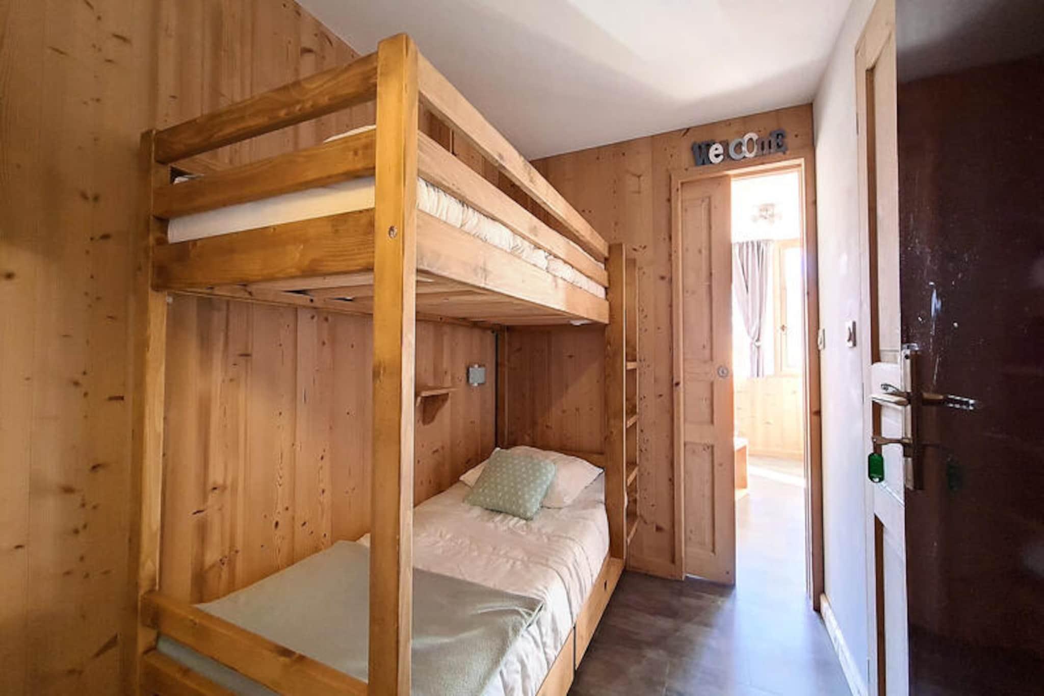 Ovanför det livliga Bruyères-distriktet erbjuder denna eleganta studiolägenhet en mysig tillflyktsort för upp till fyra gäster, där modern komfort kombineras med alpin charm. Belägen på 7:e våningen, öppnar balkongen i söderläge upp sig mot en hisnande utsikt över backarna, vilket inbjuder dig att njuta av bergens lugn samtidigt som du bara är bara några steg från distriktets pulserande hjärta. Oavsett om du är här för skidåkning eller en sommarsemester, lovar denna bostad en oförglömlig vistelse. \n\nLägenheten har vackert renoverats och har en smart planlösning utformad för avkoppling och bekvämlighet. Vardagsrummet har en bekväm bäddsoffa för två personer och en platt-TV, perfekt för att varva ner efter en dag utomhus. En separat sovalkov, smart undangömd bakom en skjutdörr, erbjuder två våningssängar för enkelsängar, vilket ger avskildhet och komfort för familjer eller små grupper. Köket är fullt utrustat med moderna apparater, inklusive en Senseo-kaffemaskin, mikrovågsugn/grill och diskmaskin, vilket gör matlagningen till en barnlek. Badrummet är elegant och funktionellt, komplett med dusch och toalett. Laminatgolv i hela lägenheten ger en touch av elegans till utrymmet. \n\nNär du går ut befinner du dig i det livliga Bruyères-distriktet, med en mängd olika restauranger, butiker och nöjesalternativ. Från skidskolan och rodelbanan till vattenparken och hälsocentret finns allt du behöver inom gångavstånd. Familjer kommer att uppskatta lekplatsen, medan bioälskare kan njuta av en mysig kväll på den lokala teatern. För de som söker äventyr ligger backarna precis utanför dörren och erbjuder direkt tillgång till skidåkning i världsklass. \n\nOavsett om du dras av spänningen i backarna eller charmen i den alpina byn, är denna studio din port till en minnesvärd bergssemester. Med sitt utmärkta läge, omtänksamma bekvämligheter och fantastiska utsikt är det ett perfekt val för par, familjer eller vänner som vill uppleva magin i de franska Alperna.