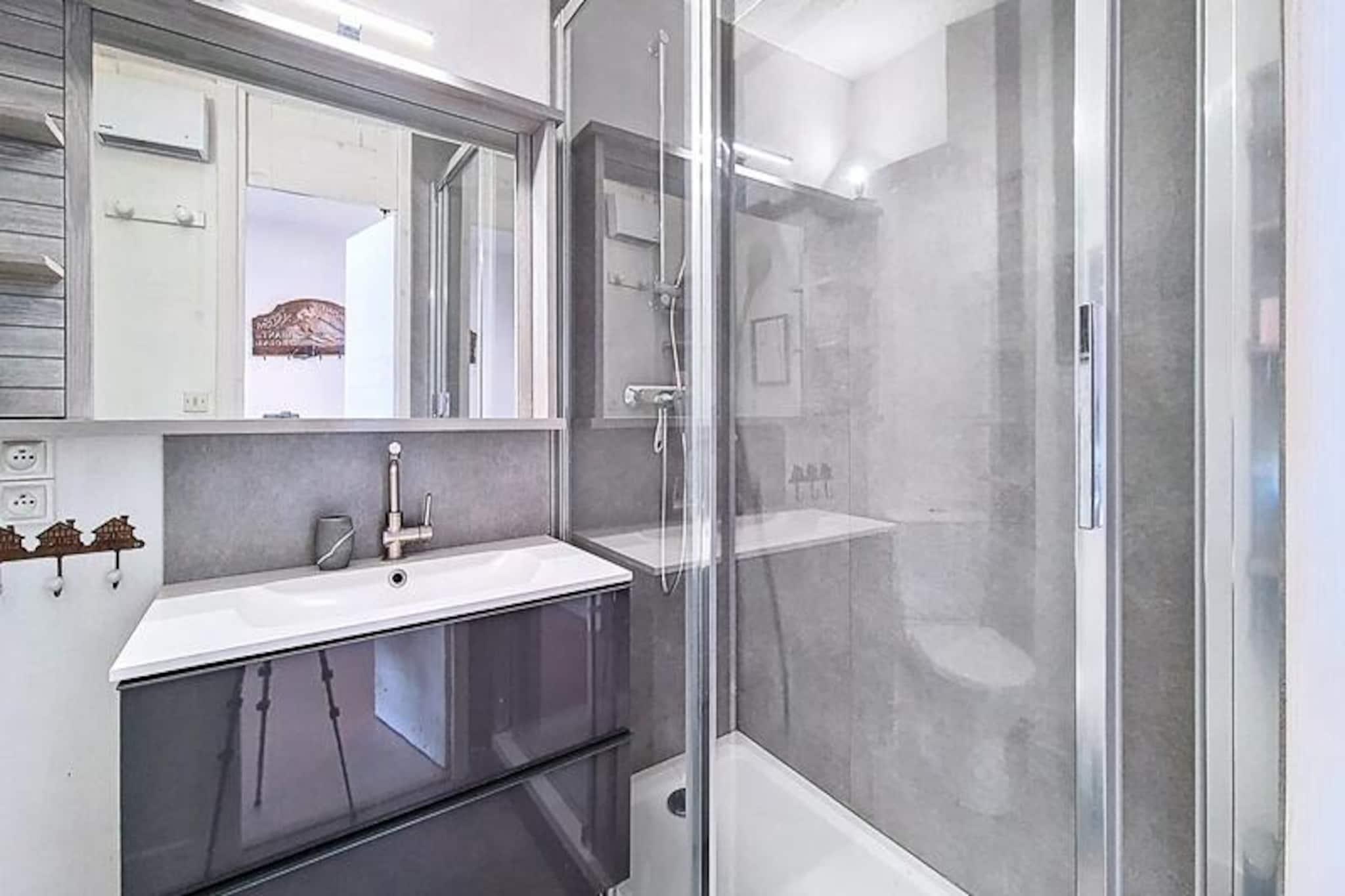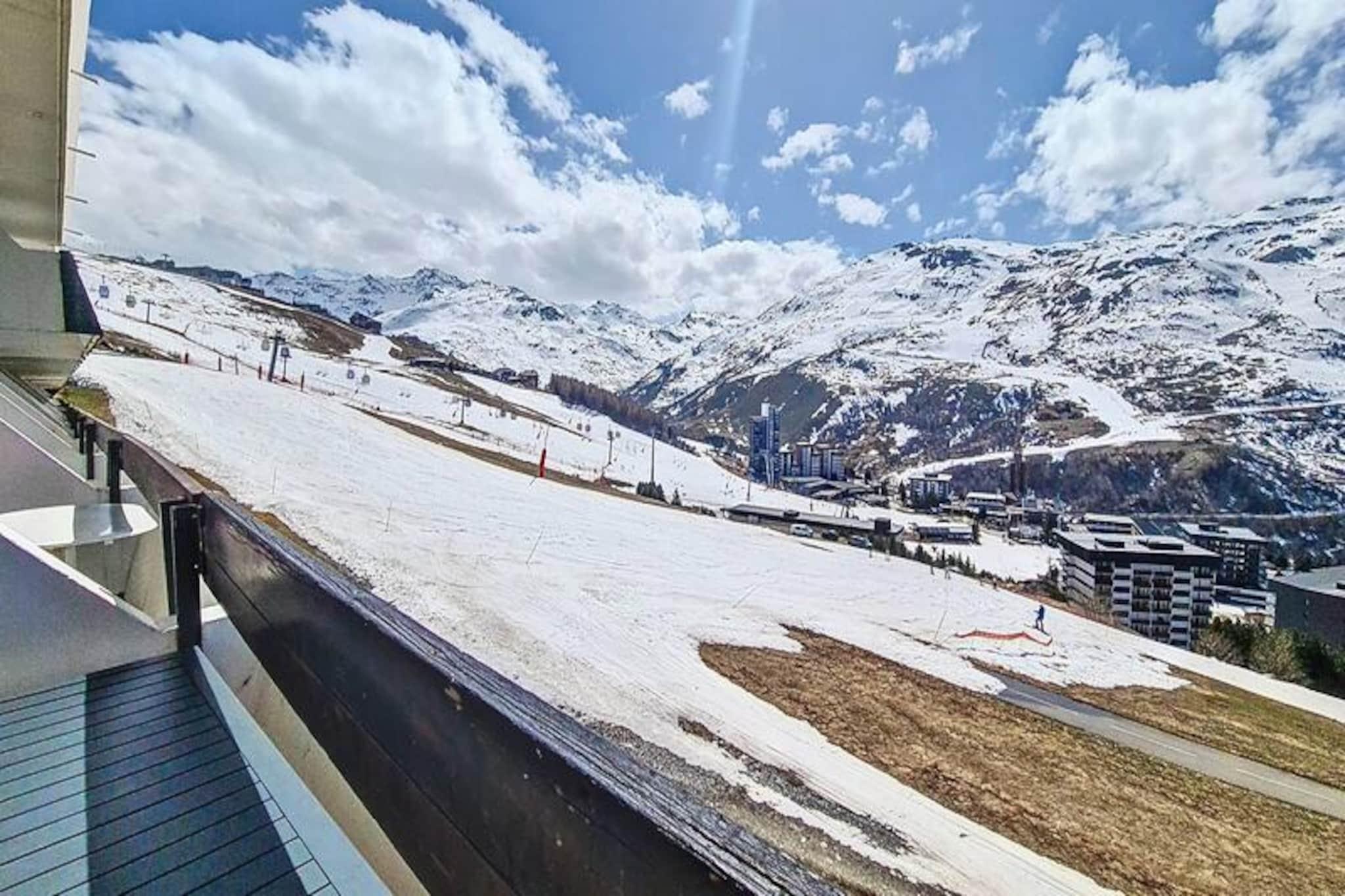 Högt ovanför den livliga skidorten Les Menuires erbjuder Brelin-byggnaden en unik alpin tillflyktsort med panoramautsikt och direkt tillgång till backarna. Belägen ovanför La Croisette-distriktet är denna fastighet sömlöst ansluten via dygnet runt-öppna hissar, vilket garanterar enkel åtkomst till byns hjärta. Tänk dig att vakna upp till gyllene solljus som strömmar genom din sydvästvända balkong, där hisnande bergsvyer sätter tonen för en dag av äventyr eller avkoppling. Denna triplexlägenhet är en fristad för familjer och grupper som söker komfort och bekvämlighet i de franska Alperna. \n\nLägenheten är 53 m² stor och rymmer upp till åtta gäster fördelade på tre omsorgsfullt utformade våningar. Vardagsrummet inbjuder dig att varva ner med en mysig soffa och TV, medan två sovrum erbjuder mångsidiga sovplatser, inklusive en dubbelsäng och två uppsättningar våningssängar. Det fullt utrustade köket är en kulinarisk entusiasts dröm, med moderna apparater som diskmaskin, tvättmaskin/torktumlare, ugn och espressomaskin, tillsammans med traditionella alpina detaljer som raclettegrill och fondue-set. Två separata toaletter och ett badrum med dusch säkerställer avskildhet och praktiska bekvämligheter för alla gäster. \n\nBrelin-byggnaden har direkt tillgång till skidbacken och skidförvaring på bottenvåningen, vilket gör den till ett perfekt val för vintersportsentusiaster. Bland bekvämligheterna på plats finns en shoppinggalleria med liftbiljettkontor och bekväm parkering vid Nant Benoit-liften, som ligger bara några steg bort. Oavsett om du utforskar backarna eller njuter av den livliga atmosfären på La Croisette, finns allt du behöver inom räckhåll. \n\nMed sitt exceptionella läge, fantastiska utsikt och omtänksamma bekvämligheter lovar denna lägenhet en oförglömlig vistelse i hjärtat av Les Trois Vallées. Oavsett om du är här för att åka skidor, vandra eller bara njuta av den alpina charmen, är detta din port till en verkligt minnesvärd bergsresa.