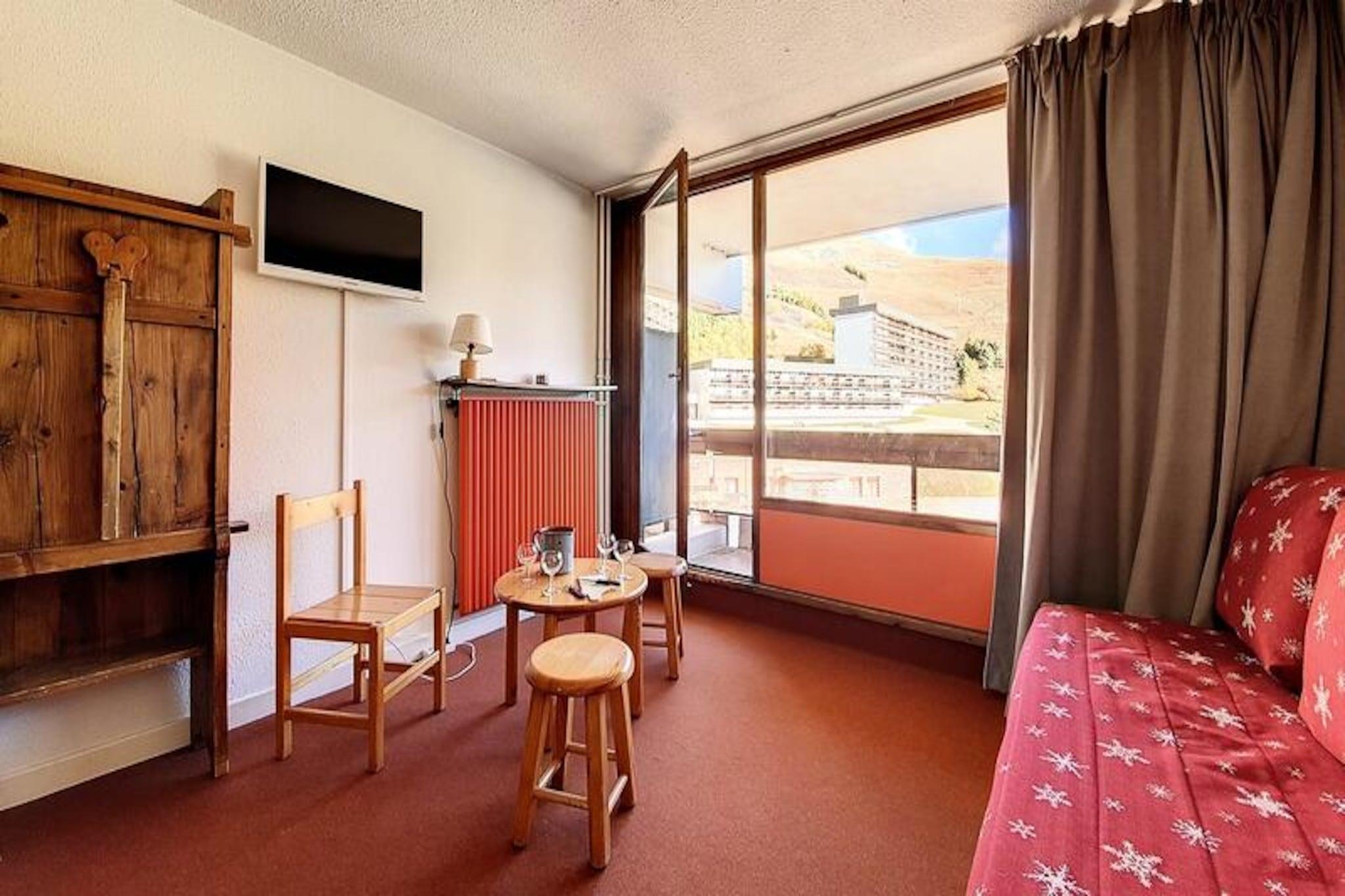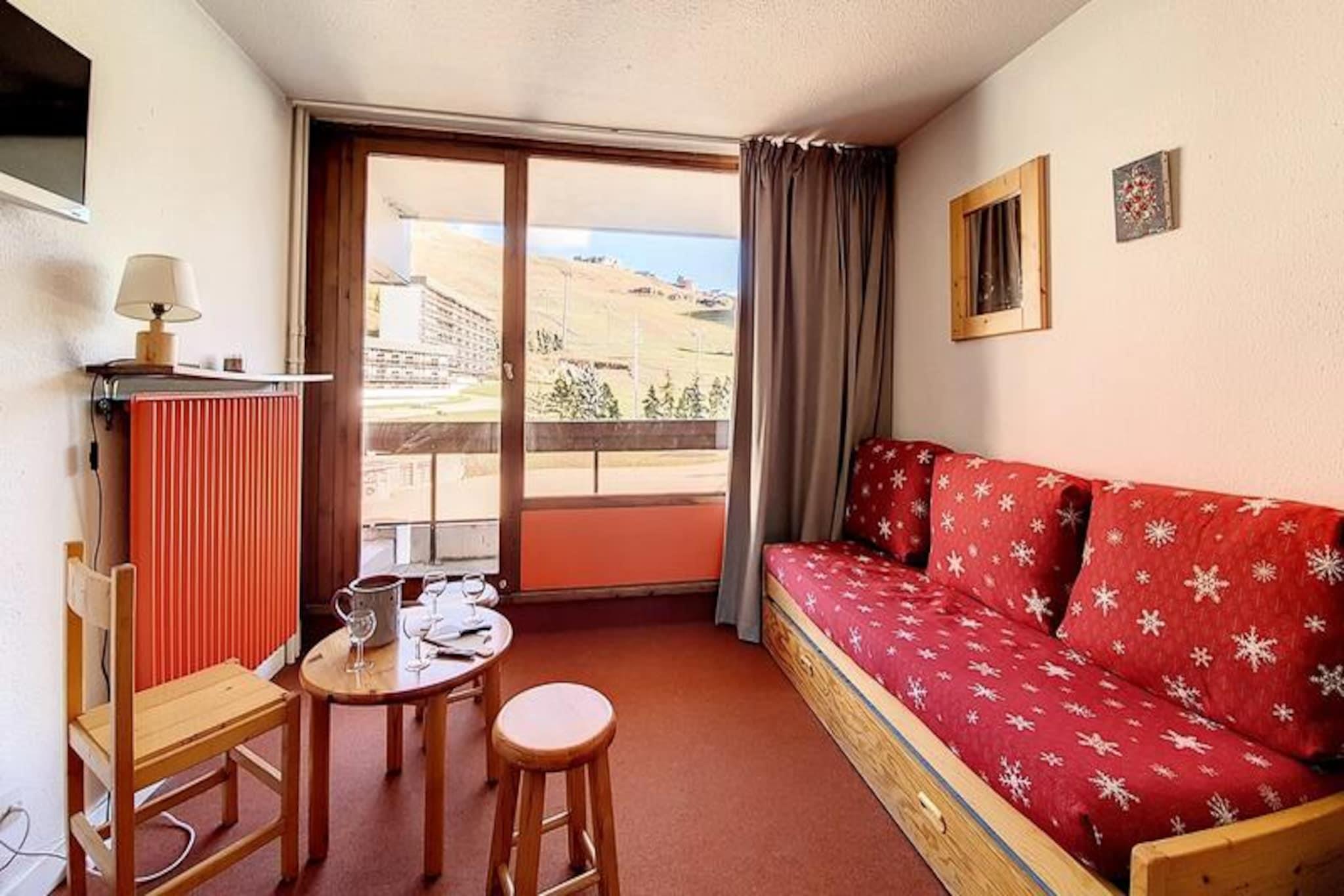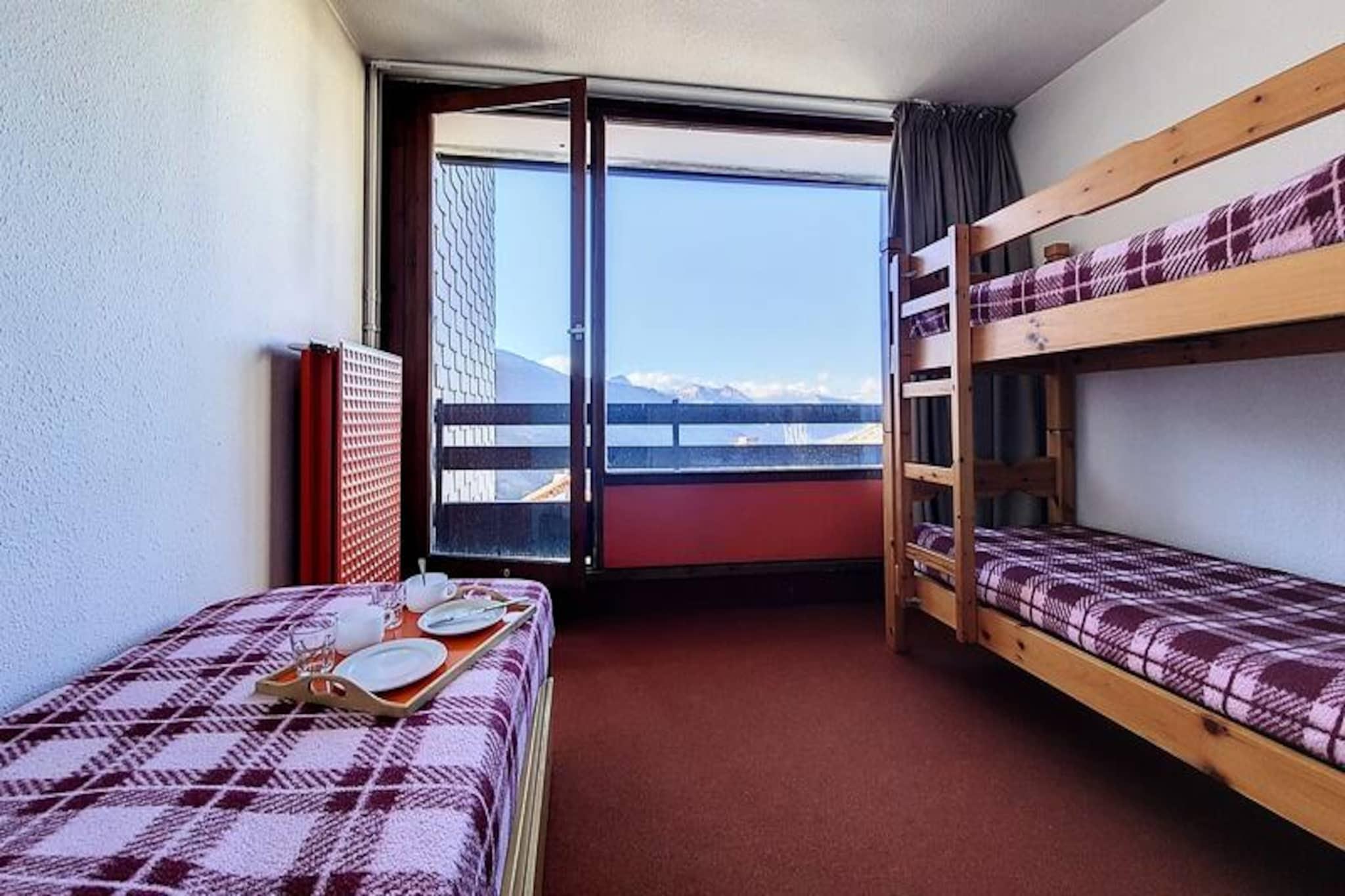 I hjärtat av de franska Alperna, där snöklädda toppar möter mysig alpin charm, erbjuder Lac du Lou-residenset en inbjudande tillflyktsort för både vintersportsentusiaster och naturälskare. Denna välbelägna lägenhet ligger bara några steg från Croisette-shoppingcentret och ger direkt tillgång till backarna via skidförvaringen som är bekvämt belägen i byggnadens källare. Oavsett om du är här för att åka skidor, utforska eller bara varva ner, garanterar denna fastighet en sömlös blandning av komfort och äventyr. \n\nDen 38 m² stora tvårumslägenheten, som ligger på andra våningen med hiss, rymmer bekvämt upp till fem gäster. Vardagsrummet har en bäddsoffa för en enda person och en utdragbar säng, kompletterat av en platt-TV för mysiga kvällar hemma. Sovrummet är omsorgsfullt utformat med två våningssängar och en enkelsäng, vilket gör det idealiskt för familjer eller små grupper. Ett välutrustat kök inkluderar två elektriska spishällar, en kombinerad mikrovågsugn/ugn, kylskåp, diskmaskin, brödrost, vattenkokare och kaffebryggare, vilket säkerställer att du har allt som behövs för att laga rejäla måltider efter en dag i backarna. Balkongen i söderläge erbjuder en solig plats att njuta av den alpina atmosfären, medan badrummet med badkar och separat toalett bidrar till bekvämligheten.\n\nUtanför lägenheten är läget oslagbart. Daghemmet och lekplatsen ligger bara 300 meter bort, vilket gör den perfekt för familjer. Den närliggande busstationen, bara 100 meter från byggnaden, garanterar enkel tillgång till omgivningarna. Med avgiftsbelagd Wi-Fi-åtkomst tillgänglig (beroende på nätverkstäckning) kan du hålla dig uppkopplad medan du njuter av din bergsresa.\n\nOavsett om du dras av spänningen i backarna eller Alpernas fridfulla skönhet, erbjuder Lac du Lou-residenset en varm och välkomnande bas för en oförglömlig semester. Skapa värdefulla minnen i denna charmiga alpina oas, där varje ögonblick inramas av det hisnande landskapet i de franska bergen.