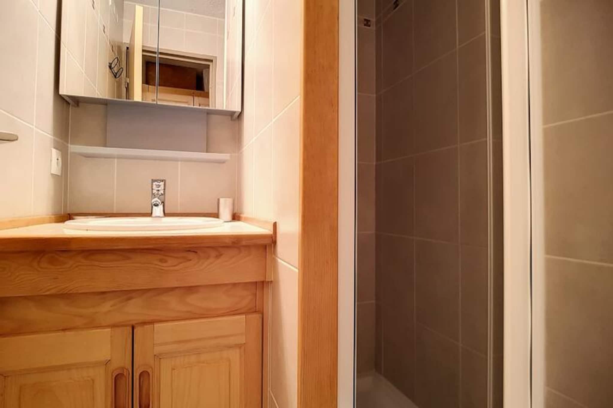 Högt ovanför det charmiga Reberty 1850-distriktet erbjuder denna mysiga alpina reträtt en oöverträffad ski-in/ski-out-upplevelse, perfekt för dem som är ivriga att fördjupa sig i Les Menuires snöiga magi. Från din balkong i söderläge på fjärde våningen kan du njuta av den friska bergsluften och den hisnande utsikten medan du planerar ditt nästa äventyr i backarna. Här känns varje ögonblick som ett vykort som vaknar till liv. \n\nLägenheten, omsorgsfullt utformad för upp till fem gäster, kombinerar komfort och funktionalitet i sin 30 m² stora planlösning. Vardagsrummet har två inbjudande bäddsoffor för enstaka personer och en TV, vilket skapar ett perfekt utrymme att varva ner efter en dags skidåkning. En skjutdörr separerar stugans sovrum med en mysig dubbelsäng, medan en sovalkov med våningssängar ger en touch av alpin charm. Det fullt utrustade köket, komplett med keramikhäll, miniugn, mikrovågsugn, kylskåp med mera, säkerställer att du har allt som behövs för att laga rejäla måltider. Moderna bekvämligheter som diskmaskin och kaffebryggare gör din vistelse ännu trevligare. Lägenheten har även ett badrum med dusch och en separat toalett för extra bekvämlighet.\n\nBelägen i Boedette A-residenset, har du säker åtkomst via nyckelkort och bekvämligheten med en hiss. I närheten finns små butiker och restauranger som tillgodoser alla dina behov, medan gratisbussar förbinder dig med det livliga Croisettens centrum. För en lugn promenad ligger Bruyères-distriktet bara en kort promenad bort, tillgängligt via en gångbro och offentlig hiss.\n\nOavsett om du är här för att karva genom orörda backar, utforska den pulserande lokala kulturen eller bara koppla av i den fridfulla alpina atmosfären, är denna lägenhet din port till oförglömliga minnen i hjärtat av de franska Alperna.