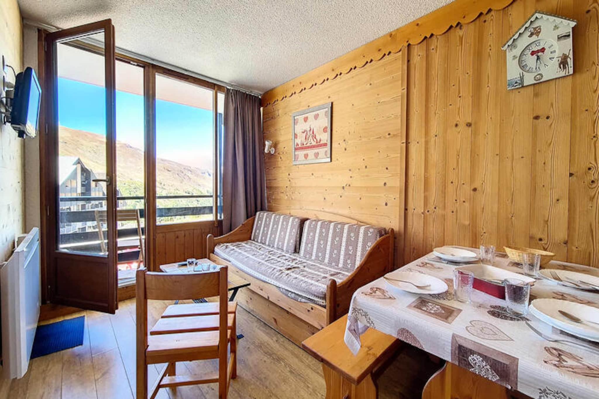 I det charmiga Preyerand-distriktet erbjuder denna vackert renoverade lägenhet i bergsstil en mysig tillflyktsort för upp till fem gäster. Med direkt tillgång till centrala La Croisette via den kostnadsfria Preyerand-linbanan som går dagligen från 8:00 till 23:00, har du bekvämlighet och komfort nära till hands. Oavsett om du är här för att åka skidor, vandra eller bara koppla av, garanterar detta läge att du alltid är nära till allt som händer. Lägenheten ligger bara en kort promenad från liftbiljettkontor och viktiga bekvämligheter, vilket gör den till en idealisk bas för dina alpina äventyr. \n\nDenna inbjudande lägenhet på 27 m² ligger på första våningen och har en balkong i västerläge, perfekt för att njuta av kvällssolen efter en dag i backen. Vardagsrummet har en bäddsoffa och en utdragbar säng, medan sovplatsen med fönster erbjuder en bekväm dubbelsäng. En alkov med två våningssängar ger flexibilitet för familjer eller grupper. Badrummet är utrustat med en modern dusch och toaletten är bekvämt separat. Köket är fullt utrustat med kylskåp, mikrovågsugn med grill, diskmaskin, brödrost, vattenkokare och elektrisk kaffebryggare, vilket säkerställer att du har allt du behöver för att laga rejäla måltider. Preyerand-distriktet är känt för sin lugna atmosfär och enkla tillgång till det pulserande La Croisette-området. Härifrån kan du utforska det fantastiska bergslandskapet, njuta av afterski-aktiviteter eller helt enkelt varva ner i den fridfulla omgivningen. Wi-Fi mot avgift finns tillgängligt och lägenheten är rökfri för extra komfort. Med sin genomtänkta planlösning och varma atmosfär lovar denna bostad en minnesvärd vistelse i de franska Alperna. Oavsett om du söker spännande utomhusäventyr eller en lugn bergsflykt, erbjuder denna lägenhet den perfekta blandningen av bekvämlighet och charm. Skapa oförglömliga minnen i denna idylliska alpina miljö.