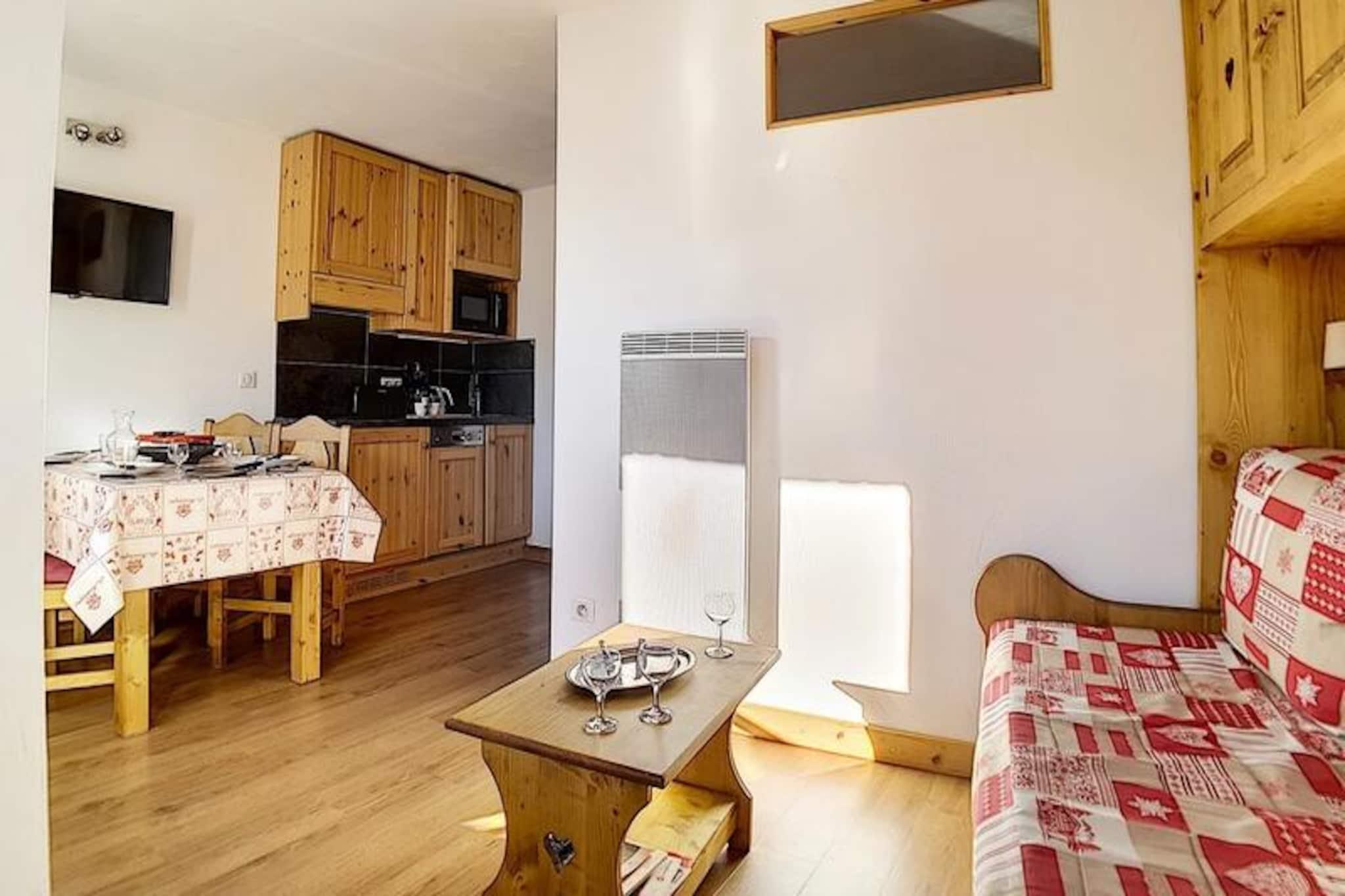 Högt ovanför Les Menuires livliga hjärta erbjuder denna charmiga lägenhet i Coryles B-residenset en mysig alpin tillflyktsort i det fridfulla Reberty 1850-distriktet. Med sin sydvästvända balkong på 6:e våningen bjuds du på fantastisk utsikt över bergen och varmt eftermiddagssolsken, perfekt för att varva ner efter en dag i backarna. Residensens bekväma läge gör att du aldrig är långt från all action, med skidbackar, restauranger och butiker bara en kort promenad bort. För extra bekvämlighet förbinder gratisbussar dig med det livliga Croisette-området, medan Bruyères-distriktet är lättillgängligt via en gångbro och offentlig hiss. Denna vackert renoverade lägenhet på 28 m² rymmer bekvämt upp till fem gäster, vilket gör den idealisk för familjer eller små grupper. Den noggrant utformade planlösningen inkluderar ett vardagsrum med en enkelsäng, en mysig sovalkov med våningssängar och ett privat sovrum med en dubbelsäng. Det moderna köket är fullt utrustat med keramikhäll, kombinationsugn, diskmaskin och allt du behöver för att laga rejäla måltider. Ett rymligt badrum med stor dusch och separat toalett bidrar till komforten, medan laminatgolv i hela lägenheten skapar en varm och inbjudande atmosfär. Coryles B-residensen erbjuder även praktiska bekvämligheter, inklusive hiss, säkert entrésystem och gratis Wi-Fi i lobbyn i grannbyggnaden. Gästerna kommer att uppskatta bekvämligheten med en täckt parkeringsplats, vilket garanterar enkel åtkomst under hela vistelsen. Oavsett om du är här för att åka skidor, vandra eller bara njuta av det hisnande alpina landskapet, erbjuder denna lägenhet den perfekta basen för dina bergsäventyr. Med sin blandning av komfort, bekvämlighet och spektakulära omgivningar är det en plats där oförglömliga minnen skapas.