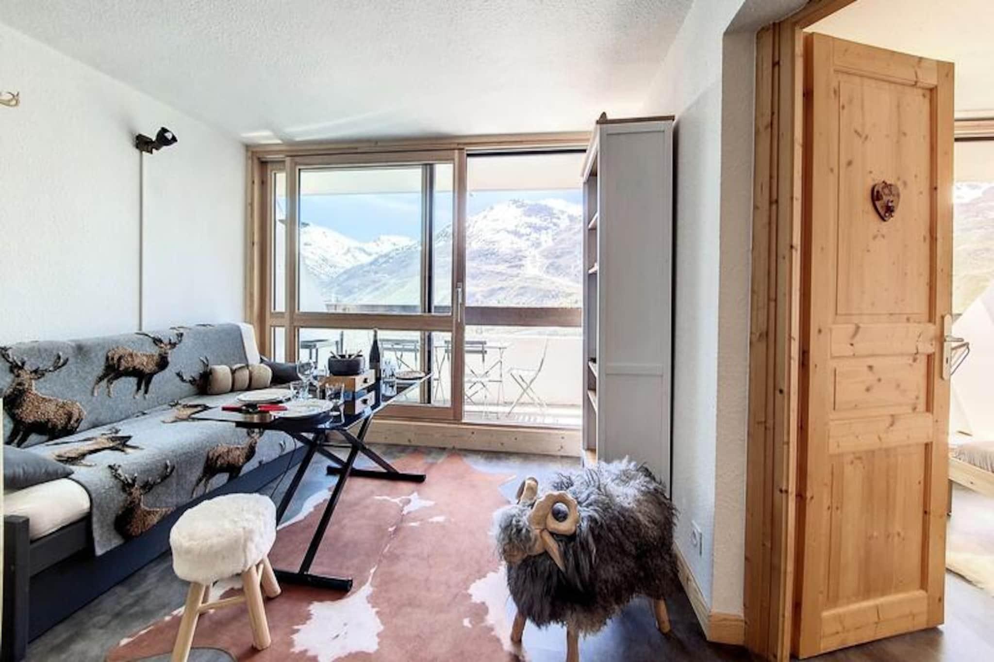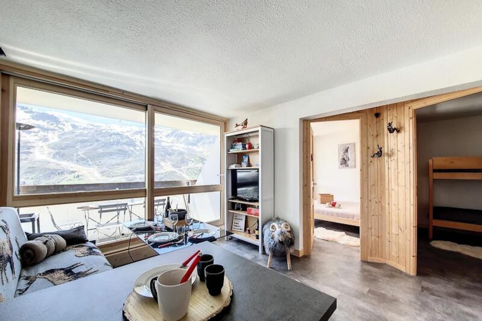 Högt ovanför den pulserande skidorten Les Menuires erbjuder Brelin-byggnaden en lugn alpin tillflyktsort med oöverträffad bekvämlighet. Denna plats, som är tillgänglig dygnet runt med offentliga hissar som ansluter till det livliga La Croisette-distriktet nedanför, kombinerar lugn och ro med enkel tillgång till händelsernas centrum. Från sin sjunde våning ståtar denna vackert renoverade lägenhet med två balkonger i söderläge som flödar över utrymmet med solljus och erbjuder hisnande panoramautsikt över de omgivande topparna och dalarna. Oavsett om du smuttar på ditt morgonkaffe eller varvar ner efter en dag i backarna, kommer landskapet garanterat att fängsla. \n\nLägenheten är designad för upp till fyra gäster, sträcker sig över 36 m² och har ett mysigt vardagsrum utrustat med TV och balkongutgång, ett sovrum med dubbelsäng och egen balkong samt ett andra sovrum med två våningssängar. Det fullt utrustade köket har allt du behöver för att laga rejäla måltider, från spishäll och ugn till fondue-set för autentisk alpin mat. Moderna bekvämligheter som diskmaskin, tvättmaskin och Wi-Fi mot avgift garanterar en problemfri vistelse, medan rökfria policyn och förbudet mot husdjur upprätthåller en ren och lugn miljö.\n\nSjälva Brelin-byggnaden inrymmer viktiga bekvämligheter, inklusive butiker, liftbiljettkontor och skidförvaring bekvämt belägna på bottenvåningen. Gratis parkering finns vid den närliggande Combes-liften, vilket gör ankomst och avresa enkelt. Med sitt utmärkta läge kan gästerna enkelt nå backarna och utforska det vidsträckta skidområdet Les Menuires, känt för sina välpreparerade pister och livliga afterski-scen.\n\nOavsett om du söker spännande vinteräventyr eller en lugn sommartillflyktsort, erbjuder denna lägenhet den perfekta blandningen av komfort, bekvämlighet och fantastisk alpin charm. Låt magin i Les Menuires inspirera till oförglömliga minnen under din vistelse.