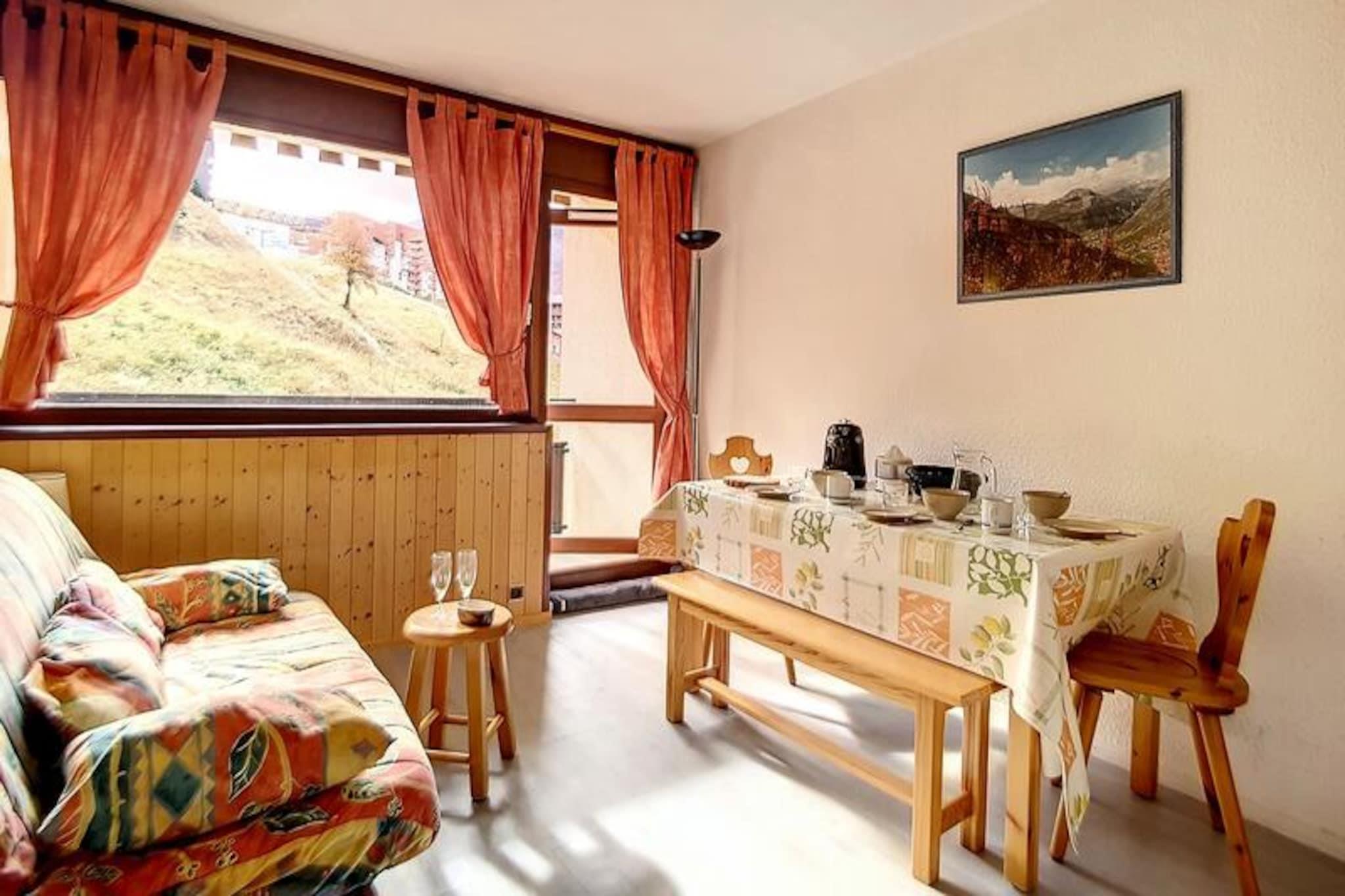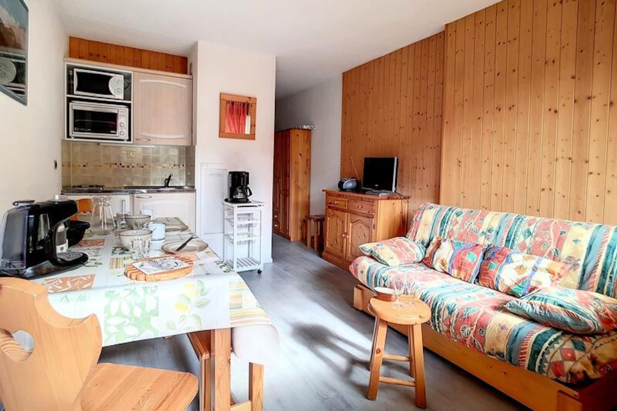 I det lugna Fontanettes-distriktet i Les Menuires erbjuder denna charmiga studiolägenhet en mysig tillflyktsort med direkt tillgång till backarna, bara 10 meter från din tröskel. Tänk dig att vakna upp till solbelysta utsikter över snötäckta pister från din balkong i söderläge, andas in frisk alpluft och kliva rakt in i en dag med spännande skidäventyr. Med sina fridfulla omgivningar och bekväma läge är denna fastighet perfekt för dig som söker en blandning av avkoppling och action i hjärtat av skidområdet Les Trois Vallées. Studiolägenheten på 24 m², som ligger på andra våningen i Asters-residensen, har delvis renoverats för att garantera komfort och praktisk användning. Den rymmer upp till fyra gäster, med en bäddsoffa för två personer i vardagsrummet och en alkov med två våningssängar. Det ljusa och inbjudande utrymmet inkluderar ett fullt utrustat kök med moderna apparater som en Senseo-kaffemaskin, miniugn och brödrost, vilket gör det enkelt att laga mat efter en dag i backen. Det renoverade badrummet med badkar erbjuder en lugnande tillflyktsort, medan elektriska rulljalusier ger avskildhet och bekvämlighet. Fontanettes-distriktet är anslutet till La Croisette och Bruyères med gratisbussar som går var 20:e minut eller en naturskön 10–15 minuters promenad längs en gångstig. I närheten hittar du en skiduthyrning, ett bageri och en restaurang, vilket säkerställer att du har allt du behöver inom räckhåll. Oavsett om du njuter av backarna eller utforskar den charmiga byatmosfären, erbjuder detta läge en perfekt balans mellan tillgänglighet och lugn. Med sin oslagbara närhet till backarna och pittoreska alpina miljö är denna studiolägenhet ett perfekt val för par eller små familjer som vill fördjupa sig i magin i de franska Alperna.