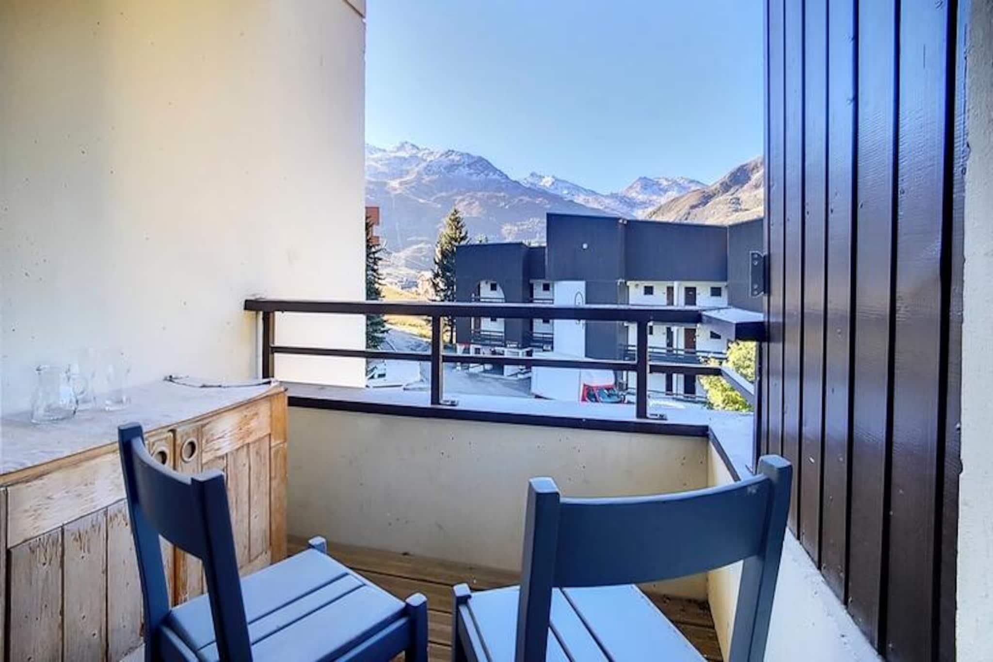 I hjärtat av det pittoreska Place des Bouquetins erbjuder denna charmiga lägenhet en mysig alpin tillflyktsort bara 20 meter från backarna. Tänk dig att stiga ut genom din dörr och vara nära spännande skidäventyr, allt medan du är omgiven av de franska Alpernas fridfulla skönhet. Med sin balkong i sydvästläge kan du njuta av eftermiddagssolen medan du njuter av utsikten över det livliga torget nedanför, vilket skapar den perfekta miljön för avkoppling efter en dag på berget. \n\nDenna omsorgsfullt designade lägenhet på 32 m² rymmer bekvämt upp till fem gäster, vilket gör den idealisk för familjer eller små grupper. Vardagsrummet har en bäddsoffa som kan bäddas om till en dubbelsäng, medan sovrummet har två våningssängar och en extra enkelsäng. Det välutrustade köket har keramikhäll, grillugn, mikrovågsugn, kylskåp, diskmaskin och allt du behöver för att laga läckra måltider. Moderna bekvämligheter som gratis Wi-Fi, TV och elektriska jalusier garanterar en bekväm och problemfri vistelse. Lägenheten har också ett skidförvaringsskåp för din bekvämlighet. En gångbro mittemot boendet förbinder dig med det livliga Bruyères-distriktet, där du hittar en mängd olika restauranger, butiker, en biograf, en vattenpark och ett hälsocenter. Familjer kommer att uppskatta den närliggande rodelbanan, skidskolan och lekplatsen. För de som vill utforska vidare ligger Croisette-distriktet bara 15 minuters promenad bort via en naturskön gångstig. Oavsett om du är här för att åka i färskt puder eller bara njuta av den alpina charmen, erbjuder denna lägenhet en perfekt blandning av komfort, bekvämlighet och tillgång till det bästa av Les Menuires. Skapa oförglömliga minnen i denna härliga bergsflykt.