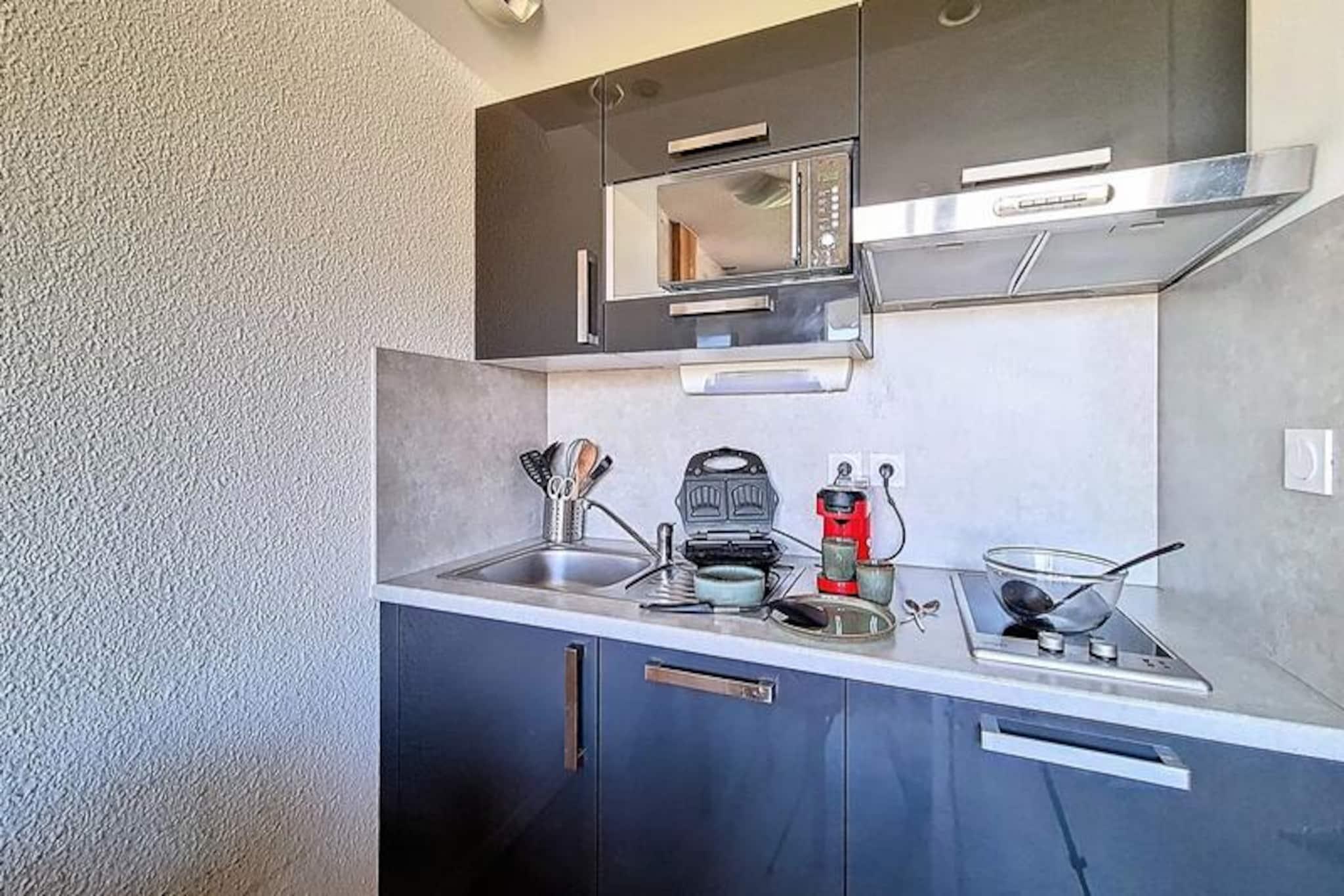 Högt ovanför det livliga Reberty 1850-distriktet erbjuder denna charmiga studiolägenhet en mysig tillflyktsort för dig som söker en lugn flykt till bergen. Tänk dig att smutta på ditt morgonkaffe på den nordvästvända balkongen medan du njuter av den friska alpina luften och den hisnande utsikten över de omgivande topparna. Oavsett om du är här för att åka skidor, vandra eller bara varva ner, lovar denna bostad en perfekt blandning av komfort och bekvämlighet. \n\nLägenheten ligger på tredje våningen i Médian-residenset och rymmer bekvämt upp till tre gäster. Vardagsrummet har en bäddsoffa för en person och en utdragbar säng, medan en separat sovalkov ger extra avskildhet med en enkelsäng. Det fullt utrustade köket har moderna bekvämligheter som mikrovågsugn, diskmaskin och Senseo-kaffemaskin, vilket säkerställer att du har allt du behöver för att laga rejäla måltider efter en dag av äventyr. Lägenhetens plastgolv ger en touch av praktiskhet, och genomtänkta detaljer som filtar och en TV förbättrar din vistelse. \n\nBara 250 meter från backarna är denna bostad idealisk för skidentusiaster. I närheten hittar du butiker och en skidskola, vilket gör det enkelt att ta sig till allt du behöver för en minnesvärd semester. Gratis parkering vid foten av byggnaden ökar bekvämligheten, medan avgiftsbelagt Wi-Fi säkerställer att du kan hålla dig uppkopplad under din vistelse. \n\nDenna rökfria lägenhet renoverades 2014 och kombinerar modern komfort med alpin charm. Oavsett om du planerar en vintersemester eller en sommarsemester, inbjuder Médian-residenset dig att uppleva magin i de franska Alperna med stil.