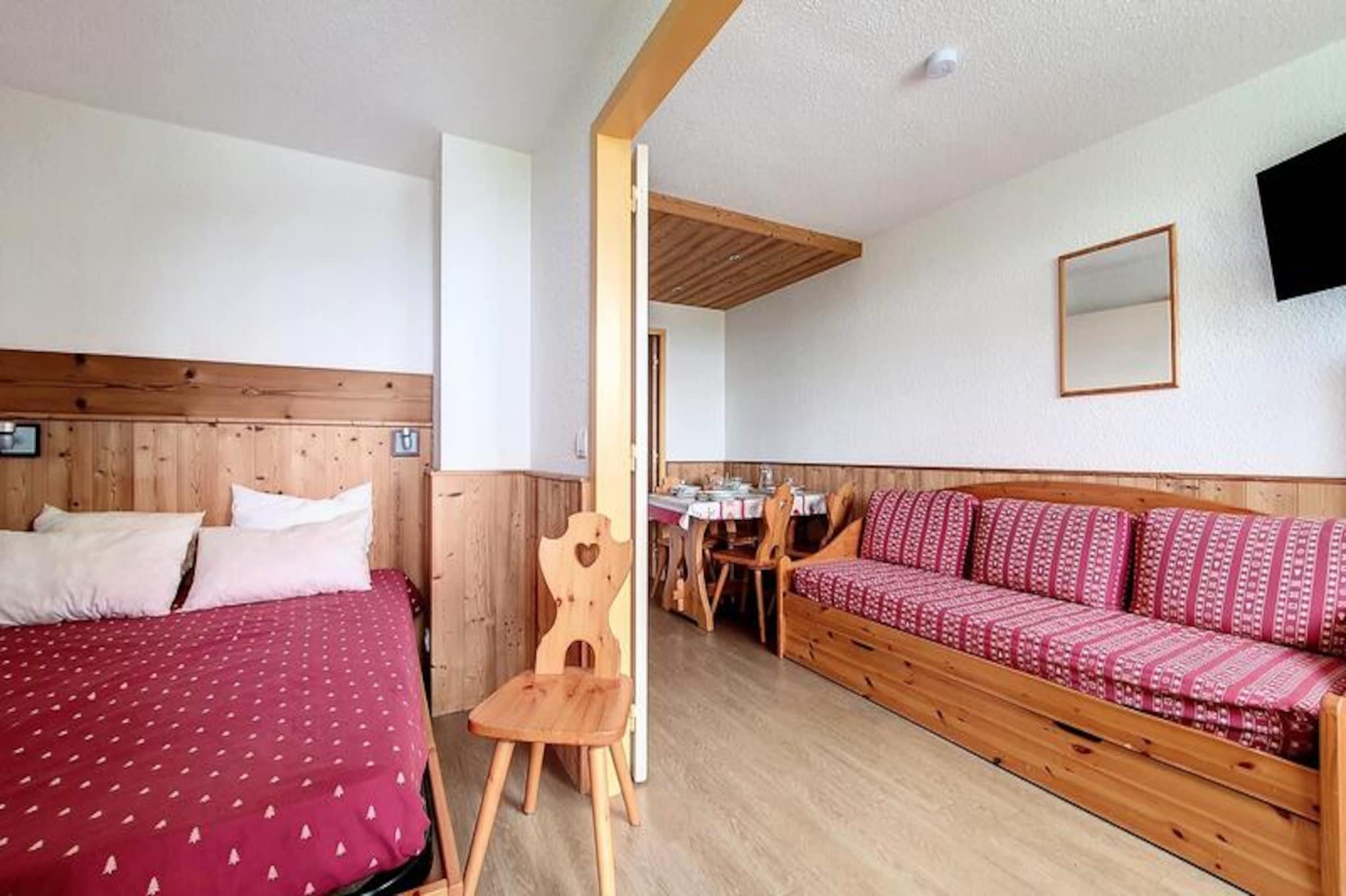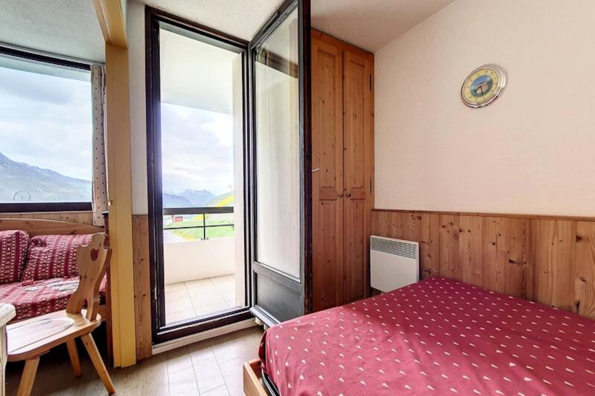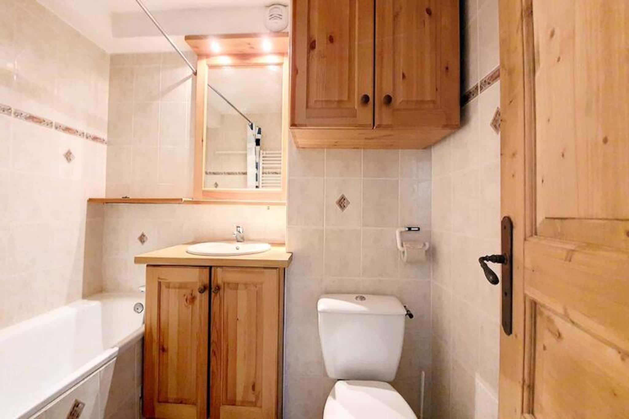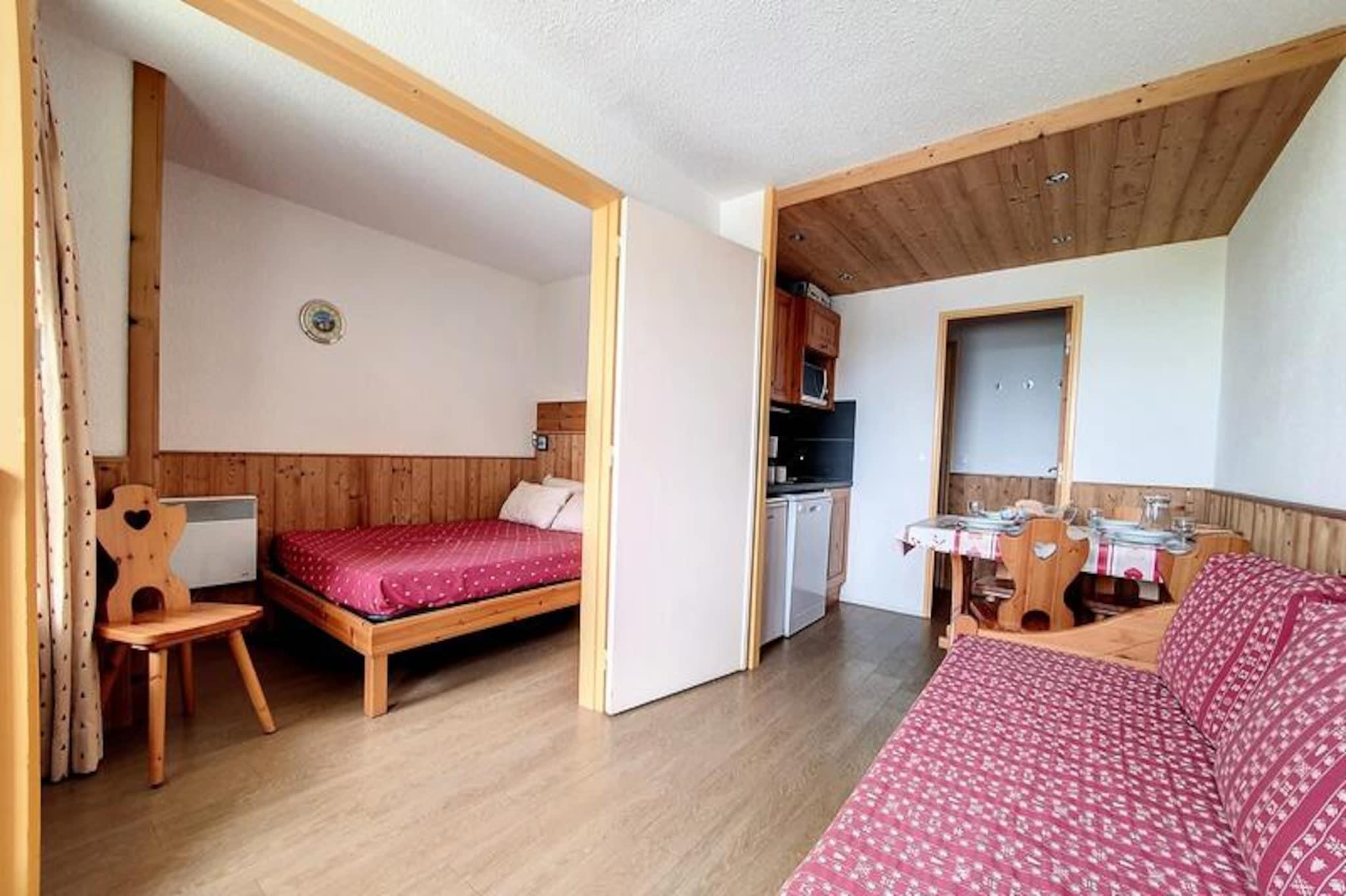 I det fridfulla Reberty 1850-distriktet erbjuder denna charmiga tvårumslägenhet en mysig tillflyktsort för upp till fyra gäster. Belägen på andra våningen i Médian-residenset, kombinerar den modern komfort med alpin charm, vilket gör den till ett idealiskt val för par eller små familjer som söker en minnesvärd bergssemester. Den nordostvända balkongen inbjuder dig att börja dagen med frisk bergsluft och utsikt över de omgivande topparna, vilket sätter tonen för en oförglömlig vistelse i de franska Alperna. Gratis parkering vid foten av byggnaden garanterar bekvämlighet, medan närliggande butiker och en skidskola gör detta läge perfekt för både avkoppling och äventyr. Backarna ligger bara 250 meter bort, vilket ger enkel tillgång till spännande vintersporter eller natursköna sommarvandringar. Inuti har lägenheten en genomtänkt planlösning med en flyttbar skiljevägg för ökad flexibilitet. Vardagsrummet har en bäddsoffa för en enda person och en utdragbar säng, kompletterat med en TV för mysiga kvällar inomhus. Sovrummet är möblerat med en bekväm dubbelsäng, vilket garanterar vilsamma nätter efter aktiva dagar. Det fullt utrustade köket har en spishäll med två plattor, mikrovågsugn, kylskåp, diskmaskin, brödrost, vattenkokare och elektrisk kaffebryggare, vilket gör det enkelt att laga mat. Linoleumgolv i hela lägenheten gör den praktisk och enkel att underhålla. Efter en dag med att utforska backarna eller lederna kan du varva ner i badrummet med badkar och toalett. Lägenheten är rökfri och husdjursfri, men den är utrustad med filtar för extra komfort. Betalt Wi-Fi finns tillgängligt, beroende på nätverkstäckning, så att du kan hålla dig uppkopplad under din vistelse. Med sin blandning av bekvämlighet, komfort och närhet till viktiga faciliteter är denna lägenhet den perfekta basen för dina alpina äventyr. Oavsett om du är här för att åka skidor, vandra eller bara koppla av, erbjuder Médian-residenset en varm och välkomnande tillflyktsort i hjärtat av de franska Alperna.