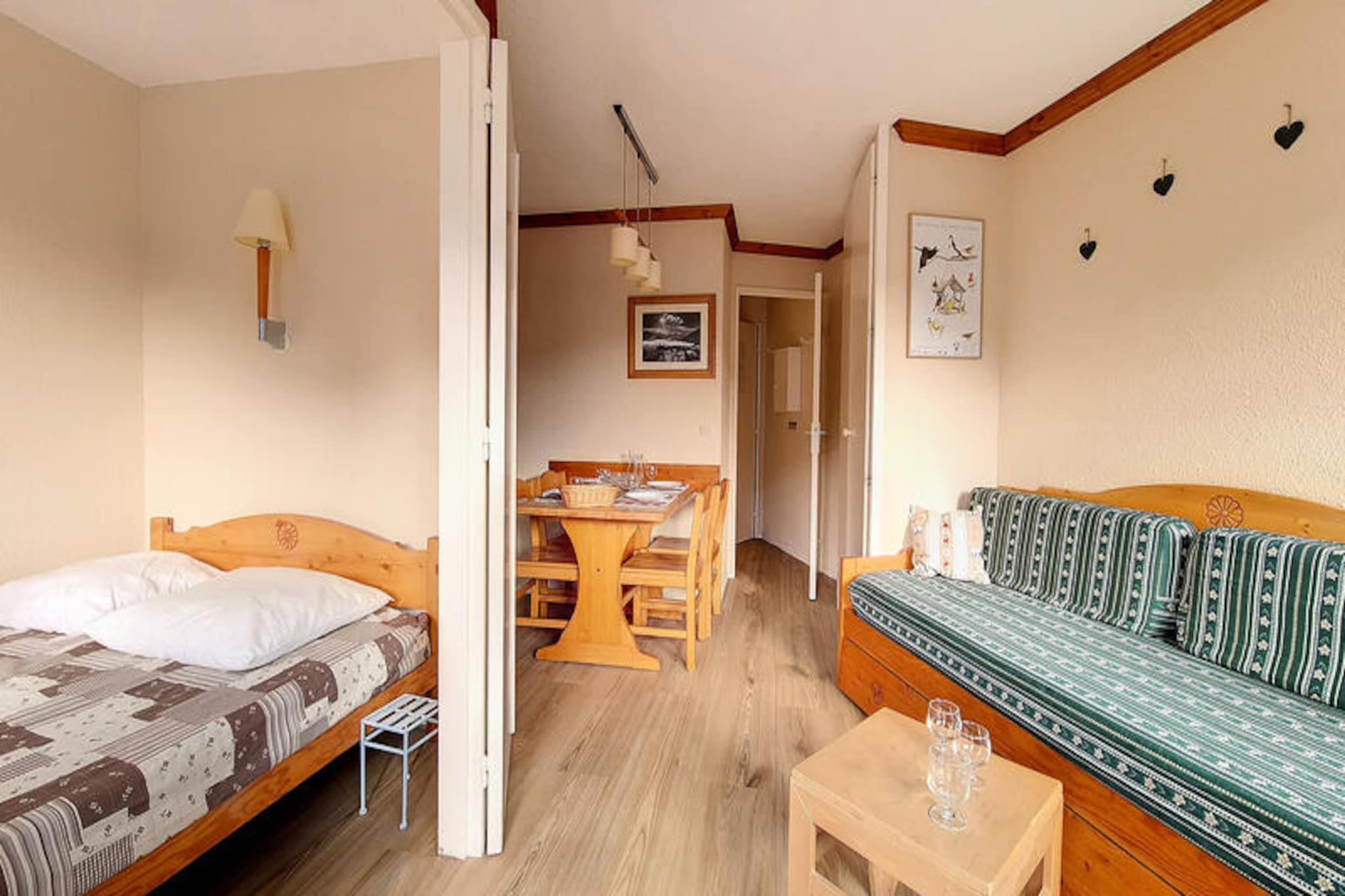 I det charmiga Reberty 1850-distriktet erbjuder denna mysiga lägenhet en härlig alpin tillflyktsort för par eller små familjer som söker en lugn tillflyktsort. Med sin balkong i söder-/österläge kan du vakna upp till morgonsolens gyllene nyanser och njuta av den fridfulla utsikten över bergen medan du smuttar på ditt kaffe. Médian-residenset är perfekt beläget för att kombinera bekvämlighet och lugn, vilket gör det till en idealisk bas för dina äventyr i de franska Alperna. Gratis parkering vid foten av byggnaden garanterar enkel åtkomst, medan butiker och en skidskola ligger bara en kort promenad bort. Backarna ligger bara 250 meter från din tröskel och inbjuder dig att dyka ner i den snöiga spänningen utan dröjsmål. Inuti är lägenheten noggrant utformad för att maximera komforten inom sina 24 m². Vardagsrummet har en bäddsoffa för en enda person och en utdragbar säng, vilket ger flexibla sovarrangemang. Det separata sovrummet har en mysig dubbelsäng för vilsamma nätter. Det fullt utrustade köket har moderna bekvämligheter som spishäll, ugn, kylskåp, diskmaskin, brödrost, vattenkokare och kaffebryggare, så att du kan laga rejäla måltider efter en dag i backarna. De heltäckningsmattade golven ger värme och en hemtrevlig känsla, medan badrummet med badkar erbjuder en avkopplande avslutning på aktiva dagar. Bortom lägenheten erbjuder distriktet Reberty 1850 en blandning av bekvämlighet och charm. Oavsett om du utforskar närliggande butiker, skriver in dig på skidlektioner eller bara njuter av den alpina atmosfären, är allt inom räckhåll. På vintern lockar backarna med spännande nedfarter, medan sommaren förvandlar området till en fristad för vandring och naturutforskning. Med sin välkomnande atmosfär och utmärkta läge inbjuder denna lägenhet dig att skapa oförglömliga minnen i hjärtat av de franska Alperna. Oavsett om du är här för skidåkning, avkoppling eller att upptäcka bergens skönhet, är Médian-residenset din perfekta alpina tillflyktsort.
