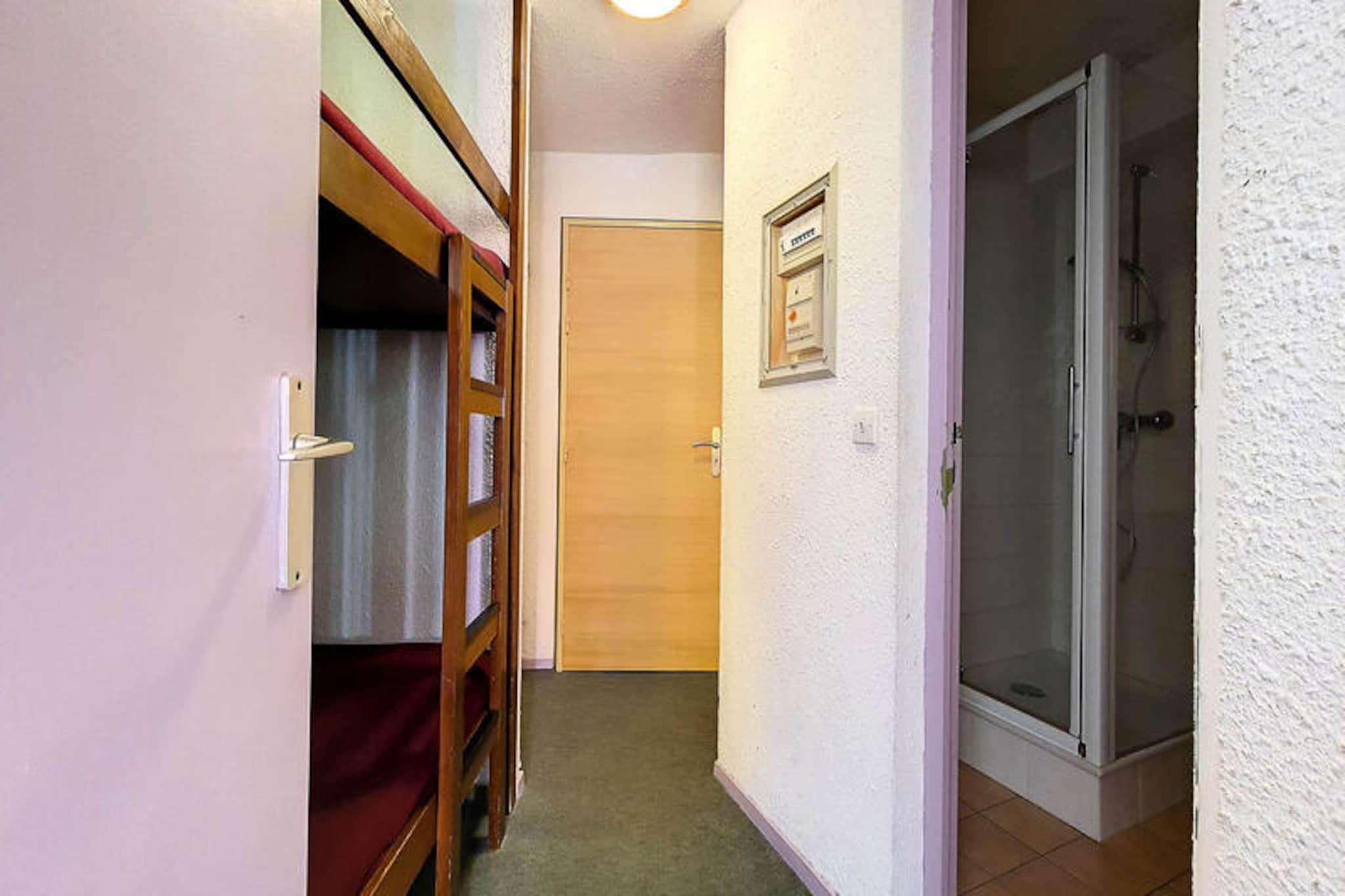 Högt ovanför den pittoreska Belleville-dalen erbjuder denna charmiga studiolägenhet i Boedette D-residenset en idyllisk alpin tillflyktsort med direkt tillgång till ski-in/ski-out. Perfekt beläget på Place des Bouquetins, placerar residenset dig i hjärtat av Les Menuires pulserande vinterparadis, där snötäckta toppar och spännande backar väntar precis utanför dörren. Oavsett om du är här för adrenalinet från skidåkningen eller lugnet vid bergsutsikten, lovar denna mysiga oas en oförglömlig tillflyktsort. Den omsorgsfullt designade studion på 22 m² rymmer upp till fyra gäster, vilket gör den idealisk för par eller små familjer. Vardagsrummet har en bekväm bäddsoffa för en enda person och en utdragbar säng, medan en separat sovalkov med våningssängar garanterar avskildhet och vilsamma nätter. Det kompakta men fullt utrustade köket har keramikhäll, mikrovågsugn, kylskåp, diskmaskin, kaffebryggare och vattenkokare, så att du kan laga rejäla måltider efter en dag i backarna. Ett modernt badrum med dusch och separat toalett ökar bekvämligheten, medan lägenhetens varma heltäckningsmattor skapar en välkomnande atmosfär. Gå ut och upptäck gångbron som förbinder dig med det livliga Bruyères-distriktet, där en mängd bekvämligheter väntar. Från restauranger och butiker till en biograf, vattenpark, hälsocenter och skidskola, allt du behöver finns inom räckhåll. Familjer kommer att älska rodelbanan och lekplatsen, medan äventyrare kan utforska det närliggande Croisette-distriktet, bara 15 minuters promenad bort. Oavsett om du söker äventyr eller avkoppling, erbjuder denna studiolägenhet den perfekta basen för att uppleva magin i Les Menuires. Med sitt oslagbara läge, mysiga interiörer och tillgång till faciliteter i världsklass börjar din alpina semester här.