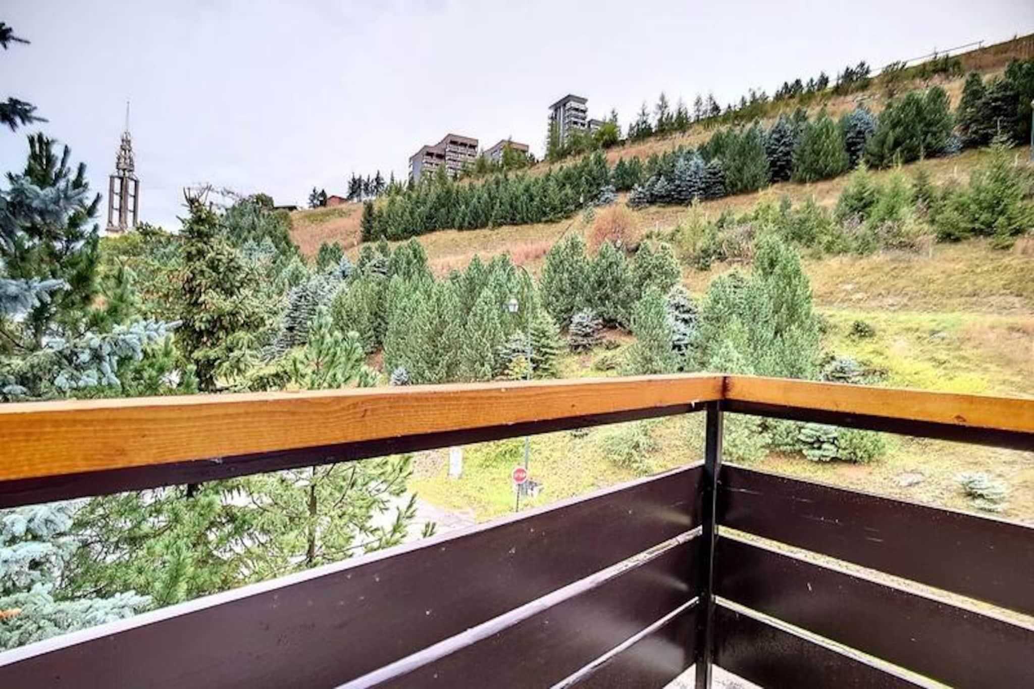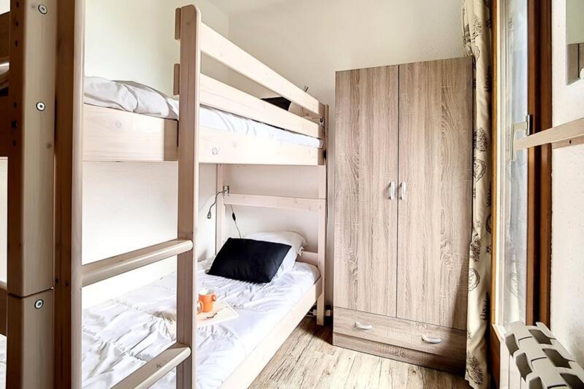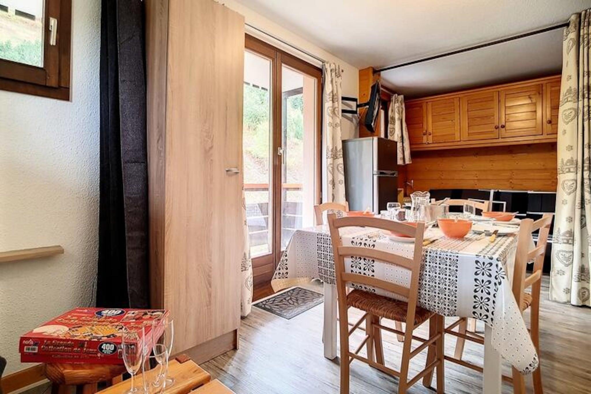I det fridfulla Fontanettes-distriktet erbjuder denna charmiga alpina lägenhet en lugn tillflyktsort bara några minuter från backarna. Tänk dig att vakna upp till den friska bergsluften, kliva ut på din rymliga hörnbalkong i österläge och njuta av morgonljuset medan de snöklädda topparna glittrar i fjärran. Med skidbackarna bara 300 meters promenad bort och bekväm tillgång till La Croisette och Bruyères via gratisbussar eller en naturskön 10-15 minuters promenad, balanserar detta läge perfekt lugn och tillgänglighet. \n\nDenna mysiga lägenhet på 29 m² är omsorgsfullt utformad för att rymma upp till fem gäster. Vardagsrummet har en bekväm bäddsoffa för två, medan sovrummet, separerat med en skjutdörr, har en våningssäng och gott om garderobsutrymme. En sovalkov med en dubbelsäng erbjuder extra avskildhet, vilket gör den idealisk för familjer eller små grupper. Det fullt utrustade köket, komplett med diskmaskin, stort kylskåp, ugn och mikrovågsugn, säkerställer att du kan laga rejäla måltider efter en dag i backarna. Moderna bekvämligheter som Wi-Fi, TV och skidförvaring bidrar till komforten och praktiskheten under din vistelse.\n\nFontanettes-distriktet är en lugn oas med viktiga bekvämligheter nära till hands, inklusive en skiduthyrning, ett bageri och en mysig restaurang. Oavsett om du njuter av en lugn promenad till närliggande områden eller utnyttjar den kostnadsfria transferservicen, finns allt du behöver inom räckhåll. På kvällarna kan du koppla av på din balkong med utsikt över klocktornet och låt bergens lugna charm lugna din själ.\n\nMed sitt utmärkta läge, omtänksamma bekvämligheter och inbjudande atmosfär är denna lägenhet den perfekta basen för att skapa oförglömliga alpina minnen. Oavsett om du är här för spänningen i backarna eller lugnet i bergen, lovar din resa till Fontanettes att bli verkligt speciell.