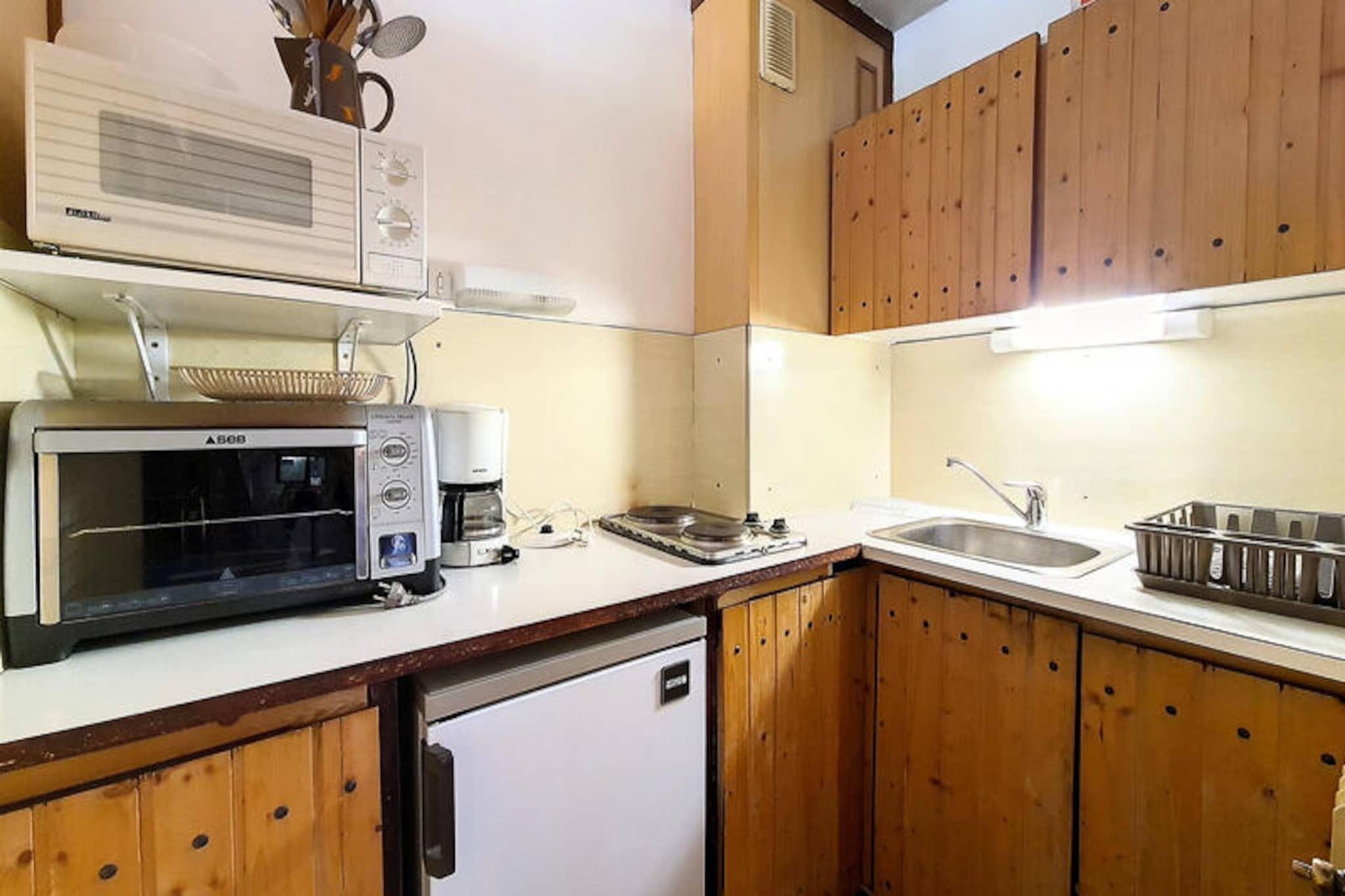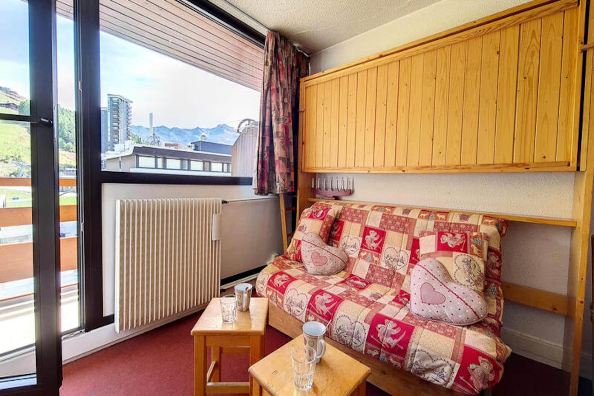 I hjärtat av Croisette-distriktet erbjuder denna charmiga lägenhet en plats på första parkett med utsikt över de snötäckta sluttningarna i de franska Alperna. Tänk dig att vakna upp till solens gyllene strålar som strömmar genom din balkong i sydostläge, med de orörda skidbackarna bara några steg bort. Denna ski-in/ski-out-bostad är en fristad för vintersportsentusiaster, med oöverträffad tillgång till backarna och bekvämligheten av att vara bara 20 meter från den berömda ESF-skidskolan. Oavsett om du är här för att åka i färskt puder eller bara njuta av den alpina atmosfären, lovar detta läge en oförglömlig bergsflykt. \n\nDenna ljusa och rymliga tvårumslägenhet är 35 m² stor och rymmer bekvämt upp till fyra gäster. Vardagsrummet har en mysig bäddsoffa för två personer och en TV, perfekt för att varva ner efter en dag av äventyr. Det separata sovrummet har en bekväm dubbelsäng, vilket garanterar vilsamma nätter. Det fullt utrustade köket har kylskåp, elektriska spisar, mikrovågsugn, ugn, vattenkokare, kaffebryggare och brödrost, vilket gör det enkelt att laga rejäla måltider. Badrummet är utrustat med badkar, och det finns en separat toalett för extra bekvämlighet. Observera att detta är en rökfri lägenhet och är utrustad med filtar för din komfort. Avgiftsbelagd Wi-Fi-åtkomst finns tillgänglig, beroende på nätverkstäckning.\n\nBortom lägenheten erbjuder Croisette-distriktet ett pulserande utbud av bekvämligheter. Byggnaden är ansluten direkt till en shoppinggalleria, vilket säkerställer att du har allt du behöver nära till hands. Ett daghem ligger bara 200 meter bort, vilket gör det till ett familjevänligt val. Gratis utomhusparkering finns mittemot byggnaden, i mån av tillgång. För dig som söker afterski-aktiviteter ligger den livliga atmosfären på anläggningen bara en kort promenad bort, med restauranger, butiker och underhållning för att fullända din alpina upplevelse.\n\nOavsett om du besöker för spänningen i backarna eller den fridfulla utsikten över bergen, är denna mysiga tillflyktsort i Vanoise-byggnaden din port till det bästa av de franska Alperna. Låt bergens magi skapa minnen som varar livet ut.