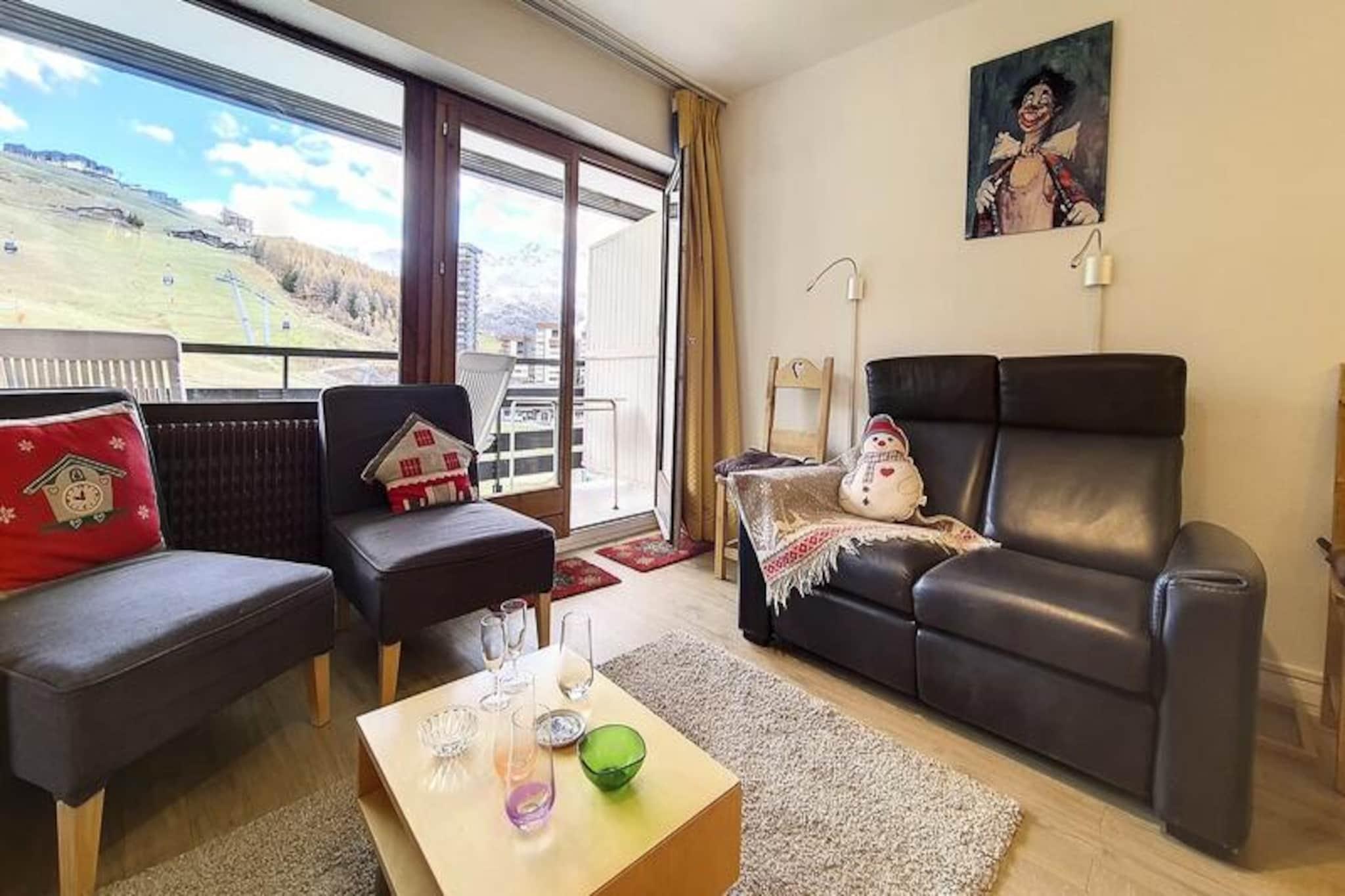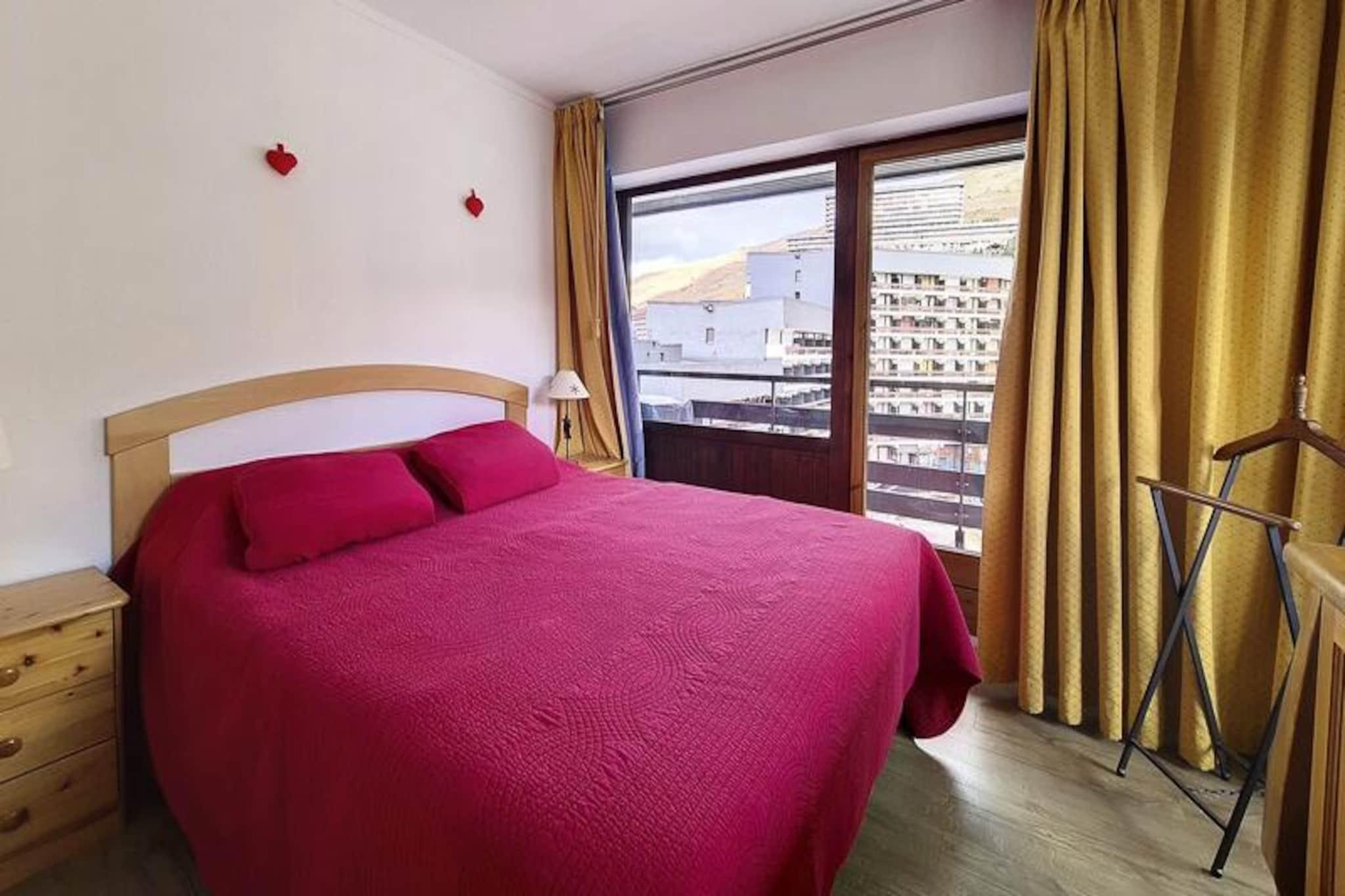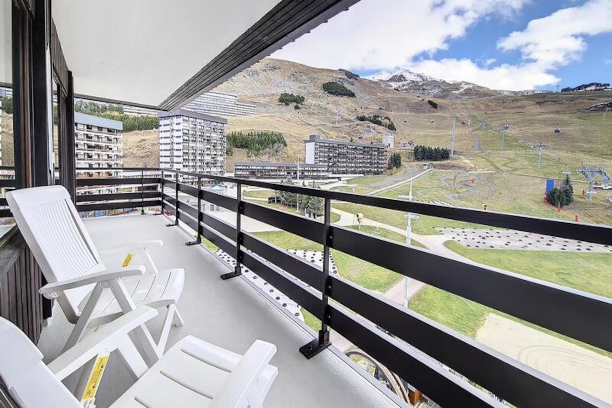 Högt ovanför det livliga distriktet La Croisette inbjuder denna charmiga lägenhet på översta våningen dig att uppleva magin i de franska Alperna. Badande i solljus från sin rymliga hörnbalkong i sydostläge erbjuder den hisnande utsikt över de omgivande topparna och sluttningarna. Oavsett om du är här för vinteräventyr eller sommarresor, lovar den fridfulla atmosfären i denna bostad en minnesvärd vistelse. Kliv ut ur byggnaden och befinn dig direkt vid shoppinggallerian, med allt du behöver bara några minuter bort. Backarna ligger precis utanför dörren, vilket gör det till ett idealiskt val för skidentusiaster som söker bekvämlighet och komfort. \n\nInuti har lägenheten en mysig men funktionell planlösning, perfekt för familjer eller grupper på upp till sex personer. Vardagsrummet, utrustat med en platt-TV, erbjuder ett välkomnande utrymme att varva ner efter en dags utforskande. Det stora sovrummet har en bekväm dubbelsäng, medan det andra sovrummet har två uppsättningar våningssängar, vilket gör det idealiskt för barn eller vänner som reser tillsammans. Det separata köket är fullt utrustat med moderna apparater, inklusive kylskåp, ugn, mikrovågsugn, diskmaskin och kaffebryggare, vilket säkerställer att du har allt du behöver för att laga rejäla måltider. Ett duschrum och en separat toalett bidrar till bekvämligheten, medan PVC- och klinkergolv i hela lägenheten skapar en ren och praktisk miljö.\n\nResidensens läge är oslagbart. Gratis utomhusparkering finns mittemot byggnaden, och daghemmet ligger en kort 300 meter lång promenad bort. För de som söker uppkoppling finns avgiftsbelagd Wi-Fi-åtkomst tillgänglig, beroende på nätverkstäckning. Utöver de omedelbara bekvämligheterna erbjuder La Croisette-distriktet en livlig atmosfär med butiker, restauranger och afterski-möjligheter för att förbättra din vistelse.\n\nOavsett om du är här för att snubbla genom orörd snö eller utforska alpina leder under sommarsolen, kombinerar denna lägenhet komfort, praktiskhet och ett oslagbart läge för att skapa den perfekta basen för dina bergsäventyr. Låt Alpernas skönhet inspirera din nästa oförglömliga semester.