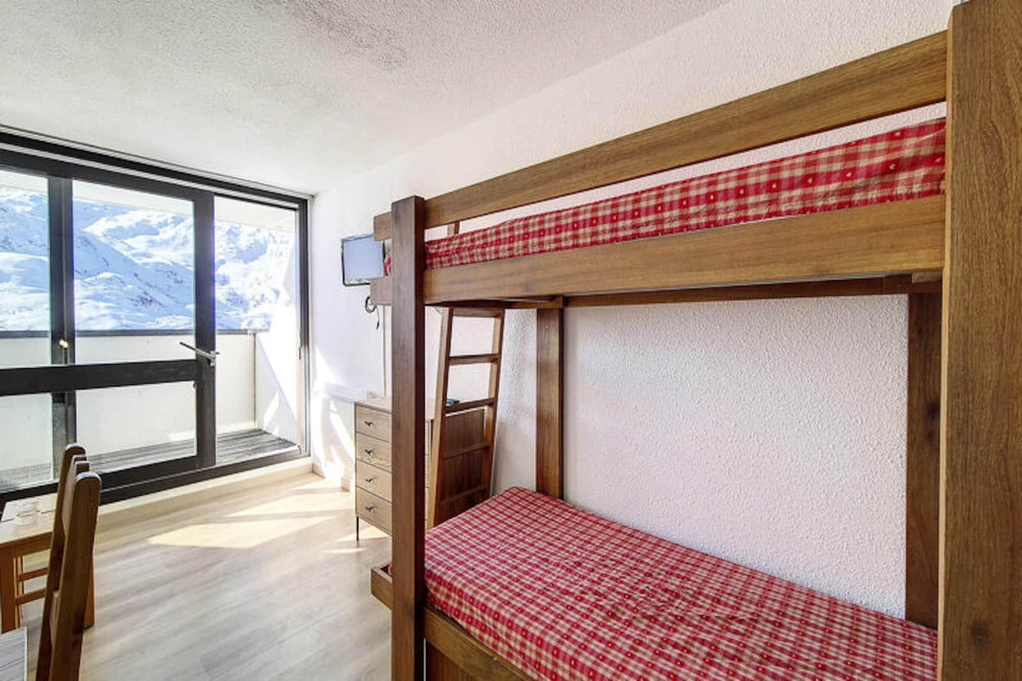 Högt ovanför den livliga skidorten Les Menuires erbjuder Brelin-byggnaden en unik utsiktspunkt och direkt tillgång till backarna. Belägen ovanför La Croisette-distriktet, är detta bekväma läge anslutet med offentliga hissar som är i drift dygnet runt, vilket säkerställer enkel förflyttning mellan skidortens hjärta och din fridfulla tillflyktsort. Från den sydvästvända balkongen i denna mysiga studiolägenhet kan du njuta av den alpina charmen och oavbruten utsikt över de omgivande topparna som badar i solljus hela dagen. Oavsett om du är här för vintersport eller sommarvandringar är detta den perfekta basen för dina bergsäventyr. \n\nStudioen på 24 m² är designad för upp till fyra gäster och är noggrant arrangerad för att maximera komfort och funktionalitet. Vardagsrummet har två våningssängar för enkelsängar, en bäddsoffa för enkelsäng och en utdragbar enkelsäng, vilket gör den idealisk för familjer eller små grupper. Det kompakta köket är utrustat med allt du behöver, inklusive elektriska spishällar, kylskåp, miniugn, mikrovågsugn, diskmaskin och små apparater som kaffebryggare, brödrost och vattenkokare. Efter en dag i backarna kan du varva ner med en varm dusch i badrummet, som har en upphöjd kant, och njuta av värmen i det mysiga vardagsrummet som är utrustat med TV. \n\nSjälva Brelin-byggnaden inrymmer butiker, liftbiljettkontor och skidförvaring för extra bekvämlighet. Gratis parkering finns vid Côte Brune-liften, som ligger vid foten av byggnaden, vilket gör din ankomst och avresa stressfri. Med avgiftsbelagd Wi-Fi och filtar har du allt du behöver för en bekväm vistelse. \n\nOavsett om du dras till spänningen med skidåkning, lugnet i alpina landskap eller den pulserande atmosfären i Les Menuires, kombinerar denna studiolägenhet praktiskhet och charm för en oförglömlig bergssemester.
