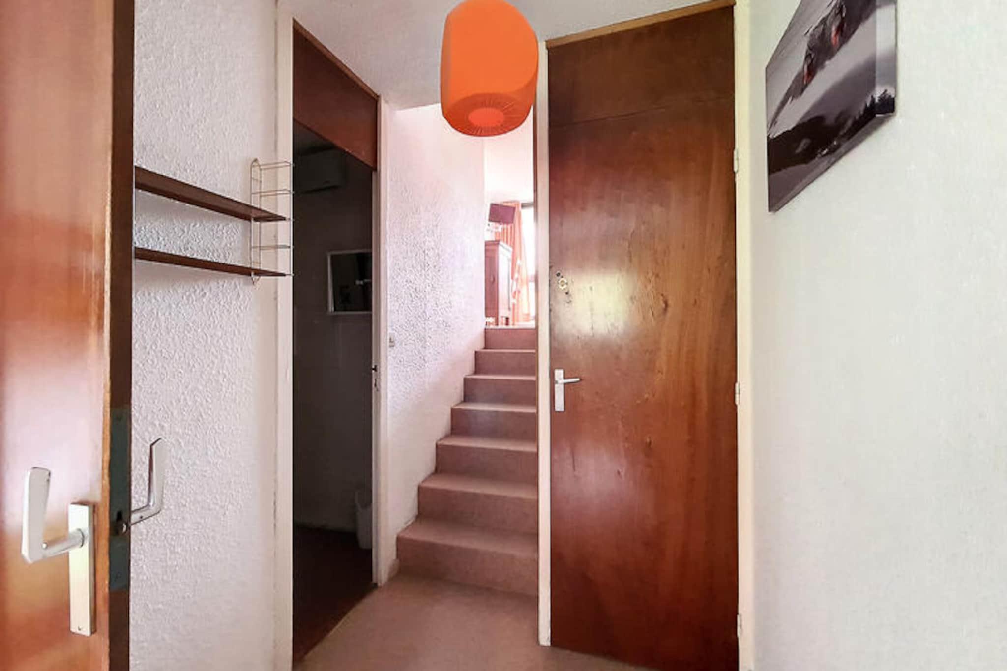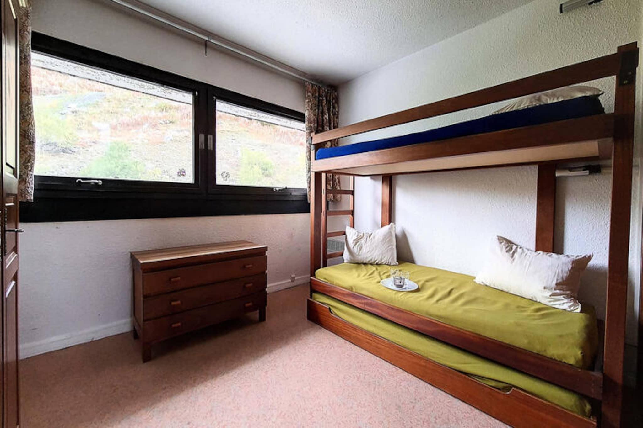 Ovanför den livliga skidorten Les Menuires erbjuder Brelin-byggnaden en unik alpin tillflyktsort med panoramautsikt och direkt tillgång till backarna. Belägen ovanför La Croisette-distriktet kombinerar detta läge bekvämlighet och lugn, med dygnet runt-öppna hissar som förbinder dig med hjärtat av byn nedanför. Oavsett om du är här för vintersport eller sommarvandringar, säkerställer Côte Brune-hissen och gratis parkering vid byggnadens fot sömlösa äventyr i de hisnande franska Alperna. Från din balkong i söderläge kan du njuta av solen och blicka ut över de majestätiska topparna som omger dig. \n\nDenna mysiga tvårumslägenhet i etage, belägen på 7:e våningen, rymmer bekvämt upp till fem gäster. Vardagsrummet har en enkelsäng och en utdragbar säng, medan sovrummet har en enkelsäng och våningssängar, vilket gör den idealisk för familjer eller små grupper. Köket är fullt utrustat med moderna apparater, inklusive mikrovågsugn, kylskåp, diskmaskin och kaffebryggare, vilket säkerställer att du har allt som behövs för att laga mat efter en dag i backarna. Ett badrum med badkar och en separat toalett bidrar till bekvämligheten, medan lägenhetens varma heltäckningsmattor och filtar skapar en välkomnande atmosfär. \n\nInom Brelin-byggnaden hittar du butiker, liftbiljettkontor och skidförvaring, vilket gör det enkelt att förbereda dig för ditt nästa äventyr. Betalt Wi-Fi finns tillgängligt, så att du kan hålla dig uppkopplad medan du njuter av bergens lugn. Bortom byggnaden erbjuder Les Menuires en mängd aktiviteter, från skidåkning och snowboardåkning på vintern till vandring och mountainbike på sommaren. Det närliggande distriktet La Croisette sjuder av restauranger, barer och afterski-underhållning, vilket säkerställer att dina kvällar blir lika minnesvärda som dina dagar. \n\nOavsett om du söker spännande utomhusaktiviteter eller en lugn alpin flykt, är denna lägenhet i Brelin-byggnaden din port till oförglömliga stunder i de franska Alperna.