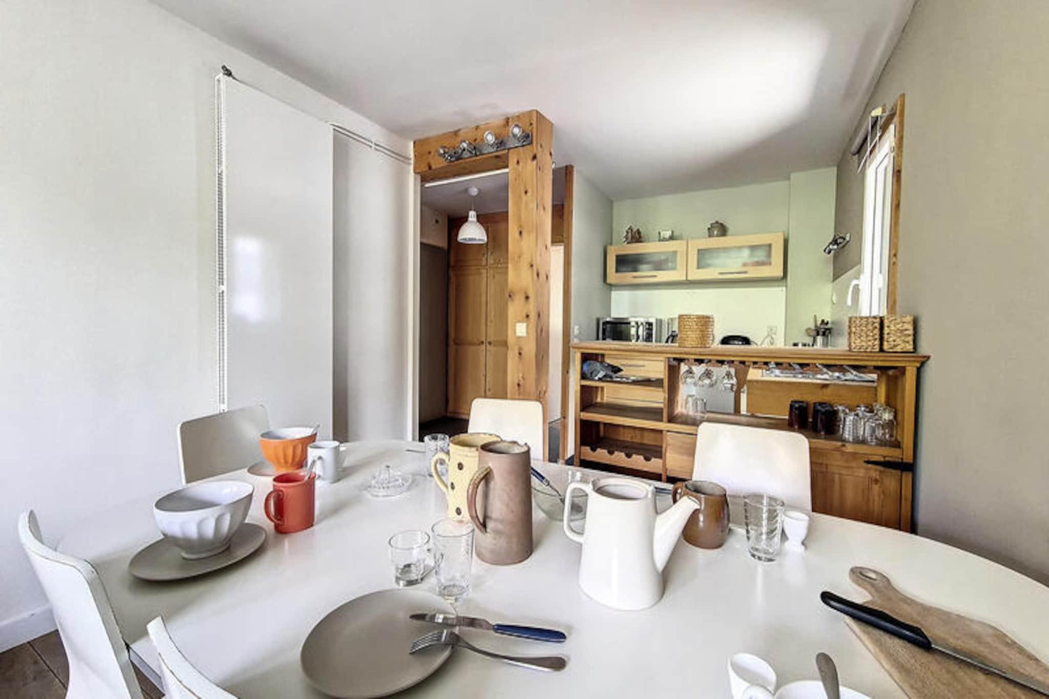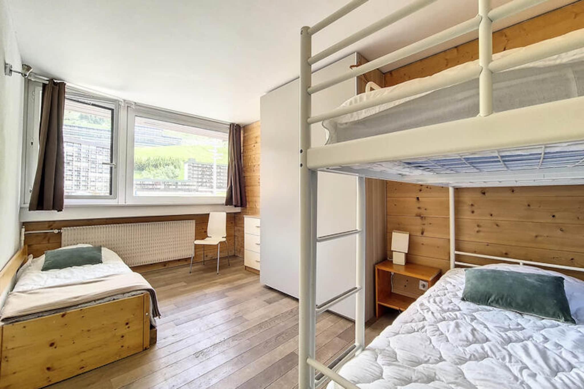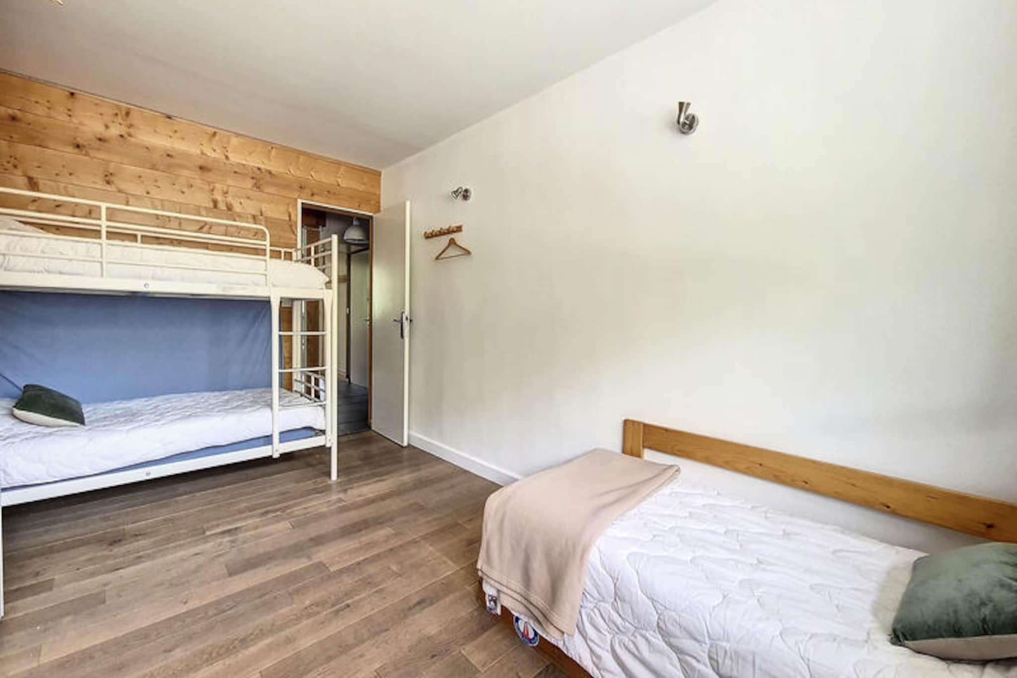 I hjärtat av La Croisette, där charmen i de franska Alperna möter modern bekvämlighet, erbjuder denna vackert renoverade lägenhet en välkomnande tillflyktsort för familjer och grupper. Belägen direkt ovanför anläggningens köpcentrum, hittar du skidbackarna och liftarna bara några steg bort, vilket garanterar enkel tillgång till de orörda snötäckta spåren. Med en balkong i västerläge kan gästerna varva ner medan de njuter av den alpina solnedgången efter en dag av äventyr. Det närliggande daghemmet, bara 100 meter bort, gör denna fastighet särskilt lämplig för familjer med små barn. \n\nDenna rymliga lägenhet på 58 m² rymmer bekvämt upp till åtta gäster fördelat på två sovrum och ett mysigt vardagsrum. Det första sovrummet har två våningssängar och två enkelsängar, medan det andra har en bekväm dubbelsäng. Vardagsrummet är utrustat med en bäddsoffa för två personer och en TV, vilket skapar en perfekt plats för avkoppling. Det fullt utrustade köket har keramikhäll, ugn, kylskåp, diskmaskin, tvättmaskin och viktiga apparater som brödrost, vattenkokare och kaffebryggare. Parkettgolv i hela lägenheten ger en touch av värme och elegans, medan badrummet med badkar och separat toalett garanterar bekvämlighet för alla. \n\nLa Croisettes centrala läge gör att allt du behöver finns inom räckhåll. Oavsett om du utforskar backarna, handlar lokala specialiteter eller njuter av afterski-middag, omger den livliga atmosfären i orten dig. På sommaren förvandlas regionen till en fristad för vandrare och naturentusiaster, med stigar som slingrar sig genom hisnande alpina landskap. \n\nVälj denna lägenhet för dess oslagbara läge, omtänksamma bekvämligheter och löftet om oförglömliga alpina minnen. Oavsett om du besöker La Croisette på vintern eller sommaren erbjuder den en perfekt blandning av äventyr och avkoppling.