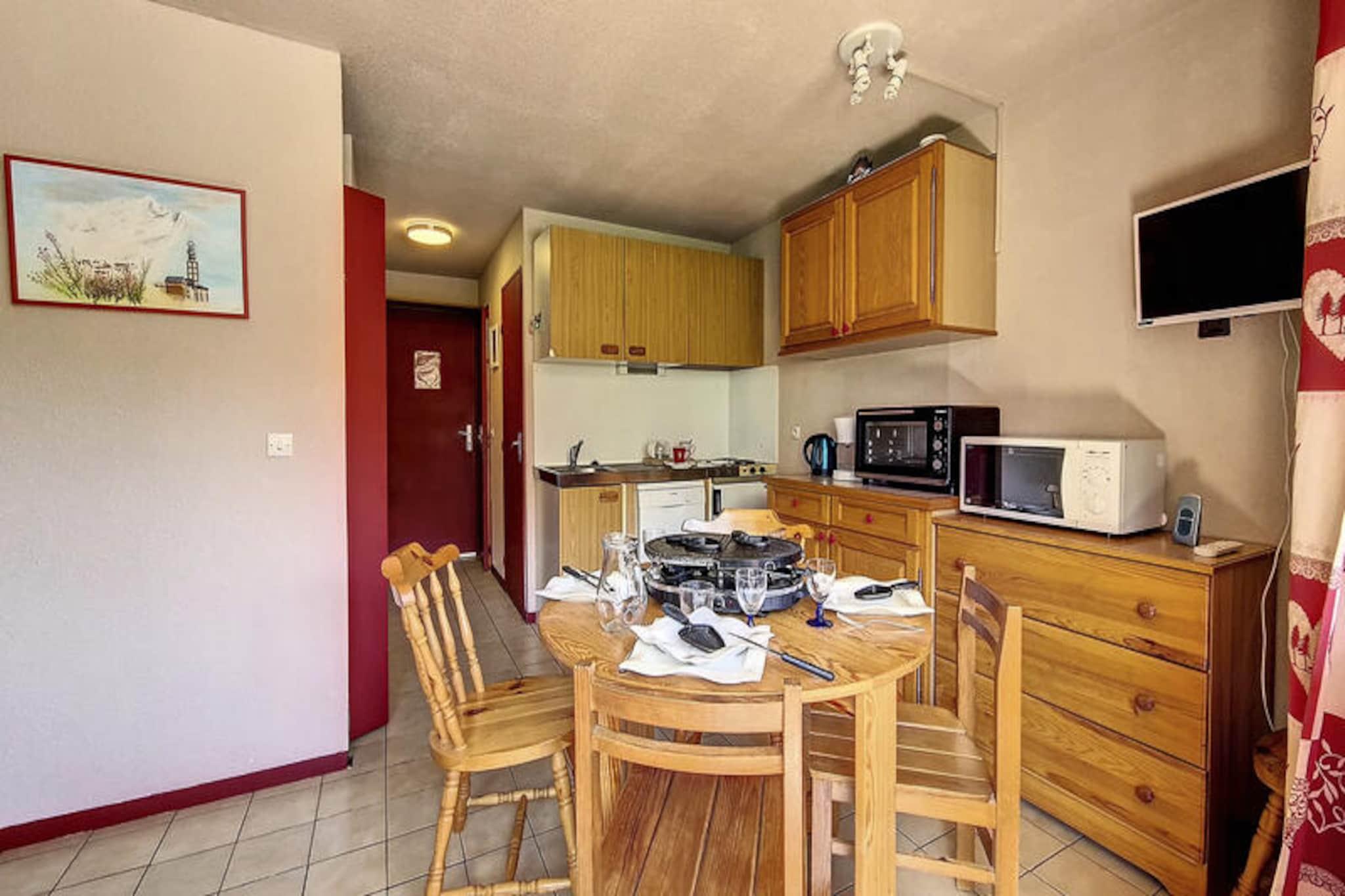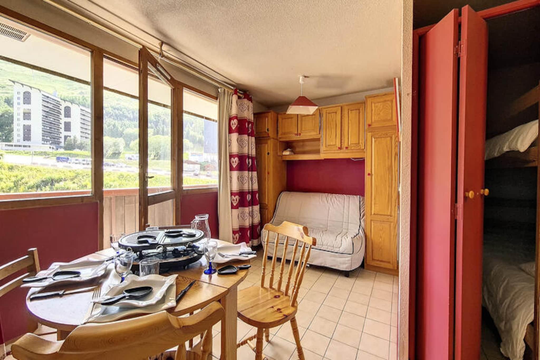 Högt ovanför det pittoreska Preyerand-distriktet inbjuder denna charmiga studiolägenhet dig att uppleva magin i de franska Alperna. Med sin balkong mot nordost på 6:e våningen kan du vakna upp till fridfull utsikt över bergen och frisk alpluft, vilket skapar den perfekta miljön för en minnesvärd semester. Oavsett om du söker äventyr i backarna eller lugna stunder omgiven av naturen, erbjuder denna mysiga tillflyktsort en härlig tillflyktsort. Sarvan-residenset är idealiskt beläget vid foten av backarna, vilket garanterar smidig tillgång till vintersport och natursköna leder. En gratis linbana förbinder dig med det livliga La Croisette-distriktet, som är i drift dagligen från morgon till sen kväll, vilket gör det enkelt att utforska hjärtat av Les Menuires. Inuti är den 21 m² stora studion noggrant utformad för att rymma upp till fyra gäster. Vardagsrummet har en bekväm bäddsoffa för två, medan en separat sovalkov erbjuder våningssängar, perfekt för familjer eller små grupper. Köket är fullt utrustat med moderna apparater, inklusive en miniugn, mikrovågsugn, diskmaskin och kaffebryggare, vilket säkerställer att du kan laga rejäla måltider efter en dag av utforskande. Kaklat golv ger en praktisk touch, medan badrummet och den separata toaletten erbjuder bekvämlighet för alla gäster. Husdjur är välkomna mot en extra avgift, och täcken tillhandahålls för extra komfort. Bortom lägenheten hittar du liftbiljettkontor och viktiga bekvämligheter inom fem minuters promenad, vilket gör din vistelse så enkel som möjligt. Avgiftsbelagd Wi-Fi finns tillgänglig, i mån av tillgång, så att du kan hålla dig uppkopplad medan du njuter av din alpina reträtt. Oavsett om du är här för spänningen med skidåkning eller den fridfulla skönheten i bergen, erbjuder denna studio en varm och inbjudande bas för dina äventyr i Les Menuires.