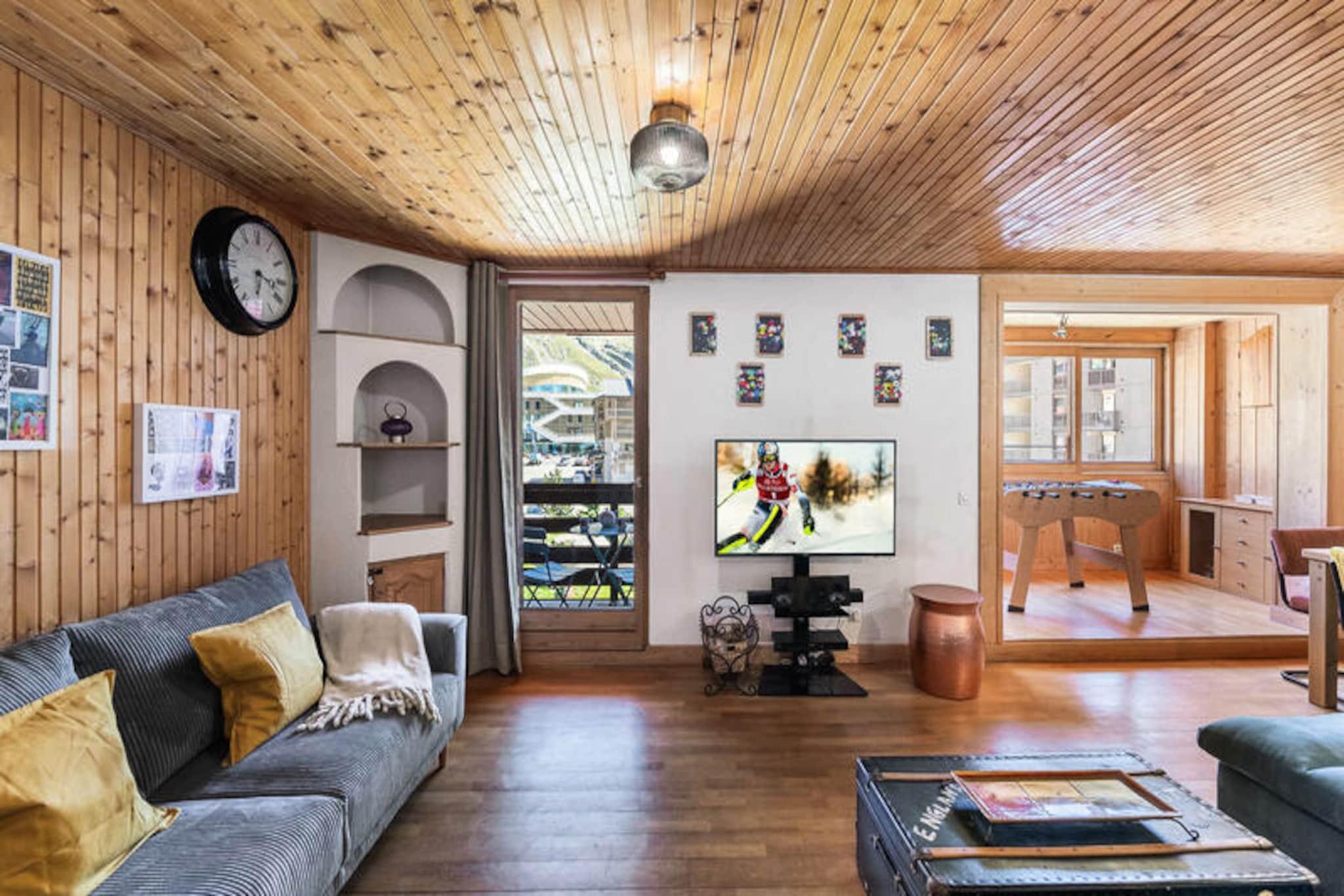 I det pulserande hjärtat av Val Thorens erbjuder denna rymliga lägenhet en exceptionell tillflyktsort för bergsentusiaster. Omgiven av de franska Alpernas hisnande toppar kombinerar den modern komfort med charmen hos en skidort i världsklass. Oavsett om du är här för spännande vintersport eller fridfulla sommarvandringar, är denna fastighet din port till oförglömliga alpina äventyr. Närheten till det nya sportcentret garanterar enkel tillgång till förstklassiga faciliteter, vilket gör den till en perfekt bas för aktiva resenärer. \n\nLägenheten rymmer bekvämt upp till nio gäster, med en genomtänkt designad planlösning över två våningar. På bottenvåningen hittar du ett inbjudande vardagsrum som sömlöst ansluter till matsalen och det fullt utrustat köket, perfekt för att dela måltider och berättelser efter en dag i backarna. Den möblerade loggian och den slutna balkongen med ett fotbollsbord ger en lekfull touch till din vistelse. På övervåningen finns två dubbelrum, en alkov med två enkelsängar och två mysiga rum i stugstil som ger gott om sovplatser för familjer eller grupper av vänner. Moderna bekvämligheter som pjäxtork, Wi-Fi och tvättstuga garanterar en problemfri semesterupplevelse.\n\nStig ut, och du är bara några minuter från backarna i ett av världens mest kända skidområden. Förutom skidåkning erbjuder Val Thorens en livlig afterski-scen, olika matställen och en mängd aktiviteter för alla åldrar. Under sommaren förvandlas regionen till en fristad för vandrare och naturälskare, med leder som visar upp Alpernas fantastiska skönhet.\n\nDenna lägenhet är mer än bara en plats att bo på – det är en hemmabas för att skapa värdefulla minnen i hjärtat av bergen. Med sitt oslagbara läge, omtänksamma bekvämligheter och välkomnande atmosfär väntar din perfekta alpina flykt.