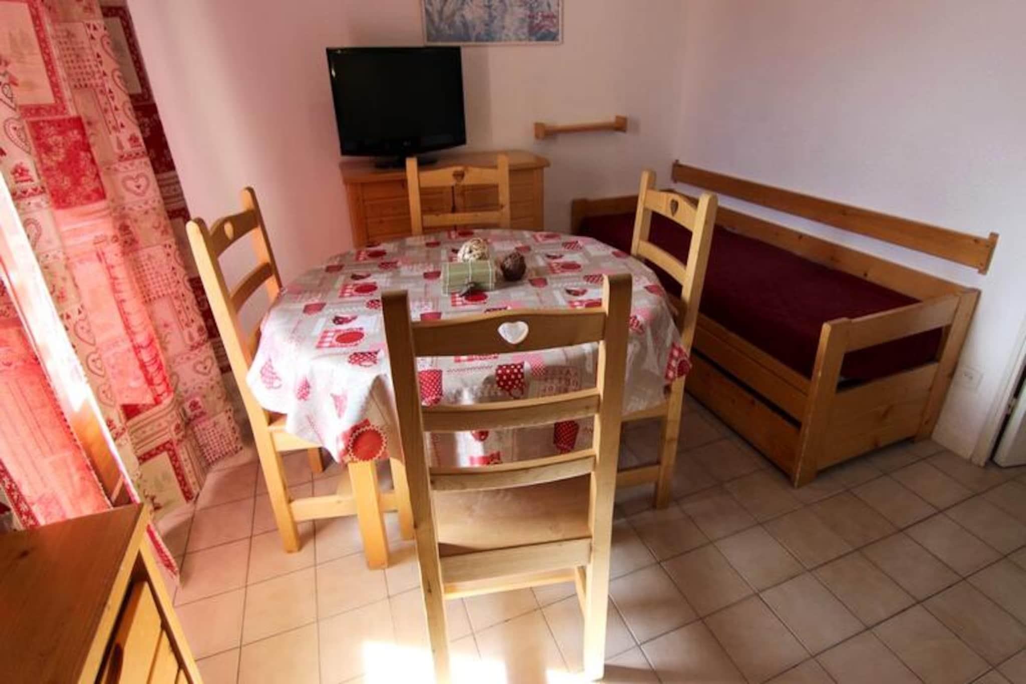 Tänk dig att vakna upp till den friska alpluften och den hisnande utsikten över bergen i det fridfulla området Arolles i Val Thorens. Denna charmiga lägenhet med två rum, belägen i den eftertraktade residensen La Reine Blanche, erbjuder en lugn tillflyktsort vid ingången till orten. Dess exceptionella söderläge gör att solljuset strömmar in i rummen hela dagen, vilket skapar en varm och inbjudande atmosfär för din alpina semester. Residenset är perfekt för familjer och är en fridfull oas bara några steg från ortens livliga centrum. Lägenheten ligger på första våningen med hiss och rymmer bekvämt upp till fyra gäster. Vardagsrummet har en mysig bäddsoffa, en matplats och en TV för avkopplande kvällar efter en dag i backen. Kökets pentry är fullt utrustat med moderna vitvaror, inklusive ugn, mikrovågsugn, elektrisk spis, kylskåp, diskmaskin och köksfläkt, vilket gör det enkelt att laga rejäla måltider. Sovrummet har en bekväm dubbelsäng, medan stugdelen erbjuder mysiga våningssängar, perfekta för barn eller extra gäster. Ett badrum med badkar och separat toalett kompletterar layouten och garanterar bekvämlighet och komfort för alla. När du kliver ut är du bara 200 meter från shoppingcentret Caron, där du hittar lokala butiker, restauranger och Val Thorens sportcenter med pool och wellnessavdelning. Skidentusiaster kommer att uppskatta den direkta tillgången till backarna och den närliggande skiduthyrningsbutiken SKISET/GOITSCHEL SPORT GS4, som gör det enkelt att förbereda sig för en dag full av äventyr. Oavsett om du är här för att åka skidor i orörd snö eller utforska den livliga semesterorten, ligger denna lägenhet i hjärtat av allt. Med sitt oslagbara läge, familjevänliga atmosfär och alla bekvämligheter som hemma, är denna lägenhet i La Reine Blanche det perfekta valet för din nästa semester i bergen. Skapa oförglömliga minnen i världsberömda Val Thorens, där Alpernas skönhet och spänningen i backarna väntar.