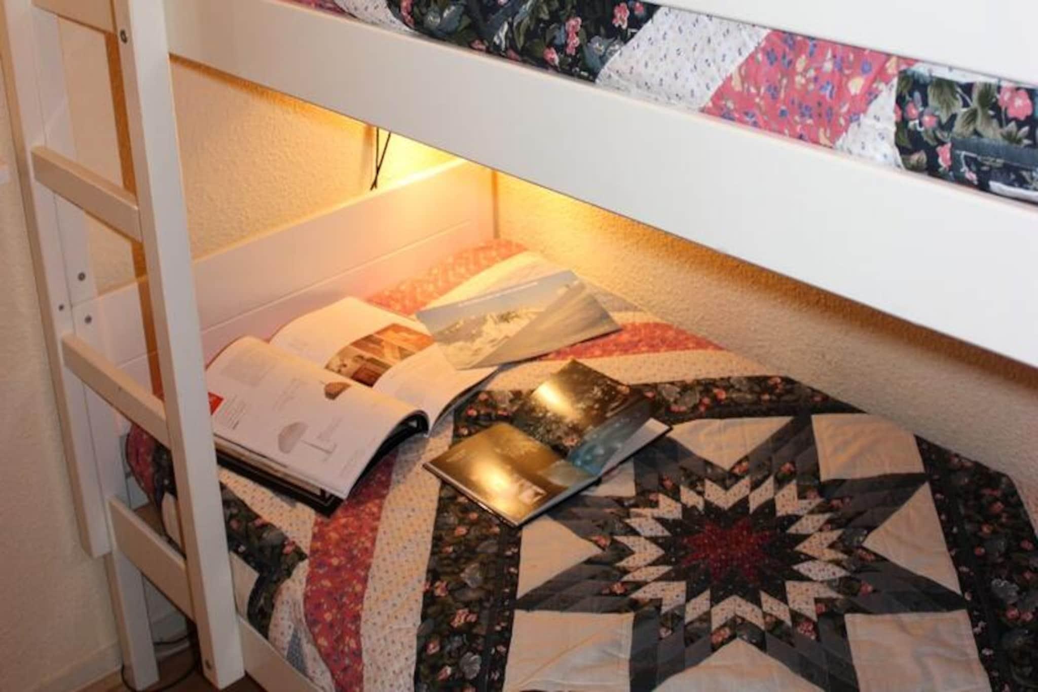 I det fridfulla distriktet Arolles i Val Thorens erbjuder denna charmiga lägenhet en fridfull tillflyktsort med direkt tillgång till backarna, vilket gör den till ett idealiskt val för både skidentusiaster och familjer. Beläget vid ingången till skidorten, har residenset exceptionellt läge och en lugn atmosfär, perfekt för att varva ner efter en dag med alpina äventyr. Från den söderläge balkongen kan du njuta av den friska bergsluften och beundra den pittoreska omgivningen som definierar de franska Alpernas skönhet. \n\nLägenheten är utformad för att bekvämt rymma upp till fyra gäster och har ett mysigt vardagsrum med en bäddsoffa, en stuga med våningssängar och ett välutrustat pentry komplett med mikrovågsugn, keramikhäll, Nespresso-maskin, kylskåp och diskmaskin. Det moderna badrummet har dusch och handfat, medan den separata toaletten ger bekvämlighet för alla. Oavsett om du lagar en rejäl måltid eller kopplar av framför tv:n, är utrymmet skräddarsytt för komfort och praktisk användning. \n\nBara 200 meter bort hittar du köpcentret Caron, som erbjuder en mängd olika lokala butiker, och Val Thorens sportcenter, som ståtar med en pool och ett hälsoområde. Skiduthyrningsbutiker som SKISET/GOITSCHEL SPORT GS4 ligger också inom räckhåll, vilket garanterar att du har allt du behöver för en smidig vistelse. Förutom skidåkning erbjuder anläggningen en livlig atmosfär med restauranger, afterski-aktiviteter och hisnande vyer åt alla håll. \n\nOavsett om du söker spännande dagar i backarna eller lugna kvällar omgivna av alpin charm, erbjuder denna anläggning den perfekta basen för en oförglömlig bergssemester. Upplev magin i Val Thorens och skapa bestående minnen i denna välkomnande oas.