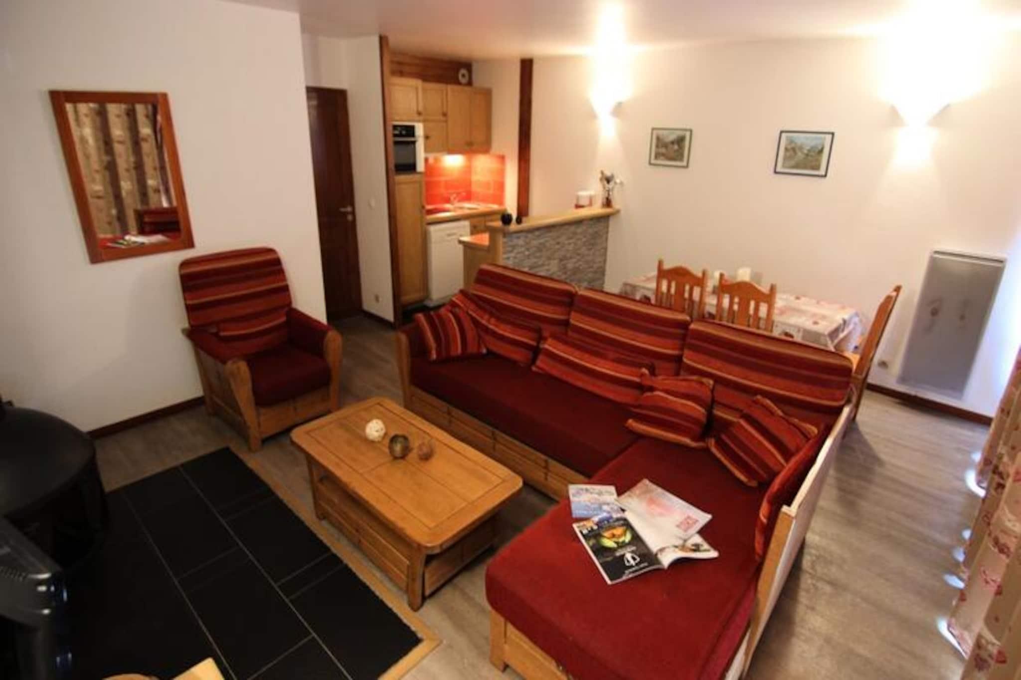I det fridfulla distriktet Arolles vid ingången till orten erbjuder Beausoleil-stugan en lugn tillflyktsort perfekt för familjer som söker en fridfull alpin reträtt. Bara 150 meter från Carons shopping- och sportcenter, och en kort promenad till Soleil-distriktet med dess skidskolor, biljettkontor och förskola, kombinerar detta läge bekvämlighet med lugn. Oavsett om du är här för vintersport eller sommaräventyr, placerar stugan dig nära allt samtidigt som den bibehåller en lugn atmosfär som är perfekt för avkoppling. Med backarna bara 20 meter bort börjar dina alpina äventyr nästan vid din tröskel. \n\nDenna charmiga 3-rumslägenhet sträcker sig över 50 m² och rymmer bekvämt upp till fyra gäster. Den söderläge balkongen inbjuder dig att njuta av solskenet och utsikten över det omgivande bergslandskapet. Inuti har det mysiga vardagsrummet en öppen spis, TV och en bekväm soffa, vilket skapar ett varmt och inbjudande utrymme att varva ner efter en dag med aktiviteter. Pentryt är välutrustat med en multifunktionell mikrovågsugn, keramikhäll, kylskåp, diskmaskin och fläkt, vilket gör det enkelt att laga mat åt din grupp. Sovrummen inkluderar en dubbelsäng i sovrummet och två våningssängar i det andra rummet, perfekt för familjer eller små grupper. Ett separat badrum med badkar och handfat, tillsammans med en separat toalett, garanterar komfort och bekvämlighet under hela din vistelse.\n\nUtöver stugan erbjuder anläggningen en mängd bekvämligheter och aktiviteter. Från skiduthyrning i den närliggande Skiset-butiken till att utforska det pulserande Soleil-distriktet, allt du behöver finns inom gångavstånd. På vintern kan du njuta av spänningen med skidåkning med backar bara några steg bort, medan sommaren öppnar upp möjligheter till vandring, cykling och upptäckt av de franska Alpernas naturliga skönhet. Arolles-distriktets lugna atmosfär i kombination med dess närhet till viktiga faciliteter gör Beausoleil-stugan till ett perfekt val för din alpina semester. Oavsett om du söker äventyr eller lugn, lovar denna mysiga tillflyktsort oförglömliga minnen i hjärtat av bergen.