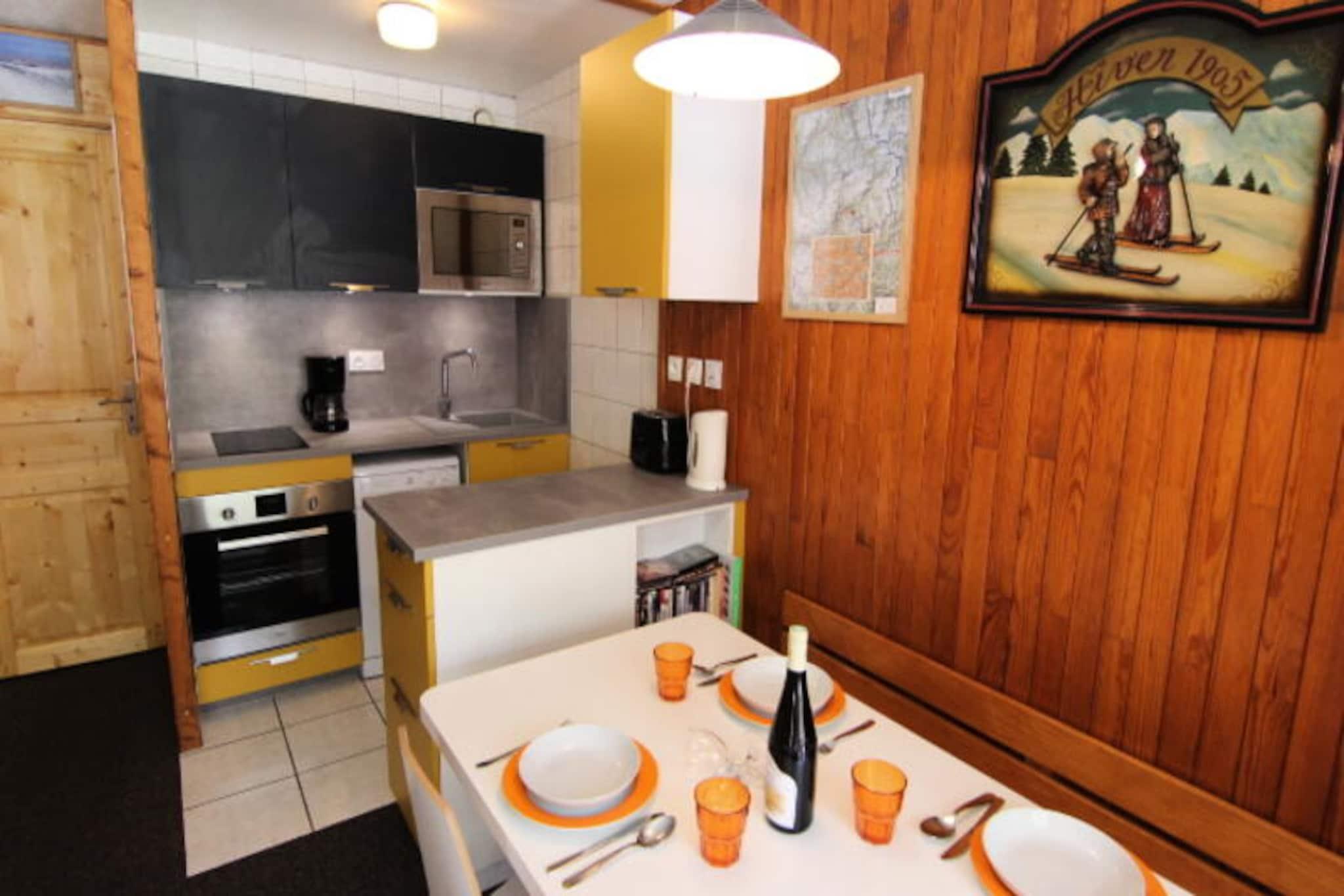 Högt ovanför Val Thorens pulserande hjärta erbjuder denna mysiga studio i Névés-residenset en perfekt tillflyktsort för dig som söker äventyr och livlig alpin energi. Beläget på Rue de Gébroulaz i det livliga Péclet-distriktet, är residenset omgivet av en dynamisk atmosfär med en mängd olika pubar, barer och restauranger bara några steg bort. Oavsett om du är här för att åka skidor, umgås eller bara njuta av bergscharmen, placerar detta läge dig i centrum av allt. Studioen på 25 m², belägen på 5:e våningen med hiss, är omsorgsfullt utformad för att rymma upp till fyra gäster. Utrymmet har ett pentry utrustat med ugn, mikrovågsugn, kylskåp, induktionshäll och diskmaskin, vilket gör det enkelt att laga mat efter en dag i backarna. Vardagsrummet har en utdragbar bäddsoffa och två enkelsängar, medan entrén erbjuder våningssängar separerade av ett draperi för extra avskildhet. En balkong i nordostläge inbjuder dig att njuta av frisk bergsluft och fridfull utsikt, medan badrummet är komplett med badkar, handfat och toalett för din komfort. Bara 70 meter från backarna erbjuder studion enkel tillgång till skidåkning och snowboardåkning i världsklass. Köpcentret Péclet, som ligger precis tvärs över gatan, erbjuder praktiska bekvämligheter, inklusive en Skiset-butik för all din utrustning. Efter en dag med alpina äventyr kan du varva ner i Val Thorens berömda nattliv, från afterski-ställen till mysiga restauranger. Oavsett om du dras av spänningen i backarna, det pulserande sociala livet eller de hisnande bergsutsikterna, lovar denna studio i Névés-residenset en oförglömlig vistelse i hjärtat av de franska Alperna.