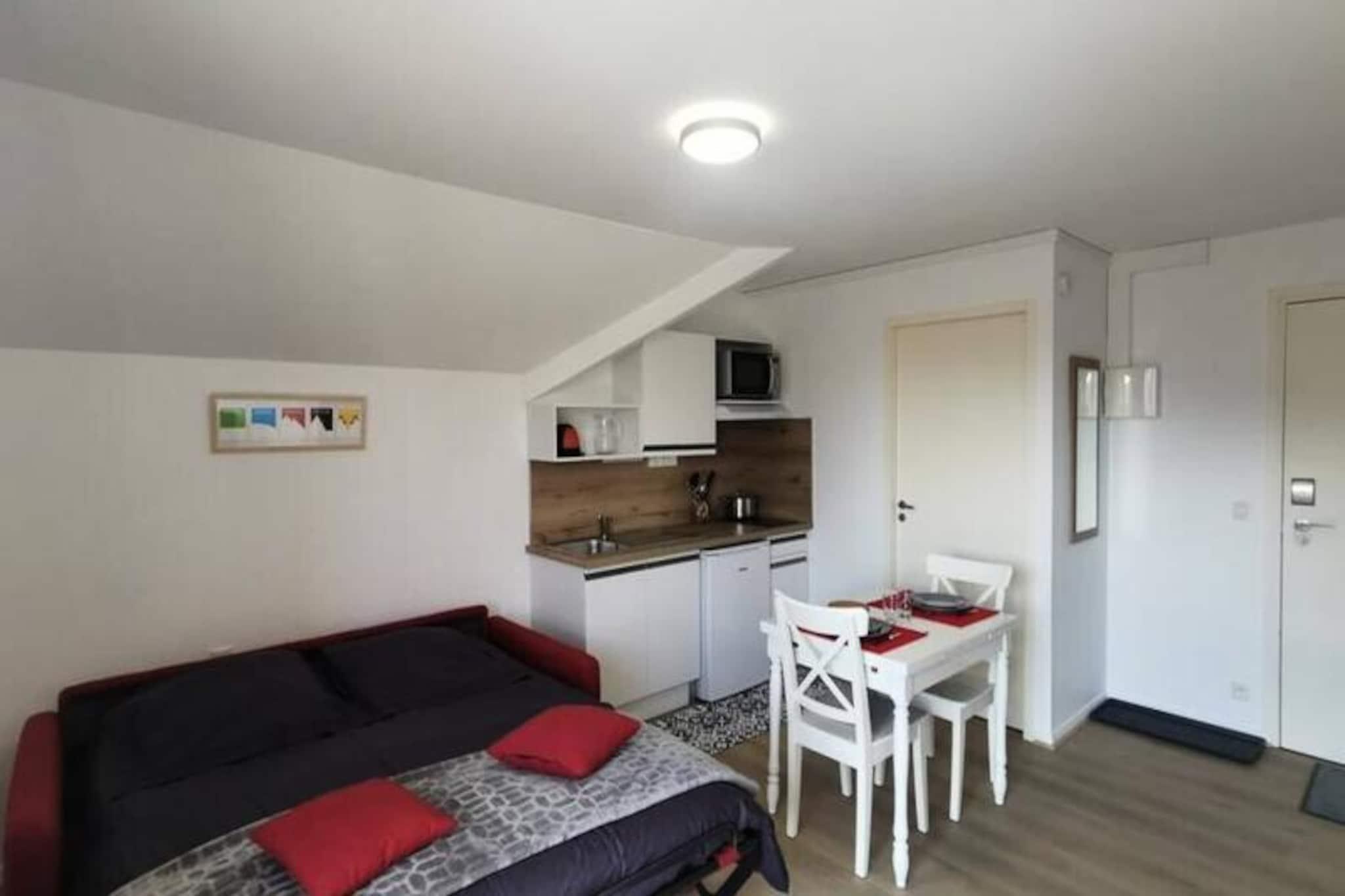 Denna charmiga studiolägenhet är perfekt för två personer och erbjuder en mysig och välkomnande atmosfär. Den inkluderar en bäddsoffa med en bekväm madrass, en TV och en babysäng, vilket gör den idealisk för par med ett litet barn. Lägenheten är djurfri och erbjuder nödvändiga bekvämligheter som sängkläder och handdukar, redo vid ankomst. Lägenheten ligger i hjärtat av semesterorten La Féclaz och erbjuder enkel tillgång till både nordiska och alpina skidbackar, perfekt för vintersportentusiaster. Anläggningen har också en mängd olika vandringsleder, vilket gör det till ett utmärkt resmål året runt. Förutom skidåkning kan du njuta av lokala butiker, kaféer och en livlig bergsatmosfär. Lägenheten är utrustad med ett litet kök, inklusive en spis, mikrovågsugn, vattenkokare, kaffebryggare och alla nödvändiga redskap för självhushåll. Badrummet har ett badkar för din avkoppling. Residenset erbjuder ytterligare bekvämligheter som en uppvärmd inomhuspool (säsongsöppen), en hälsoavdelning med bastu och hamam (mot en extra avgift) och ett spelrum med biljard och bordsfotboll för extra underhållning.
