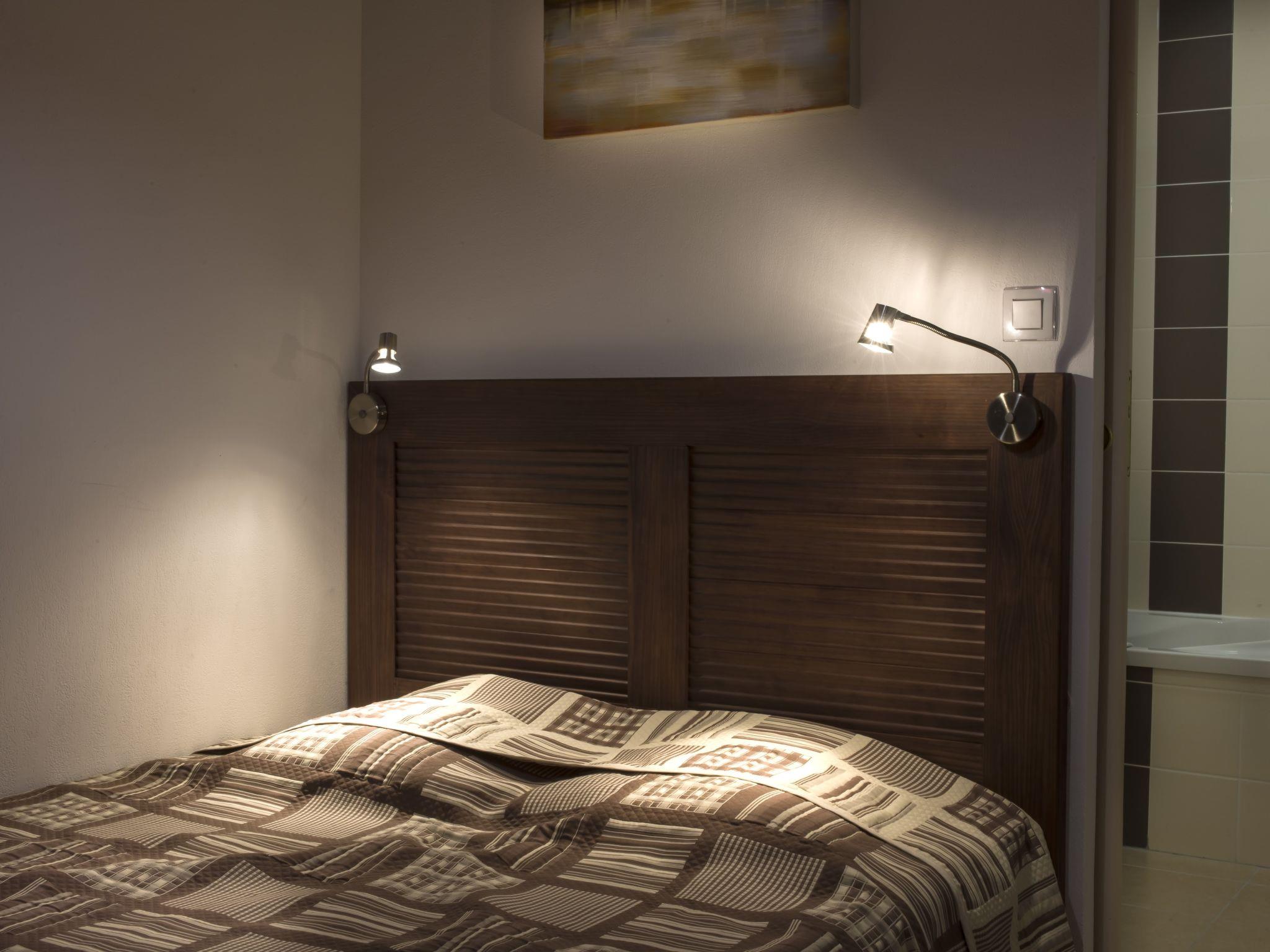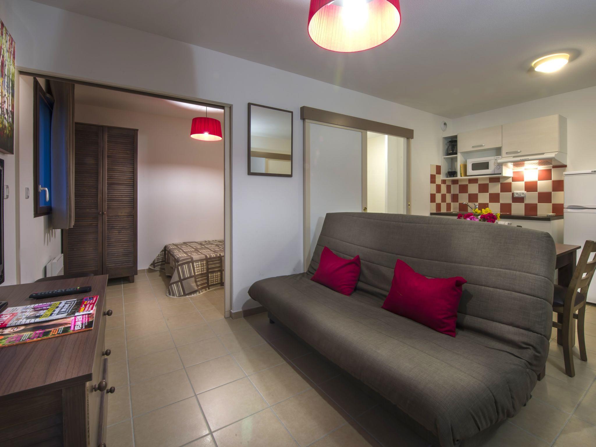 "Les Clos du Rocher", 2-room apartment 27 m2. Bright, simple furnishings: living/sleeping room with 1 double sofabed, dining table and satellite TV. Exit to the balcony, to the terrace. 1 room with 1 french bed and bath/WC. Kitchenette (2 ceramic glass hob hotplates, kettle, microwave, electric coffee machine). Electric heating. Balcony or terrace. Terrace furniture, balcony furniture. Facilities: children's high chair, baby cot. Internet (WiFi, extra). Please note: maximum 1 pet/ dog allowed. Smoke alarm, fire extinguisher.