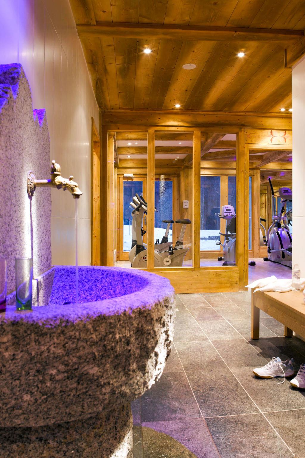 "CGHRés&Spa Hameau Pierre Blanche 5*", 2-room apartment 35 m2, on the ground floor. Comfortable and tasteful furnishings: living/sleeping room with 1 sofabed, 1 pull-out bed, dining table and satellite TV. Exit to the balcony. 1 room with 2 beds. Kitchenette (oven, dishwasher, 4 ceramic glass hob hotplates, toaster, kettle, electric coffee machine, steamer). Bath/WC. Heating. Balcony. Balcony furniture. Facilities: telephone, hair dryer. Internet (WiFi, free). Please note: maximum 1 pet/ dog allowed. Smoke alarm, fire extinguisher.