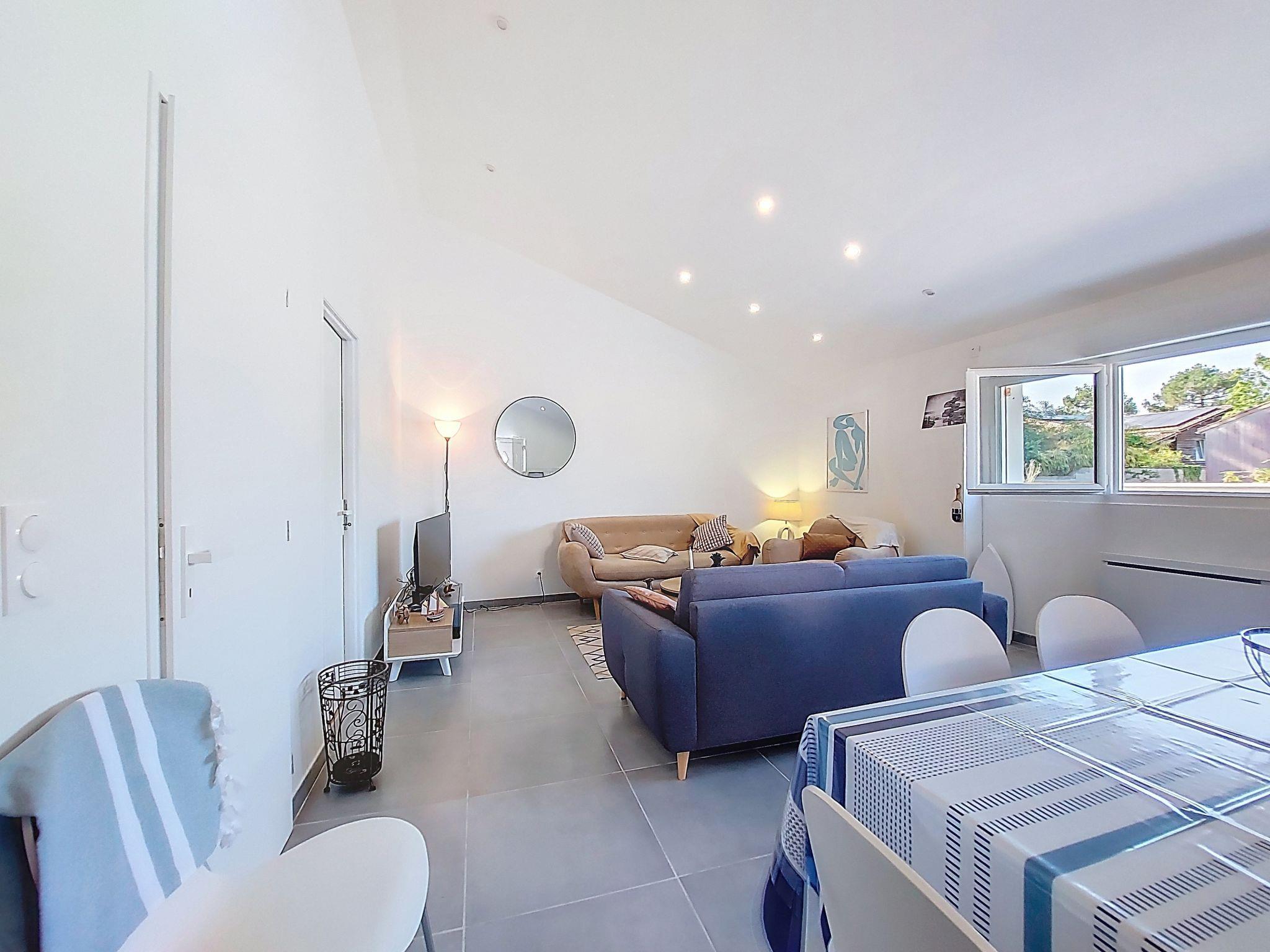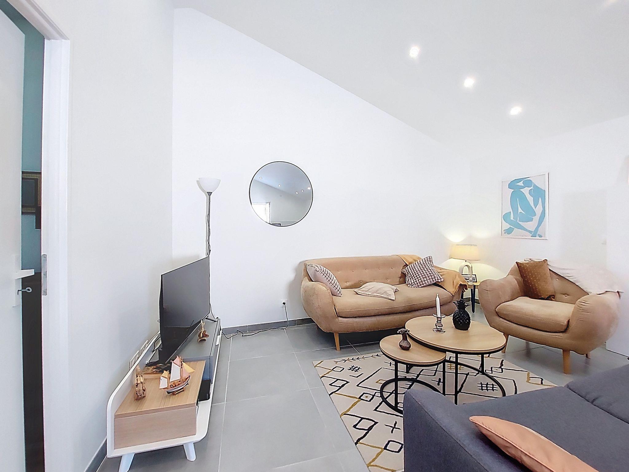 3-room terraced house 63 m2. Living/dining room with TV (flat screen). Exit to the terrace. 1 room with 1 french bed (160 cm, length 190 cm). 1 room with 1 french bed (140 cm, length 190 cm). Open kitchen (oven, dishwasher, 4 ceramic glass hob hotplates, toaster, kettle, microwave, freezer, electric coffee machine, steamer). Shower/WC. Electric heating. Large terrace 45 m2. Terrace furniture, electric barbecue. Facilities: washing machine. Internet (WiFi, extra). Please note: smoke alarm. Offer by a private individual according to Art. 155, IV of CGI.