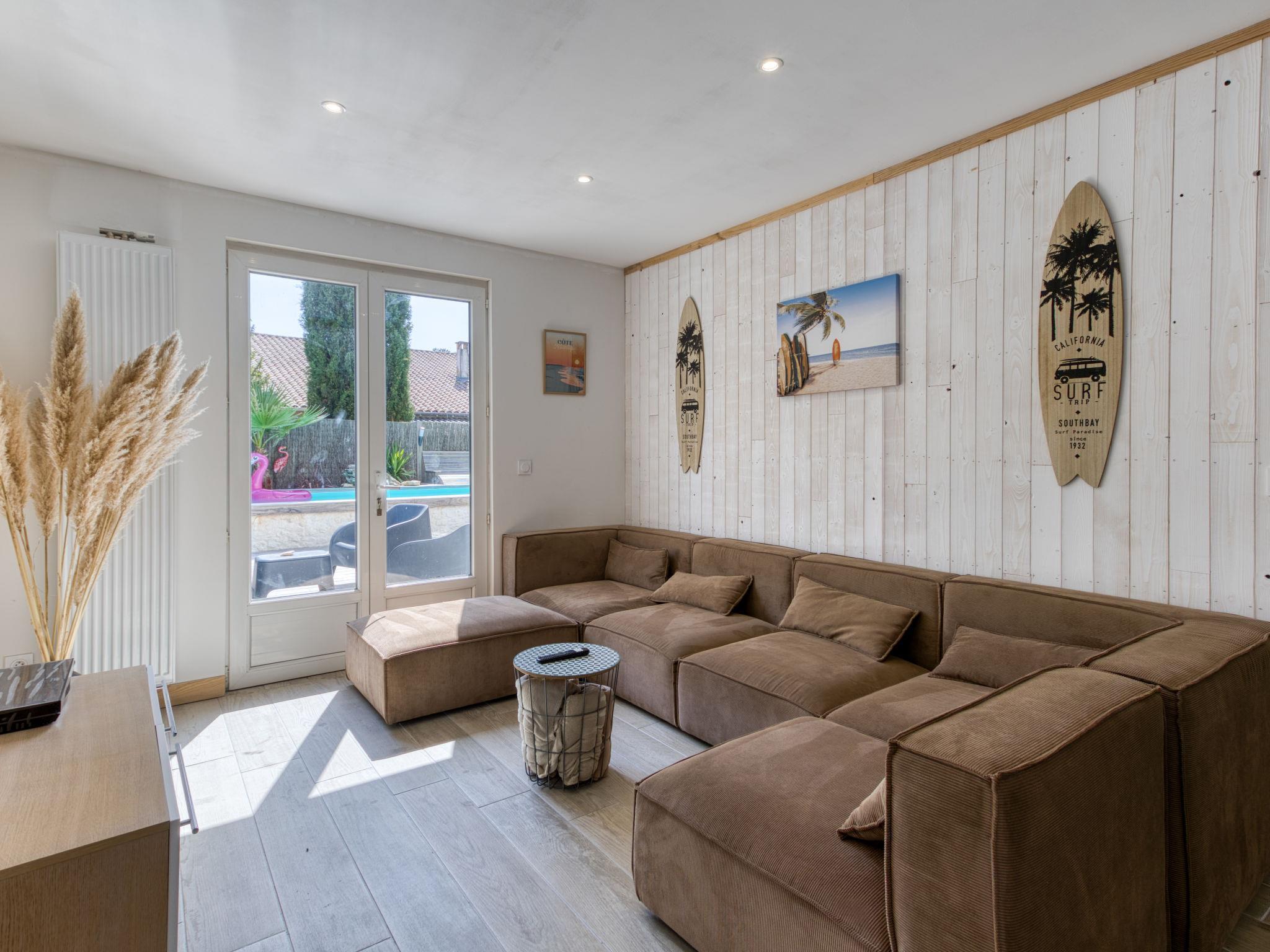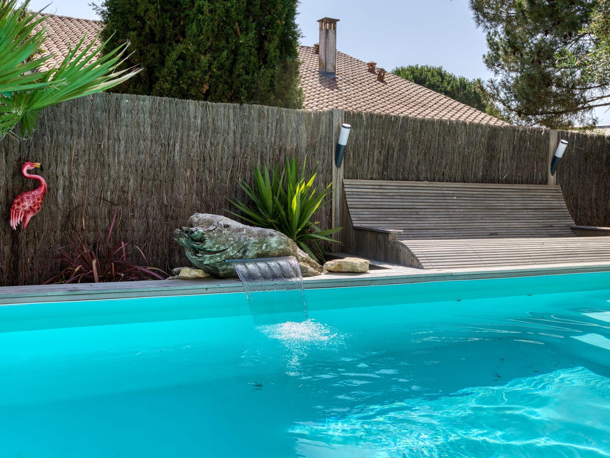Beautiful terraced house "Villa du Sourdonnet", 2 storeys, renovated in 2024. In the resort 800 m from the centre of Les Mathes, in the residential district, 5 km from the sea, 5 km from the beach. Private: well-kept garden 600 m2 (fenced) wildlife garden and trees, swimming pool (6 x 3 m, depth 140 - 140 cm, seasonal availability: 15.Jun. - 15.Sep.) with alarm system. Pool maintenance by the owner/gardener. In the house: spa area, billiard table, trampoline. Shop 800 m, supermarket 350 m, restaurant, bakery 800 m, bus stop "Eglise" 800 m, railway station "Royan" 18 km, sandy beach "La Palmyre" 5 km, thermal baths "Thalassothérapie Thalazur Royan" 18 km. Sports harbour 5 km, golf course (9 hole) 6 km. Nearby attractions: Zagal Cabaret 2 km, Hippodrome - La Palmyre 4 km, Zoo de La Palmyre 5 km, Youpiland 5 km, Golf de La Palmyre 6 km, Phare de la Coubre 8 km. The keys‘ handover takes place by the agency Interhome in La Palmyre, 4 km.
