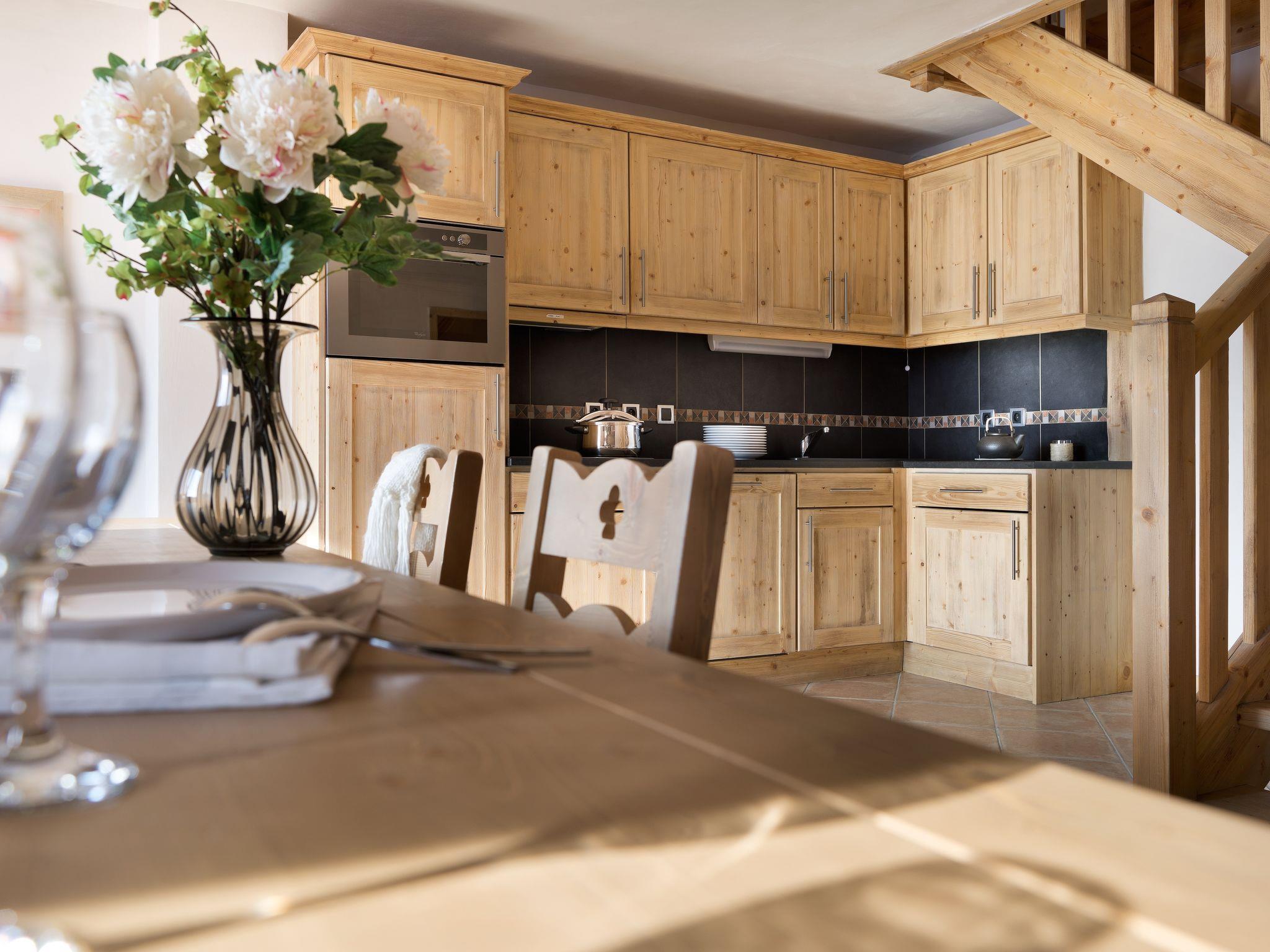 "CGH Résidence&Spa Les Clarines 4*", 4-room apartment 75 to 80 m2. Comfortable and tasteful furnishings: living/sleeping room with 2 sofabeds, 2 pull-out beds, dining table and satellite TV. Exit to the balcony. 1 room with 1 french bed. 2 rooms, each room with 2 beds. Kitchenette (oven, dishwasher, 4 ceramic glass hob hotplates, toaster, kettle, electric coffee machine, steamer). Bathroom, shower/WC, sep. WC. Heating. Balcony. Balcony furniture. Facilities: telephone, hair dryer. Internet (WiFi, free). Please note: non-smokers only. Maximum 1 pet/ dog allowed. Smoke alarm, fire extinguisher. This type of apartment can also be created on two levels.