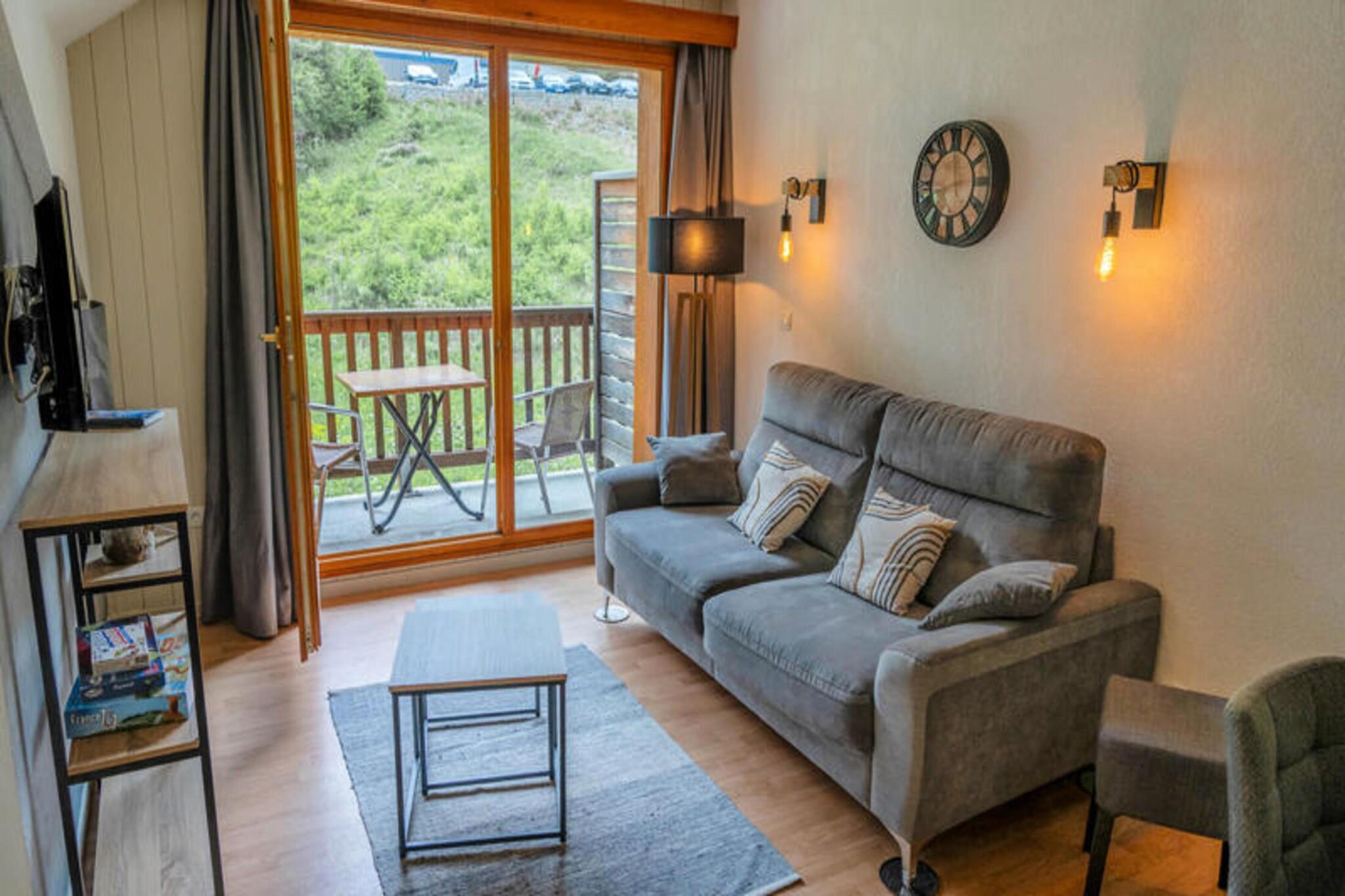 Lägenheten i Les Orres 1800 erbjuder en lugn miljö med fantastisk panoramautsikt över dalen. Beläget bara några meter från gång-, snösko- och mountainbikelederna, är det också nära det centrala torget, där du hittar en mängd olika bekvämligheter såsom restauranger, barer, ett minilivs, en delikatessbutik, en tidningskiosk och en tvättomat. Denna 30 m² stora lägenhet, designad för 4 personer, ligger bara en kort promenad från anläggningens stora torg. Den har en modern och välkomnande design, med ett vardagsrum utrustat med en bäddsoffa (som görs om till en dubbelsäng), en väggmonterad TV och brädspel för underhållning. Det fullt utrustade köket har diskmaskin, kylskåp, mikrovågsugn, filterkaffebryggare och en spis med 4 kokplattor och en matplats för 4 gäster. Vardagsrummet vetter mot en möblerad balkong med vacker utsikt över resorten, lärkskogen och de omgivande bergen. Till lägenheten hör även ett sovrum med en dubbelsäng på 140 x 190 cm och ett badrum med badkar och separat toalett. Under din vistelse kan du njuta av boendets hälsoavdelning, som inkluderar en uppvärmd utomhuspool, solarium, bastu och hamam (tillgängligt under sommar- och vintersäsongen). En utomhusparkeringsplats framför bostaden finns för extra bekvämlighet. Deposition: 400 EURO Uppvärmning: Elvärme