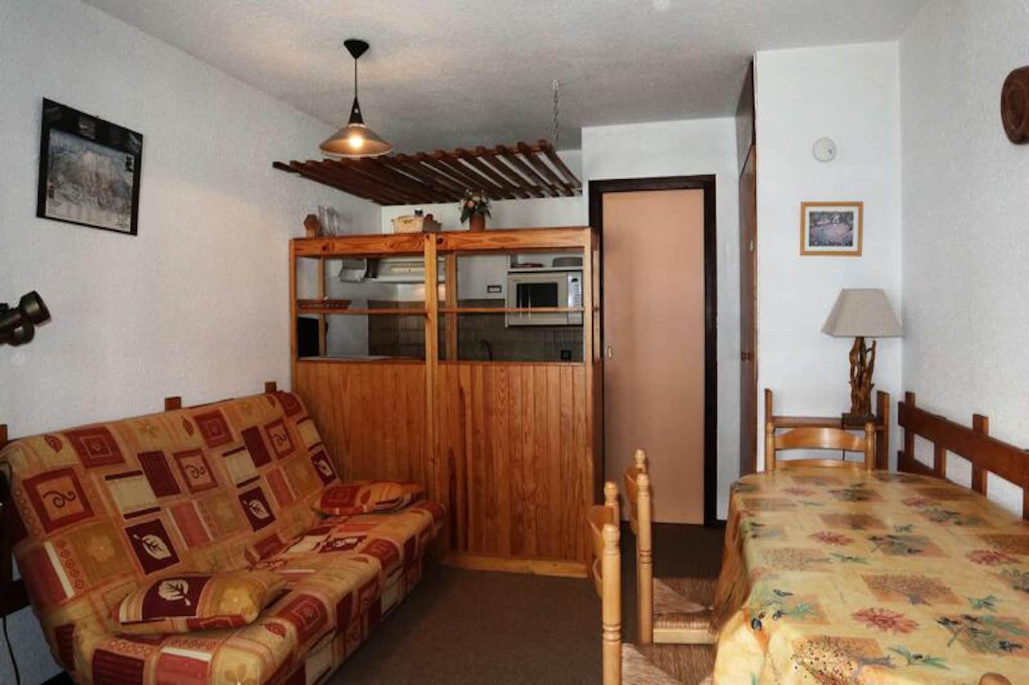 I hjärtat av Les Orres 1650, där charmen i Hautes-Alpes möter spänningen i alpina äventyr, erbjuder denna mysiga studiolägenhet en plats på första parkett till bergslivet. Belägen på det livliga torget, bara några steg från backarna, butikerna och den pulserande energin i denna pittoreska semesterort. Oavsett om du är här för de snötäckta vintrarna eller de soldränkta somrarna, är denna bostad din port till oförglömliga stunder i Alperna. \n\nLägenheten är omsorgsfullt utformad för att rymma upp till fyra gäster, vilket gör den perfekt för små familjer eller nära vänner. Utrymmet har ett välkomnande vardagsrum med en bäddsoffa för två personer, ett öppet pentry för att laga rejäla måltider och en entré med två våningssängar för en enda person. En balkong i söderläge inbjuder dig att börja dina morgnar med hisnande utsikt över backarna, medan badrummet och den separata toaletten garanterar bekvämlighet och avskildhet för alla. \n\nFör skidentuella har fastigheten ett skidförvaringsskåp med direkt tillgång till backarna, så att du smidigt kan övergå från din mysiga tillflyktsort till de orörda backarna. Efter en dag med skidåkning, vandring eller utforskande kan du varva ner i residensens solarium eller promenera genom de närliggande butikerna och restaurangerna som väcker byn till liv. \n\nOavsett om du söker adrenalinfyllda dagar i backarna eller lugna kvällar under den alpina himlen, erbjuder denna studio på Residence Le Cairn den perfekta balansen mellan komfort, bekvämlighet och hisnande naturskönhet. Skapa minnen som varar livet ut i denna idylliska bergsflykt.