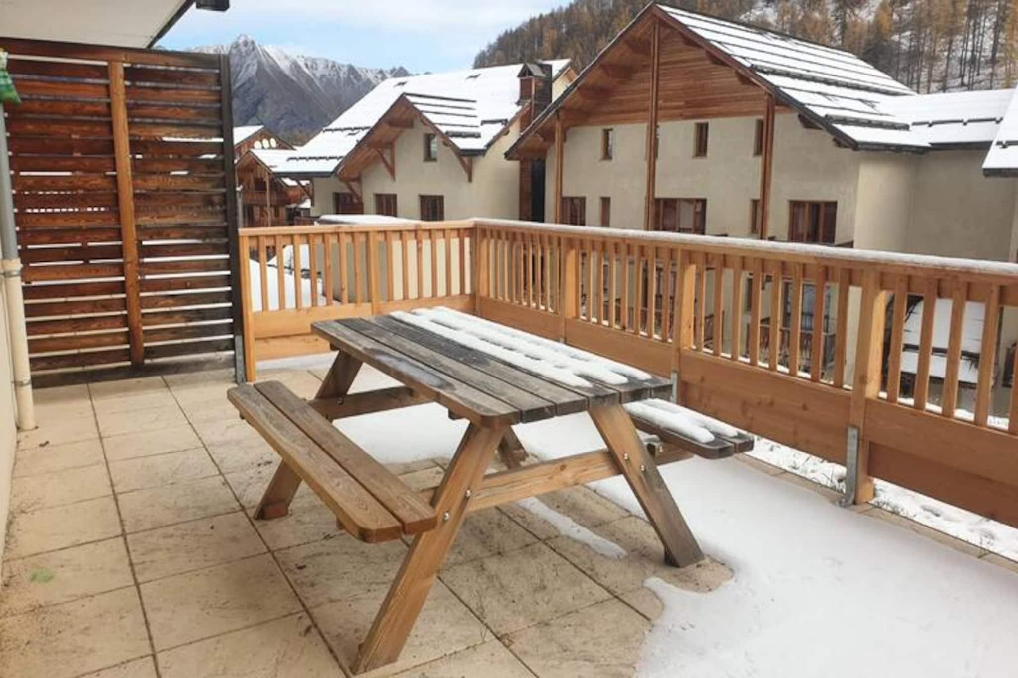 I hjärtat av Hautes-Alpes, där den orörda bergsluften väcker sinnena, ligger denna charmiga lägenhet på bottenvåningen, perfekt utformad för en lugn alpin flykt. Omgiven av hisnande naturskönhet och inbäddad i en högklassig bostad, erbjuder denna fastighet en harmonisk blandning av modern komfort och autentisk bergscharm. Oavsett om du söker äventyr i backarna eller en lugn tillflyktsort, är denna lägenhet din port till oförglömliga minnen. \n\nStig in för att upptäcka ett omsorgsfullt arrangerat utrymme som bekvämt rymmer upp till sex gäster. Vardagsrummet, med sina två utdragbara enkelsängar, inbjuder till avkoppling efter en dag av utforskande, medan det öppna köket, fullt utrustat med diskmaskin och mikrovågsugn, säkerställer enkel matlagning. En mysig sovalkov med våningssängar och ett lugnt sovrum med en queen size-säng lovar vilsamma nätter. Badrummet, separat toalett och en stor terrass i sydostläge kompletterar planlösningen och erbjuder både praktiska egenskaper och en touch av lyx. Gästerna har också fri tillgång till bostadens vattenområde, inklusive en uppvärmd inomhuspool och jacuzzi, perfekt för avkoppling efter en aktiv dag. \n\nLägenhetens utmärkta läge placerar dig mitt i hjärtat av alpina aktiviteter. Ett skidförvaring garanterar bekvämlighet för vintersportsentusiaster, medan de omgivande lederna lockar vandrare och naturälskare under de varmare månaderna. I närheten hittar du charmiga byar, lokala marknader och de fantastiska landskapen i Écrins nationalpark, som inbjuder dig att fördjupa dig i regionens rika kultur och naturliga underverk. \n\nOavsett om du är här för att vandra genom puderiga backar, sola dig i sommarsolen eller bara njuta av bergens lugn, erbjuder denna lägenhet den perfekta basen för ditt alpina äventyr. Låt magin i Hautes-Alpes fängsla dig och skapa minnen för livet.