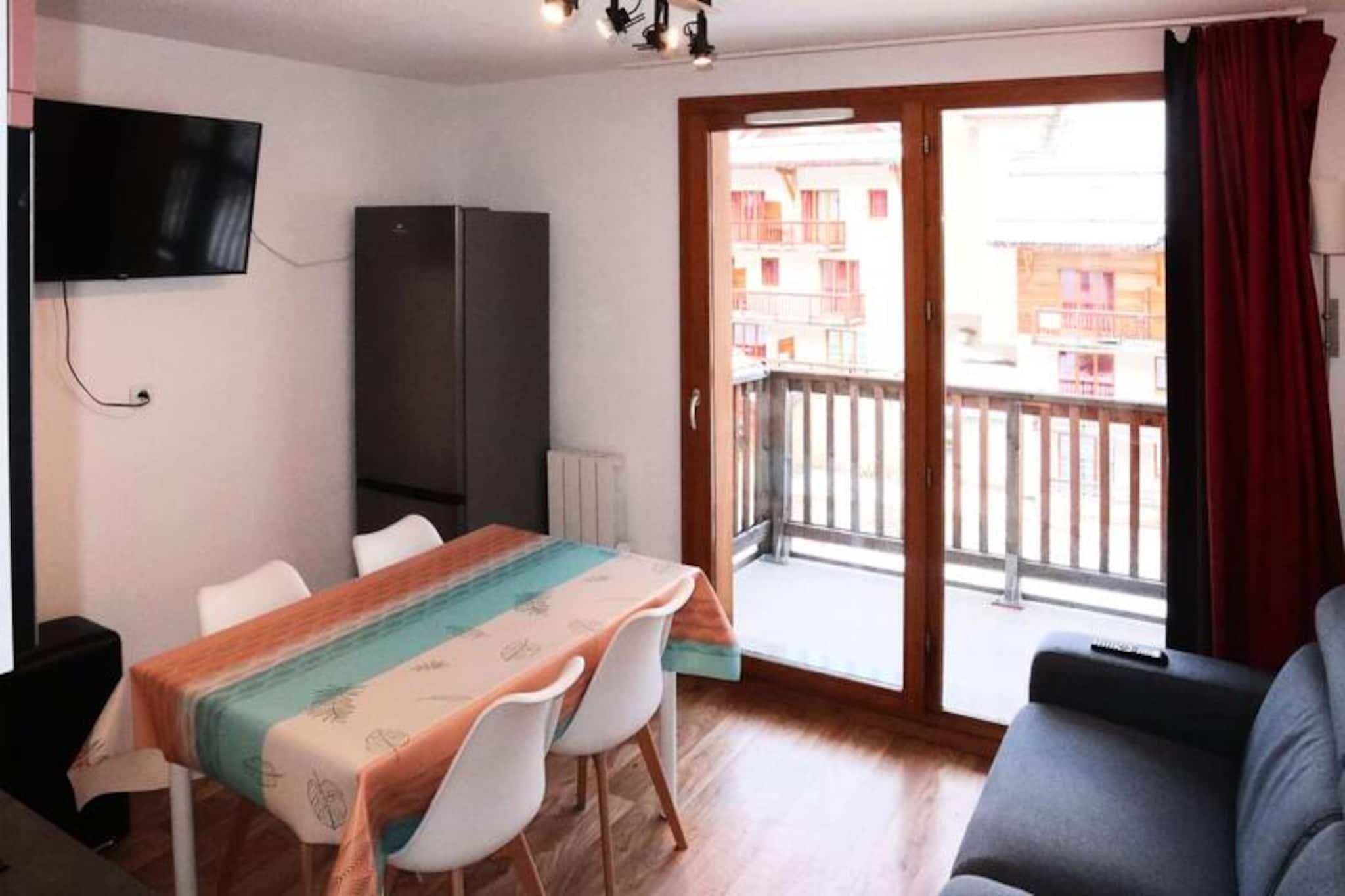 Tänk dig att vakna upp till den friska alpluften och kliva ut på en rymlig balkong i sydostläge, där morgonsolen badar de omgivande topparna i gyllene ljus. Denna lägenhet på bottenvåningen, inbäddad i en lyxig residens, erbjuder den perfekta blandningen av komfort och bekvämlighet för upp till sex gäster. Med fri tillgång till ett vattenområde med en uppvärmd inomhuspool och jacuzzi, lovar din vistelse avkoppling efter en dag med bergsäventyr.\n\nLägenheten har en noggrant utformad planlösning, inklusive ett mysigt vardagsrum med en bäddsoffa för två personer, ett fullt utrustat kök med öppen planlösning och moderna apparater som diskmaskin och mikrovågsugn, och en sovalkov med två våningssängar för två personer. Det stora sovrummet har en plyschig dubbelsäng, medan badrummet och den separata toaletten garanterar extra avskildhet och komfort. Ett separat skidförvaringsskåp finns också tillgängligt, vilket gör det till en idealisk tillflyktsort för vintersportentusiaster.\n\nBeläget i hjärtat av de franska Alperna, är denna fastighet en port till oändliga utomhusaktiviteter. Oavsett om du ger dig ut i de närliggande skidbackarna, utforskar natursköna vandringsleder eller bara njuter av den fridfulla bergsatmosfären, finns det något för alla. Residensens förstklassiga bekvämligheter och närhet till viktiga faciliteter garanterar en smidig och minnesvärd semesterupplevelse. \n\nVälj denna charmiga alpina tillflyktsort för din nästa semester och skapa oförglömliga minnen omgivna av hisnande naturskönhet och moderna bekvämligheter.