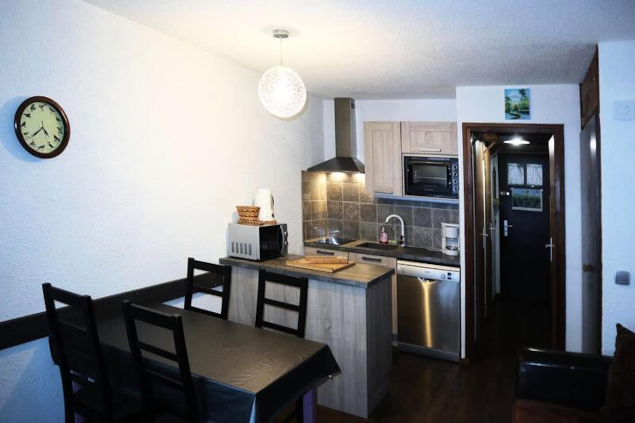 Mitt i de franska Alpernas pulserande energi erbjuder denna charmiga studiolägenhet en mysig tillflyktsort med hisnande utsikt över backarna. Perfekt belägen i hjärtat av orten, inbjuder den dig att fördjupa dig i den alpina livsstilen, med skidliftar och butiker bekvämt belägna vid foten av byggnaden. Oavsett om du söker spännande dagar i pisterna eller lugna kvällar i bergsatmosfären, är denna bostad din port till oförglömliga stunder. \n\nStudiolägenheten är designad för upp till fyra gäster och är både ljus och funktionell. Den har ett bekvämt vardagsrum med en bäddsoffa för två personer, ett välutrustat pentry med kylskåp och diskmaskin samt en sovalkov med två våningssängar. Badrummet och den separata toaletten garanterar avskildhet och bekvämlighet, medan balkongen erbjuder en idyllisk plats att beundra de snötäckta backarna och njuta av den friska bergsluften. Ett skidskåp ingår, vilket gör det enkelt att förvara din utrustning efter en dag av äventyr. \n\nLäget är oslagbart, med skidliftar bara några steg bort för enkel åtkomst till backarna. I närheten hittar du en mängd olika butiker, restauranger och afterski-möjligheter för att förbättra din vistelse. På sommaren förvandlas området till en fristad för vandrare och naturentusiaster, med stigar som slingrar sig genom fantastiska alpina landskap. Utforska charmen i lokala byar, njut av regionala specialiteter och upptäck skönheten i de omgivande bergen. \n\nOavsett om du besöker området för vintersport eller sommarresor, kombinerar denna studiolägenhet komfort, bekvämlighet och Alpernas magi, och lovar en semester fylld med värdefulla minnen.