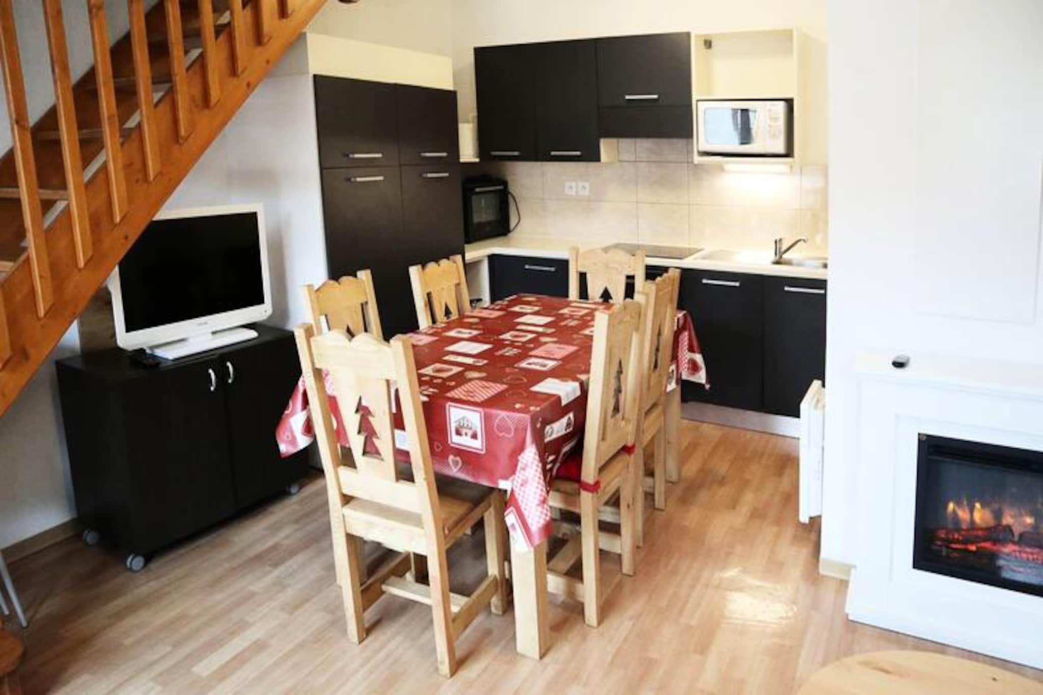 Högt ovanför Les Orres fridfulla landskap erbjuder denna charmiga duplexlägenhet på 1800 meters höjd en perfekt alpin tillflyktsort för familjer och grupper. Med sina varma, inbjudande interiörer och hisnande utsikt över bergen från balkongen är det en fristad för dem som söker både äventyr och avkoppling. Residenset har tillgång till en inomhuspool, vilket gör det till en året runt-destination för oförglömliga semestrar. \n\nLägenheten är omsorgsfullt utformad för att rymma upp till åtta gäster. Bottenvåningen har ett mysigt vardagsrum med en bäddsoffa för två personer, ett öppet kök som är perfekt för att laga rejäla måltider och en balkong som inbjuder dig att njuta av skönheten i de omgivande topparna. På övervåningen hittar du ett bekvämt sovrum med dubbelsäng, ett andra sovrum med två våningssängar och en extra sovalkov med våningssängar, vilket garanterar gott om plats för alla. Badrummet och den separata toaletten bidrar till bekvämligheten, medan den sydvästvända orienteringen fyller utrymmet med naturligt ljus. \n\nPerfekt beläget nära dagis och skidskola är denna fastighet idealisk för familjer med små barn eller nybörjare som är ivriga att ge sig ut i backarna. På vintern ligger de orörda skidbackarna i Les Orres bara några minuter bort, medan sommaren förvandlar området till ett paradis för vandrare och mountainbikecyklister. Den pulserande byatmosfären, i kombination med bergens lugn, skapar en unik blandning av spänning och lugn. \n\nOavsett om du är här för att åka i färskt pudersnö, utforska alpina leder eller bara varva ner vid poolen, erbjuder denna duplexlägenhet den perfekta basen för dina bergsäventyr.