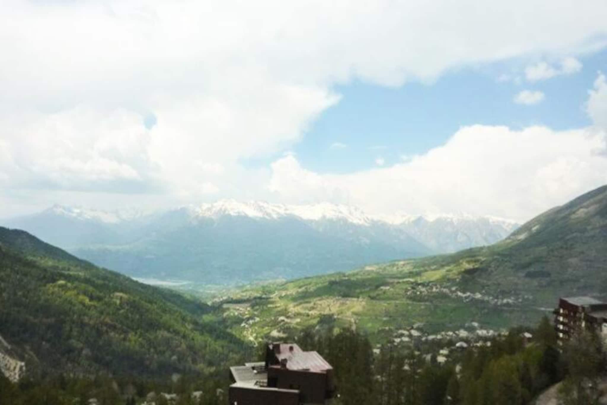 Högt ovanför skidortens livliga hjärta erbjuder denna charmiga studiolägenhet i Les Cembros-residenset en oöverträffad ski-in/ski-out-upplevelse. Belägen på femte våningen med hiss, kombinerar den bekvämlighet med hissnande utsikt över dalen från sin västvända balkong, vilket gör den till den perfekta tillflyktsorten för en minnesvärd alpin semester. Oavsett om du är här för spänningen i backarna eller lugnet i bergen, inbjuder denna mysiga oas dig att koppla av och varva ner efter en dag av äventyr. Studiolägenheten är utformad för att bekvämt rymma upp till fyra gäster och har en sovalkov med två våningssängar och ett vardagsrum med en bäddsoffa för två personer. Det fullt utrustade pentryt låter dig laga läckra måltider, medan det separata badrummet och toaletten garanterar avskildhet och bekvämlighet. Den varma, inbjudande atmosfären kompletteras av moderna bekvämligheter, vilket skapar ett utrymme som känns som hemma mitt i den majestätiska alpina omgivningen. Stig ut, så befinner du dig direkt i backarna, redo att utforska de orörda skidbackarna som gör denna region till ett vintersportparadis. Under de varmare månaderna förvandlas området till en fristad för vandrare och naturentusiaster, med stigar som slingrar sig genom fantastiska landskap. Det närliggande köpcentret erbjuder allt du behöver, från mataffärer till restauranger, vilket garanterar en smidig och trevlig vistelse. Oavsett om du söker spännande utomhusaktiviteter eller en lugn tillflyktsort, placerar denna studiolägenhet dig i hjärtat av allt. Låt dalens skönhet och dess bekvämlighet skapa oförglömliga minnen för ditt alpina äventyr.