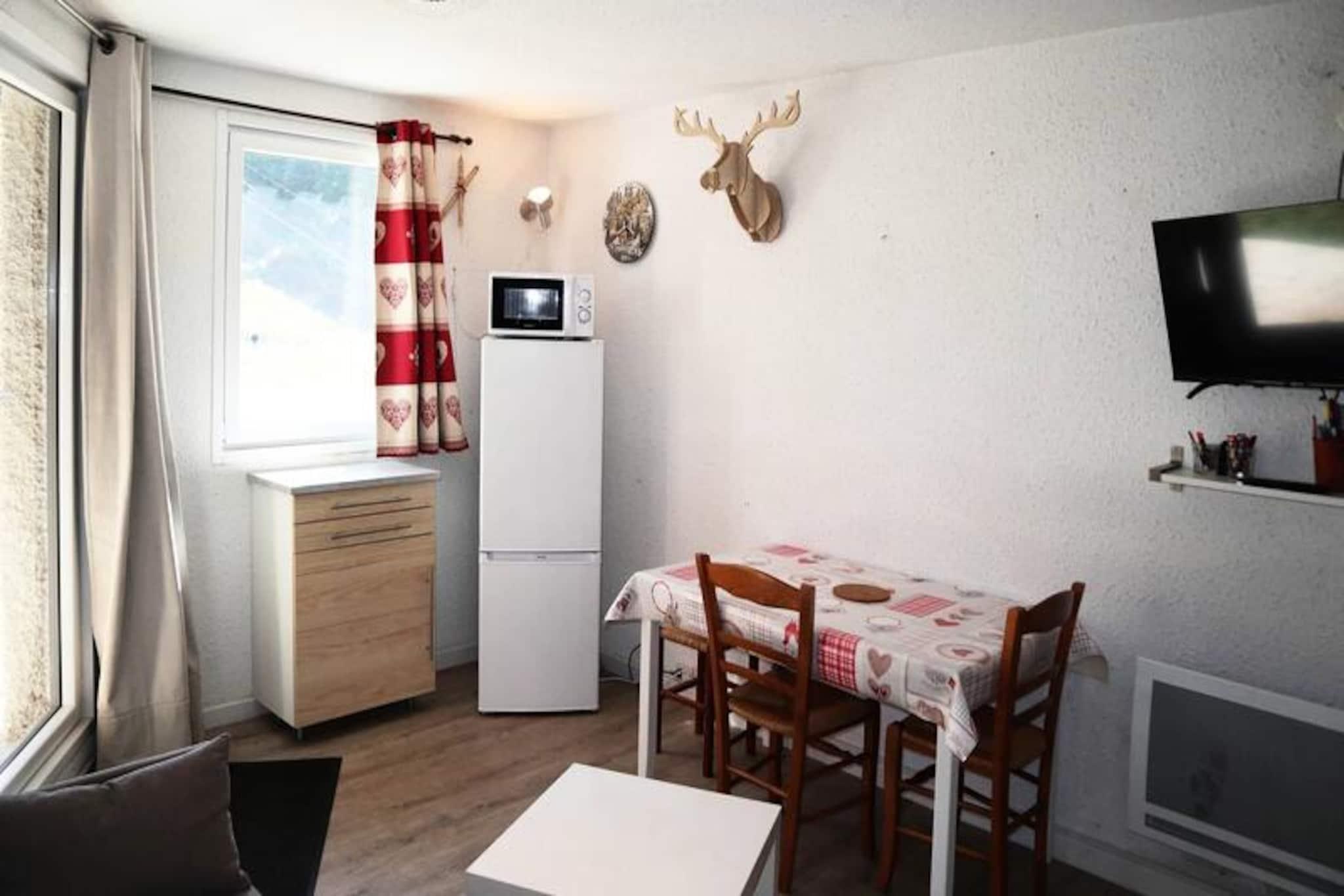 Högt ovanför de fridfulla sluttningarna i de franska Alperna erbjuder denna mysiga studiolägenhet en oförglömlig alpin flykt för upp till fyra gäster. Tänk dig att vakna upp till den friska bergsluften och panoramautsikten från din terrass i söderläge, där solen badar de snötäckta topparna i gyllene ljus. Oavsett om du är här för att åka skidor i färskt pudersnö eller bara njuta av lugnet, placerar denna charmiga oas dig mitt i händelsernas centrum med direkt tillgång till ski-in/ski-out från din terrass. Det lugna området garanterar en lugn vistelse, men du är bara 350 meter från lokala butiker och bekvämligheter, vilket gör bekvämlighet till en del av ditt äventyr. \n\nInuti är lägenheten noggrant utformad för att maximera komfort och funktionalitet. Entréhallen leder till en sovalkov med två våningssängar, perfekt för barn eller vänner som reser tillsammans. Vardagsrummet har en bäddsoffa för två personer, vilket skapar ett varmt och inbjudande utrymme att koppla av efter en dag i backarna. Köket med öppen planlösning är utrustat för att laga rejäla måltider, medan badrummet och den separata toaletten bidrar till den praktiska planlösningen. Ett skidskåp finns tillgängligt för förvaring av din utrustning, och det är enkelt att lossa fordon med direkt tillgång framför bostaden.\n\nUtanför fastigheten hittar du oändliga möjligheter till utforskning och nöje. Den närliggande stolsliften och biljettkontoret ger smidig tillgång till backarna, medan omgivningarna erbjuder en mängd olika leder för vandring och snöskor. På sommaren förvandlas regionen till en fristad för friluftsentusiaster med livfulla ängar, alpina festivaler och hisnande vyer. Oavsett om du söker adrenalinpumpande äventyr eller lugna stunder i naturen, är denna studiolägenhet den perfekta basen för att skapa värdefulla minnen i de franska Alperna.