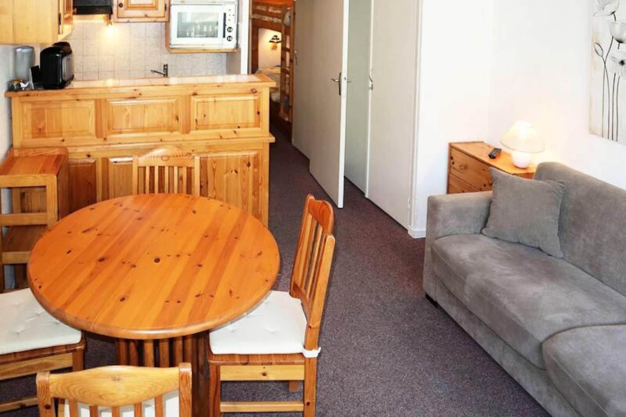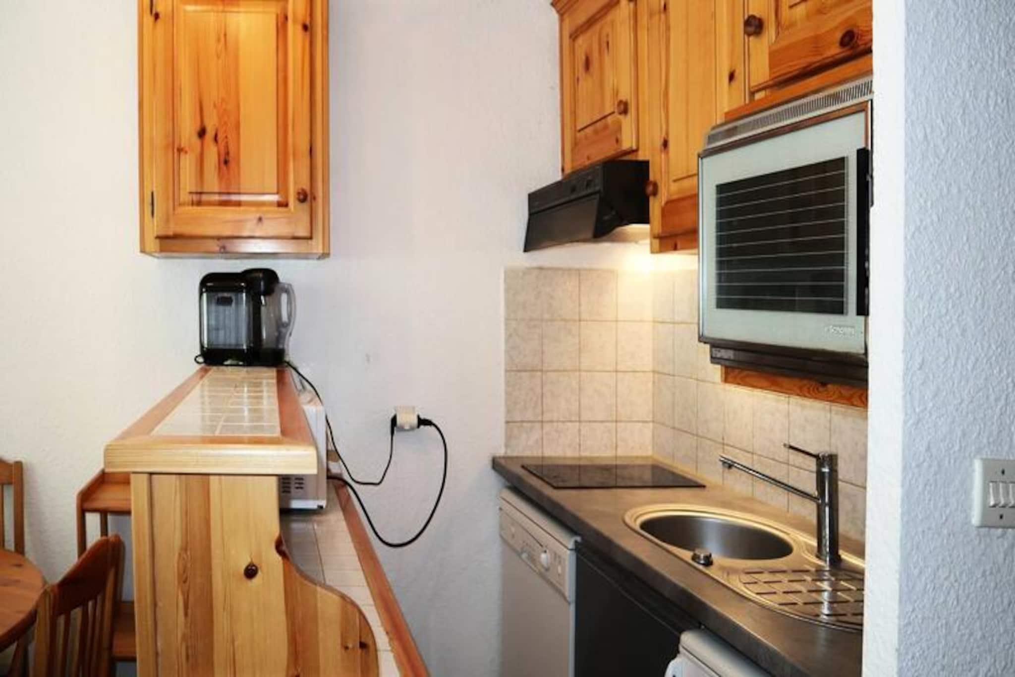 Högt ovanför semesteranläggningens livliga hjärta erbjuder denna förtjusande studiolägenhet i Résidence les Carlines en oslagbar ski-in/ski-out-upplevelse. Belägen på femte våningen kombinerar den bekvämlighet med charm, vilket gör den till den perfekta tillflyktsorten för par eller små familjer. Tänk dig att stiga ut på din balkong i söderläge med kaffe i handen, medan du njuter av den vidsträckta utsikten över semesteranläggningen och backarna, levande av säsongens energi. Oavsett om du är här för skidåkningens spänning eller den fridfulla alpina atmosfären, välkomnar denna mysiga oas dig med öppna armar. Inuti är lägenheten noggrant utformad för att maximera komfort och funktionalitet. Vardagsrummet har en bekväm bäddsoffa för två personer, medan en sovalkov med två våningssängar ger ett mysigt utrymme för ytterligare gäster. Pentryt, öppet mot vardagsrummet, är utrustat för att laga enkla måltider efter en dag av äventyr. Ett separat badrum och toalett säkerställer avskildhet och bekvämlighet, medan den varma, inbjudande inredningen skapar en avkopplande atmosfär. Stig ut, och du kommer att befinna dig i händelsernas centrum. Skidbackarna ligger bara några minuter bort och erbjuder direkt tillgång till de orörda backarna som gör denna region till ett skidåkarparadis. Köpcentret nedanför erbjuder allt du behöver, från matvaror till skiduthyrning, och den pulserande afterski-scenen ligger bara en kort promenad bort. På sommaren förvandlas området till en fristad för vandrare och naturälskare, med stigar som slingrar sig genom hisnande alpina landskap. Oavsett om du söker en aktiv semester eller en lugn tillflyktsort, erbjuder denna studiolägenhet den perfekta basen för att utforska skönheten och spänningen i de franska Alperna. Skapa bestående minnen på en plats där äventyr och avkoppling möts.