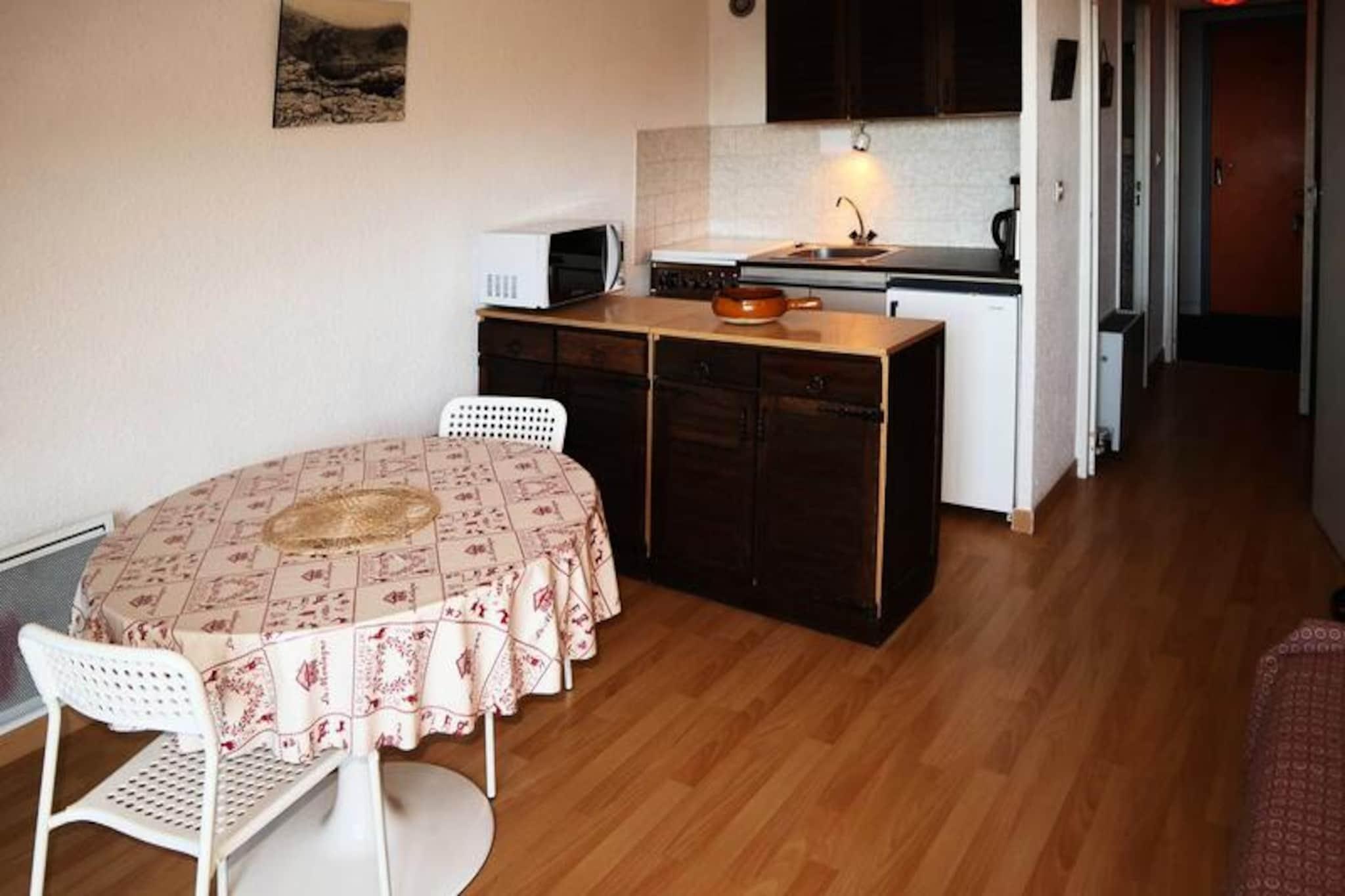 Högt ovanför det livliga köpcentret i Les Carlines-residenset erbjuder denna charmiga studiolägenhet en mysig alpin tillflyktsort med oslagbar ski-in/ski-out-bekvämlighet. Tänk dig att stiga ut genom din dörr och ut på backarna, redo att omfamna den friska bergsluften och de spännande backarna i de franska Alperna. Belägen på sjunde våningen erbjuder balkongen i västerläge en fantastisk panoramautsikt över dalen, perfekt för att varva ner efter en dag av äventyr. Oavsett om du smuttar på en varm dryck medan solen går ner eller bara njuter av den fridfulla utsikten, är detta din port till alpin lugn. Studiolägenheten är utformad för att bekvämt rymma upp till fyra gäster och har en genomtänkt planlösning som maximerar utrymme och komfort. Sovalkoven har två våningssängar, medan vardagsrummet har en bäddsoffa för två personer, vilket skapar en mångsidig och välkomnande miljö för familjer eller små grupper. Pentryt, öppet mot vardagsrummet, är fullt utrustat för att laga rejäla måltider för att driva dina bergsäventyr. Ett modernt duschrum med toalett säkerställer att allt du behöver är täckt, medan residensens skidförvaring ger ett extra lager av bekvämlighet. Beläget i hjärtat av semesteranläggningen hittar du allt du behöver bara några steg bort, från butiker och restauranger till afterski-aktiviteter. Residensens utmärkta läge gör det till en utmärkt bas för att utforska de omgivande backarna och lederna, oavsett om du är här för vintersport eller sommarvandringar. Med sin blandning av komfort, praktiska egenskaper och hisnande utsikt lovar denna studio en minnesvärd vistelse i de franska Alperna.