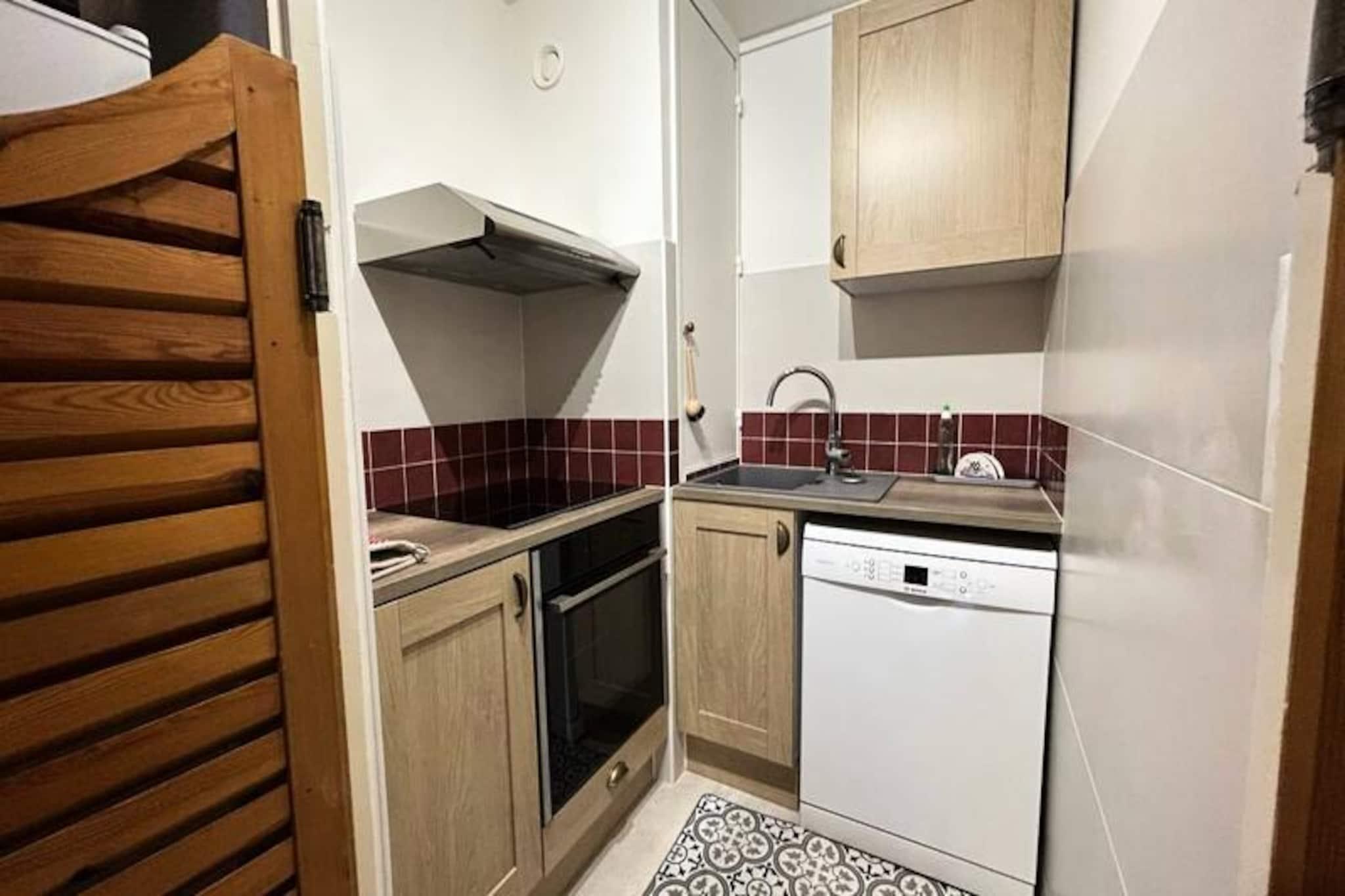 Högt ovanför de soldränkta sluttningarna i de franska Alperna inbjuder denna charmiga lägenhet i L'Epervière Residence dig att uppleva magin i bergslivet. Belägen i hjärtat av orten erbjuder den en perfekt blandning av bekvämlighet och alpin charm, vilket gör den till en idealisk tillflyktsort för familjer och grupper som söker en minnesvärd semester. Från din privata balkong i söderläge kan du njuta av panoramautsikten över den livliga orten nedanför och de majestätiska topparna bortom, en syn som kommer att stanna kvar långt efter att din semester är slut. \n\nStig in i denna rymliga tvårumslägenhet, omsorgsfullt utformad för att rymma upp till sex gäster. Planlösningen inkluderar en mysig sovalkov med våningssängar, ett bekvämt vardagsrum med utdragbara sängar och ett lugnt sovrum med två enkelsängar. Ett fullt utrustat pentry låter dig laga rejäla måltider efter en dag av äventyr, medan badrummet med tvättmaskin och separat toalett säkerställer alla bekvämligheter i ett hem. Den varma och inbjudande interiören skapar en avkopplande atmosfär, perfekt för att varva ner efter att ha utforskat de snötäckta pisterna eller natursköna lederna. \n\nResidensens centrala läge innebär att allt du behöver finns bara några steg bort. Oavsett om du ska till skidliftarna för en dag i backarna, utforska de charmiga bybutikerna och restaurangerna, eller anmäla dig till skidskolan, finns bekvämligheten nära till hands. På sommaren förvandlas området till en fristad för vandrare, cyklister och naturentusiaster, med stigar som leder till hisnande vyer och alpina ängar. \n\nOavsett om du söker spännande vintersporter eller lugna sommarresor, erbjuder denna lägenhet den perfekta basen för att skapa oförglömliga minnen i hjärtat av de franska Alperna.