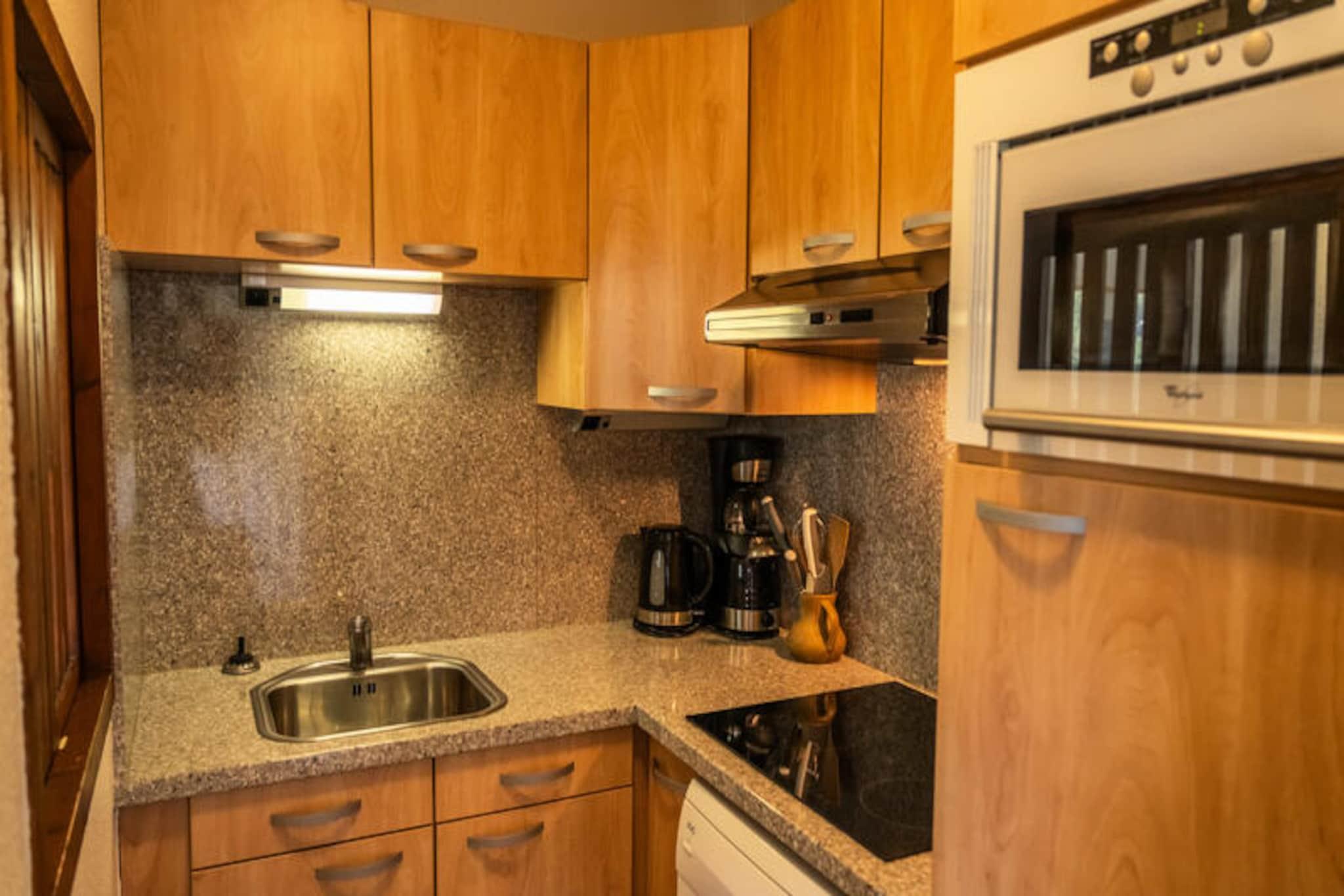 Högt ovanför den pittoreska Embrundalen inbjuder denna eleganta lägenhet i Les Orres 1650 dig att uppleva charmen i Hautes-Alpes under alla årstider. Tänk dig att vakna upp till hisnande utsikt över bergen från din soliga balkong i söderläge, där du kan njuta av ditt morgonkaffe eller varva ner med en god bok medan den alpina luften friskar upp dina sinnen. Med sitt utmärkta läge bara några steg från snöfronten och stolsliftarna garanterar denna bostad enkel tillgång till backarna, vilket gör den till en drömdestination för både skidentusiaster och naturälskare. \n\nInuti erbjuder lägenheten 39 m² omsorgsfullt utformad bostadsyta, med plats för upp till fem gäster. Det mysiga vardagsrummet har en utdragbar bäddsoffa och en enkel bäddsoffa, medan sovrummet har två enkelsängar för vilsamma nätter. Det fullt utrustade köket, komplett med diskmaskin, mikrovågsugn/grill och alla nödvändiga köksredskap, är perfekt för att laga rejäla måltider efter en dag av äventyr. Ett avkopplande bad i badkaret väntar i det moderna badrummet och ger din vistelse en touch av lyx. \n\nUtanför lägenheten finns anläggningens bekvämligheter nära till hands. Mindre än 100 meter bort hittar du butiker, restauranger och aktiviteter som sträcker sig från mountainbike och ziplining till äventyrskurser i trädtopparna. På vintern säkerställer det privata skidförvaringen att din utrustning alltid är redo för nästa spännande nedförsbacke. Sommaren har sina egna läckerheter, med den möblerade solariet som erbjuder en lugn plats att sola sig i regionens rikliga solsken. \n\nOavsett om du söker adrenalinpumpande sport eller lugn alpin avkoppling, lovar denna bostad i Les Orres 1650 en oförglömlig semester i hjärtat av bergen.