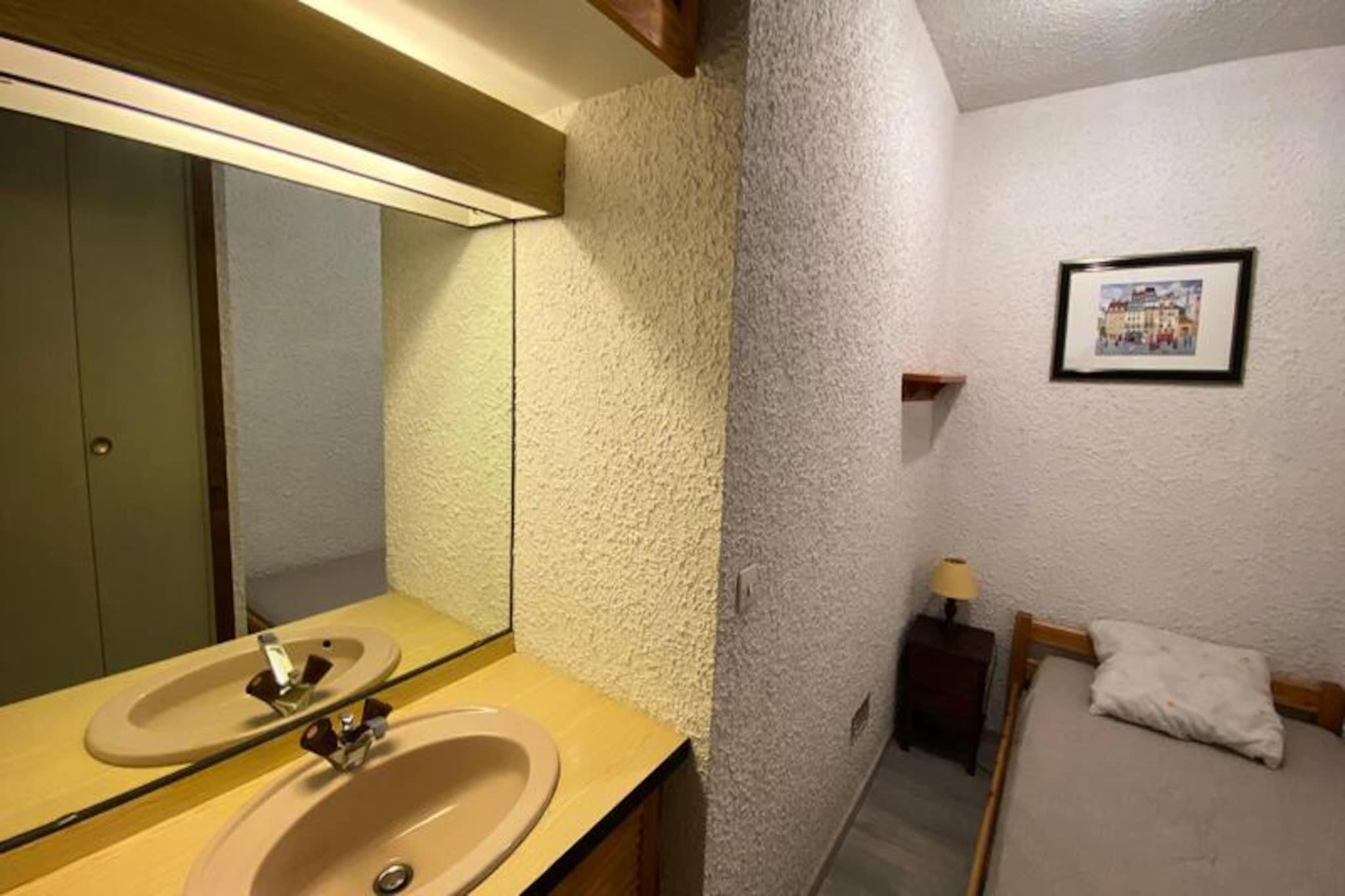 Högt ovanför de fridfulla dalarna i Les Orres 1650 inbjuder denna charmiga lägenhet dig att fördjupa dig i de franska Alpernas magi. Med hisnande utsikt mot väster från balkongen på femte våningen blir varje solnedgång ett mästerverk målat över bergstopparna. Oavsett om du är här för snöiga äventyr eller sommarresor, garanterar den pulserande resortatmosfären oförglömliga stunder för alla åldrar. Från fackeltågsfärder och fyrverkerier till spännande ziplines och trädtoppsbanor, är spänningen alltid inom räckhåll. \n\nDenna omsorgsfullt designade tvårumslägenhet är 48 m² stor och rymmer bekvämt upp till sju gäster. Vardagsrummet, med en mysig bäddsoffa och TV, är perfekt för att varva ner efter en dags utforskande. Ett separat, fullt utrustat kök – komplett med diskmaskin, ugn, kaffebryggare och brödrost – gör det till en fröjd att laga mat. Sovrummen är mångsidiga, med en dubbelsäng i sovrummet, våningssängar i alkoven, en enkelsäng i en andra alkov med eget handfat och bäddsoffan i vardagsrummet. Badrummet, utrustat med ett avkopplande badkar, erbjuder den perfekta tillflyktsorten efter mountainbike, skidåkning eller vandring. \n\nLes Orres 1650 ligger mindre än 100 meter från backarna, butikerna och restaurangerna, och du har allt du behöver nära till hands. Oavsett om du köper färska bakverk från bageriet, utforskar souvenirbutiker eller gör dig redo för vintersporter, finns allt du behöver bara en kort promenad bort. Två privata skidförvaringsskåp ger säker förvaring av din utrustning, vilket garanterar en problemfri vistelse. \n\nVälj denna alpina oas för dess oslagbara läge, mysiga atmosfär och tillgång till aktiviteter året runt. Oavsett om du jagar puderiga backar eller solar dig i sommarsolen, lovar Les Orres 1650 minnen som kommer att dröja sig kvar långt efter att din semester är slut.
