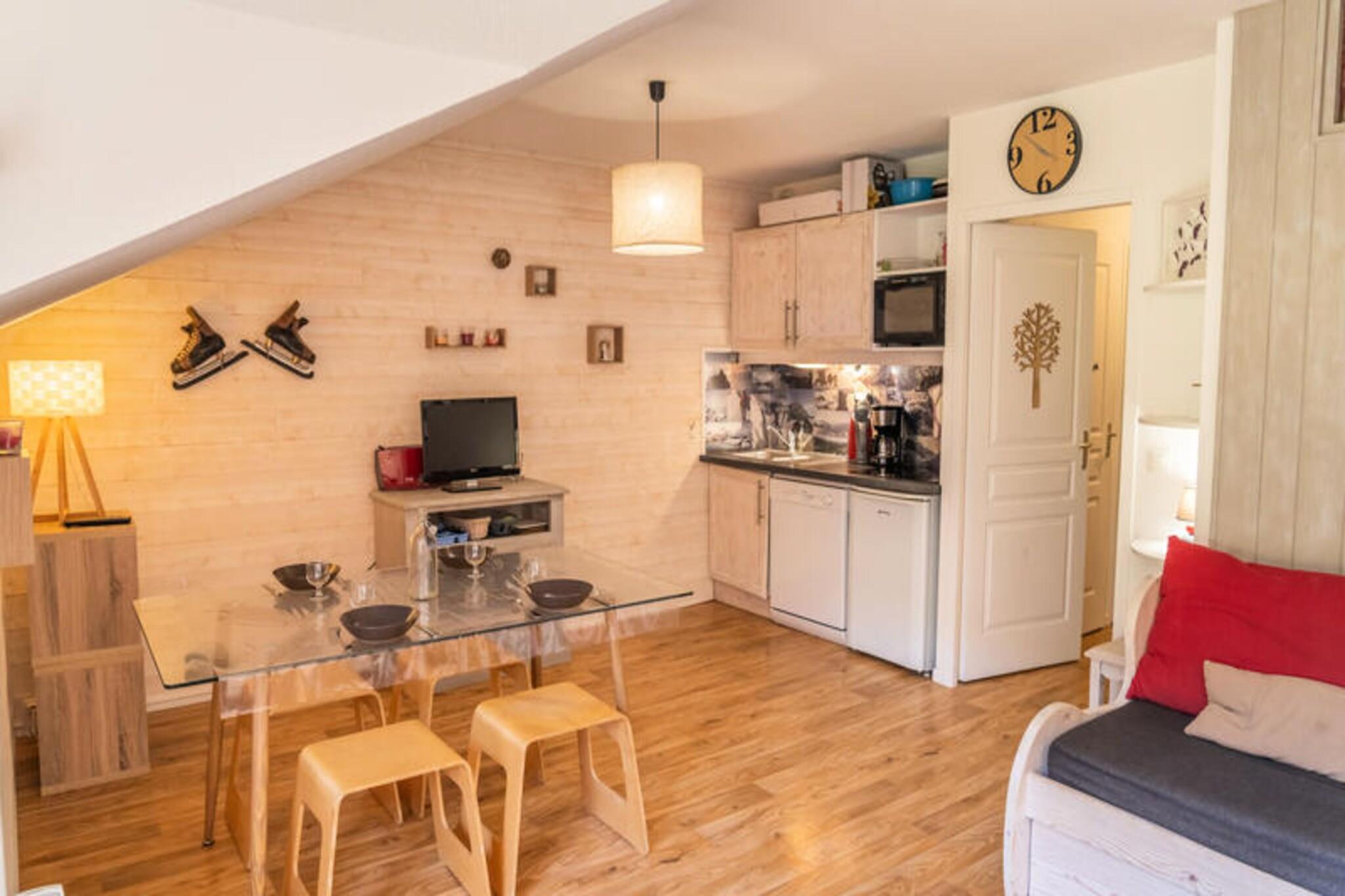 Residenset Hauts de Préclaux, som ligger på 1 800 meter i hjärtat av Bois-Méan, erbjuder ett utmärkt läge i Les Orres 1800, omgivet av affärer, barer och restauranger. Denna renoverade studio på 35 m² i byggnaden "Les Eglantines" är perfekt belägen på det centrala torget och erbjuder enkel tillgång till resortens livliga bekvämligheter. Studion har en balkong i sydostläge med direkt utsikt över backarna, perfekt för att njuta av måltider i solen. Inuti hittar du ett mysigt vardagsrum med bäddsoffa, TV och ett fullt utrustat kök. Sovdelen har en utdragbar bäddsoffa och en våningssäng (med en dubbelsäng i botten och en enkelsäng på toppen), som bekvämt rymmer upp till 5 personer. Lägenheten har även ett badrum med badkar, separat toalett och gott om förvaring. Boendets närhet till snöfronten, backarna och underhållningen gör det till en perfekt bas för en aktiv bergsresa. Residenset har en uppvärmd utomhuspool, öppen både sommar och vinter, och bastustugor, perfekta för att varva ner efter en dag i backen. Gästerna har också tillgång till privat underjordisk parkering och en skidbox för vintersportutrustning.