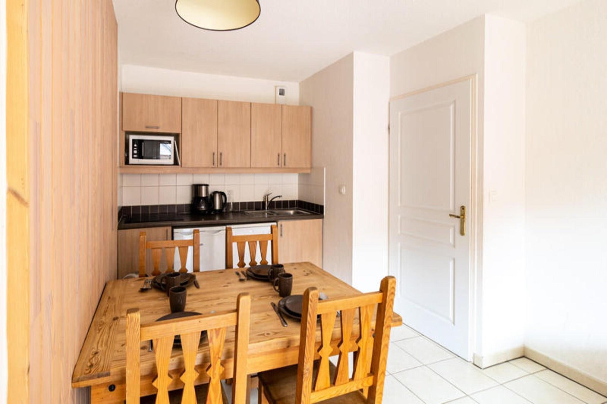 Denna fastighet, tillsammans med sin mysiga design, erbjuder en välutrustad 33 m² 2-rumslägenhet som rymmer upp till fyra gäster. Vardagsrummet har en bäddsoffa och en TV, medan det separata sovrummet har en dubbelsäng, vilket gör det lämpligt för familjer eller små grupper. Gästerna kan koppla av på den privata balkongen, som erbjuder vacker utsikt över resorten och de omgivande topparna. Lägenheten har ett fullt utrustat kök och en matplats. Även om husdjur inte uttryckligen nämns, erbjuder fastigheten underjordiska parkeringsplatser att hyra. Även om inga gratisaktiviteter markeras, erbjuder boendet tillgång till en uppvärmd inomhuspool, öppen säsongsvis, perfekt för både skidåkare och icke-skidåkare. Lägenheten ligger i hjärtat av orten Orres 1800, bara 200 meter från skidbackarna, butikerna och restaurangerna. På sommaren är det också nära till mountainbikeleder och vandringsleder, som erbjuder utomhusaktiviteter året runt. Turistbyrån, tillsammans med ESF och ESI skidskolekontor, ligger bara några steg bort. För familjer finns även ett daghem i närheten. Läget är lättillgängligt med kollektivtrafik, med buss och taxi i området. Närmaste flygplats ligger en kort bilresa bort, vilket säkerställer bekväm tillgång till fastigheten. Lägenheten är utrustad med ett kök med spis, ugn, kylskåp och andra nödvändiga apparater för att laga mat. Badrummet har ett badkar, vilket ger komfort efter en dag av aktiviteter. För enkelhetens skull nås lägenheten via hiss, som ligger strax utanför huvudentrén. Fastigheten erbjuder en fridfull tillflyktsort, belägen en bit från det centrala torget, men ändå inom gångavstånd från resortens alla bekvämligheter. Oavsett om du vill åka skidor, vandra eller koppla av, erbjuder denna lägenhet en perfekt bas i bergen.