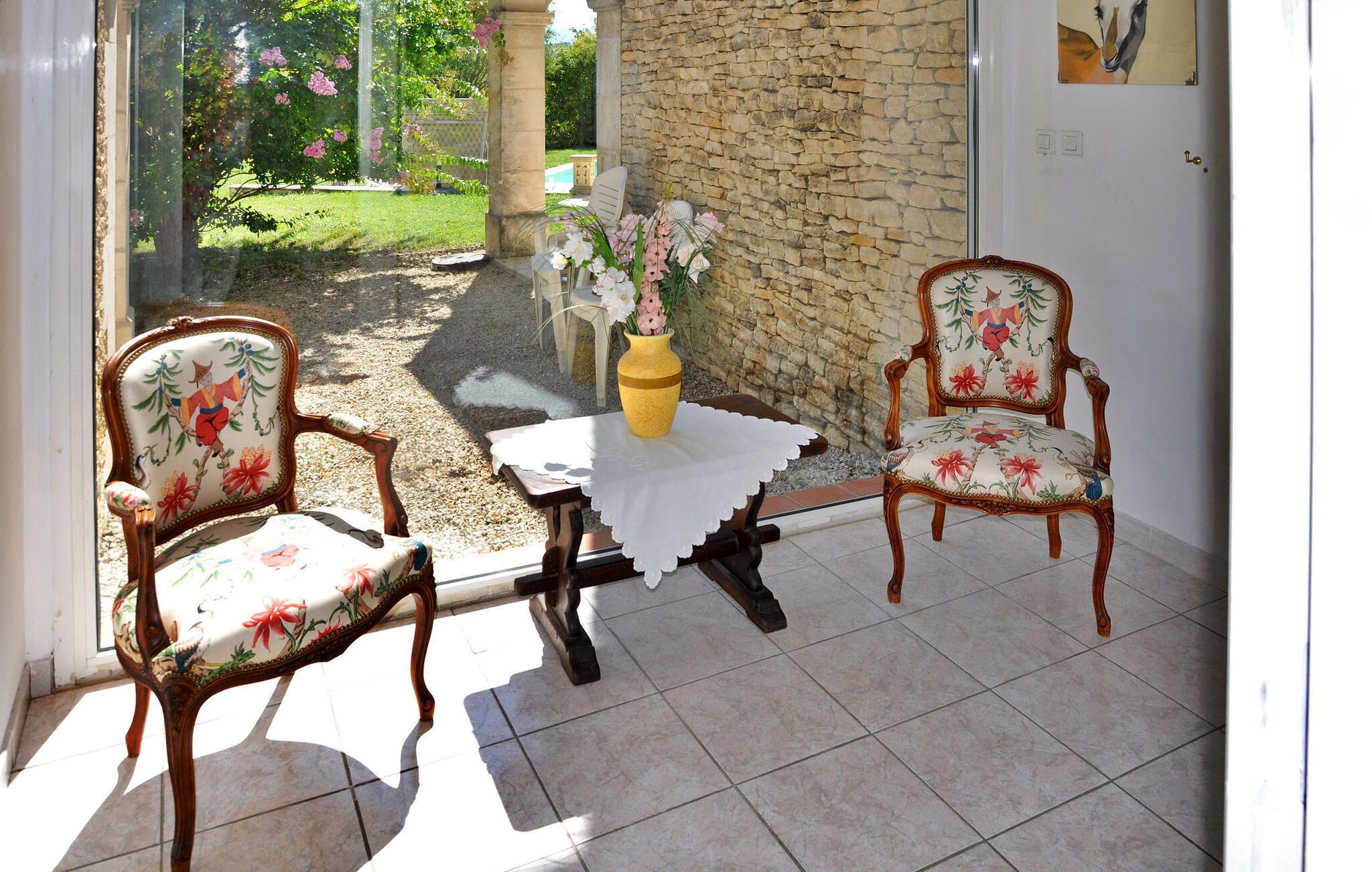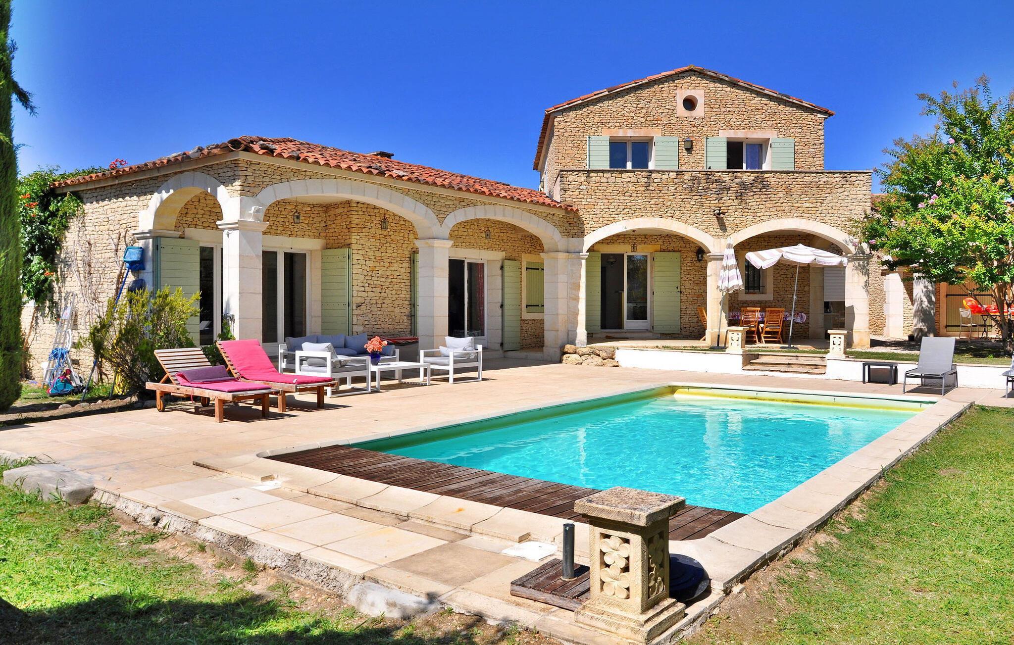 Denna rymliga semestervilla ligger 4 km utanför den livliga byn Gordes och erbjuder en idealisk miljö för en familjesemester i den förtrollande Luberon-regionen. Villan sträcker sig över ett rymligt vardagsrum och erbjuder en inbjudande layout: På bottenvåningen finns ett fullt utrustat kök. Detta rum gränsar till en kombinerad matsal och vardagsrum. Två sovrum på denna våning erbjuder bekväma sovplatser och enkel tillgång till trädgården. På övervåningen finns ytterligare två sovrum, alla med franska fönster som leder ut till solterrassen. Utanför har fastigheten en omfattande, delvis inhägnad tomt med fantastisk utsikt. En täckt terrass inbjuder till utomhusmöten och ger ett inbjudande utrymme för middagar och avkoppling. Den privata poolen, som är säkrad med ett elektriskt säkerhetslås, mäter 8 x 4 meter och har en stenlagd terrass med solstolar, vilket ger den perfekta platsen för solbad och en uppfriskande simtur. Njut av den vackra omgivningen, koppla av i denna charmiga villa och skapa värdefulla minnen mitt i det lugna landskapet i Gordes och den lockande Luberon-regionen. Villan ligger nedanför byn Gordes, i riktning mot Goult. Närmaste affärer: bageri, postkontor, restaurang i Gordes, 4 km bort. I närheten kan ni vandra i Luberon och Monts du Vaucluse och besöka de berömda pittoreska byarna i Luberon: Village des Bories, bergsbyarna i Roussillon och dess ockra, Bonnieux, Ménerbes, Lacoste, Oppède.