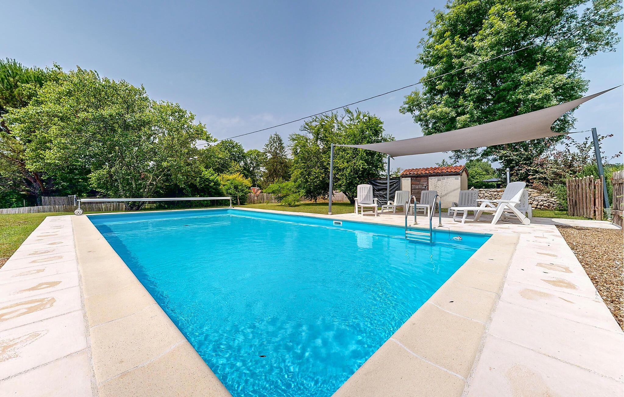 Njut av lugnet och tystnaden i den stora trädgården, som är utrustad med en inbjudande pool, perfekt för uppfriskande simturer och avkopplande solbad.